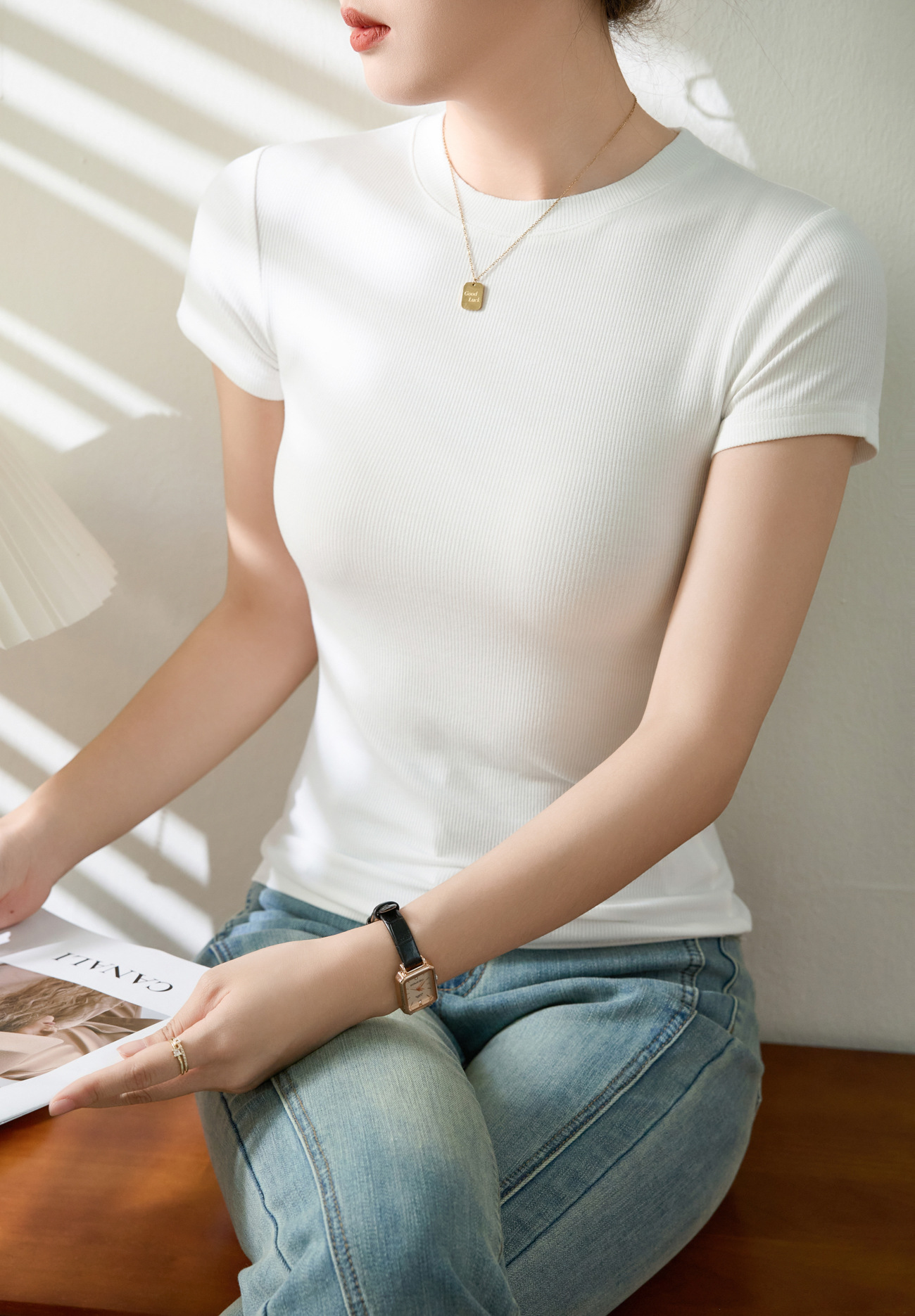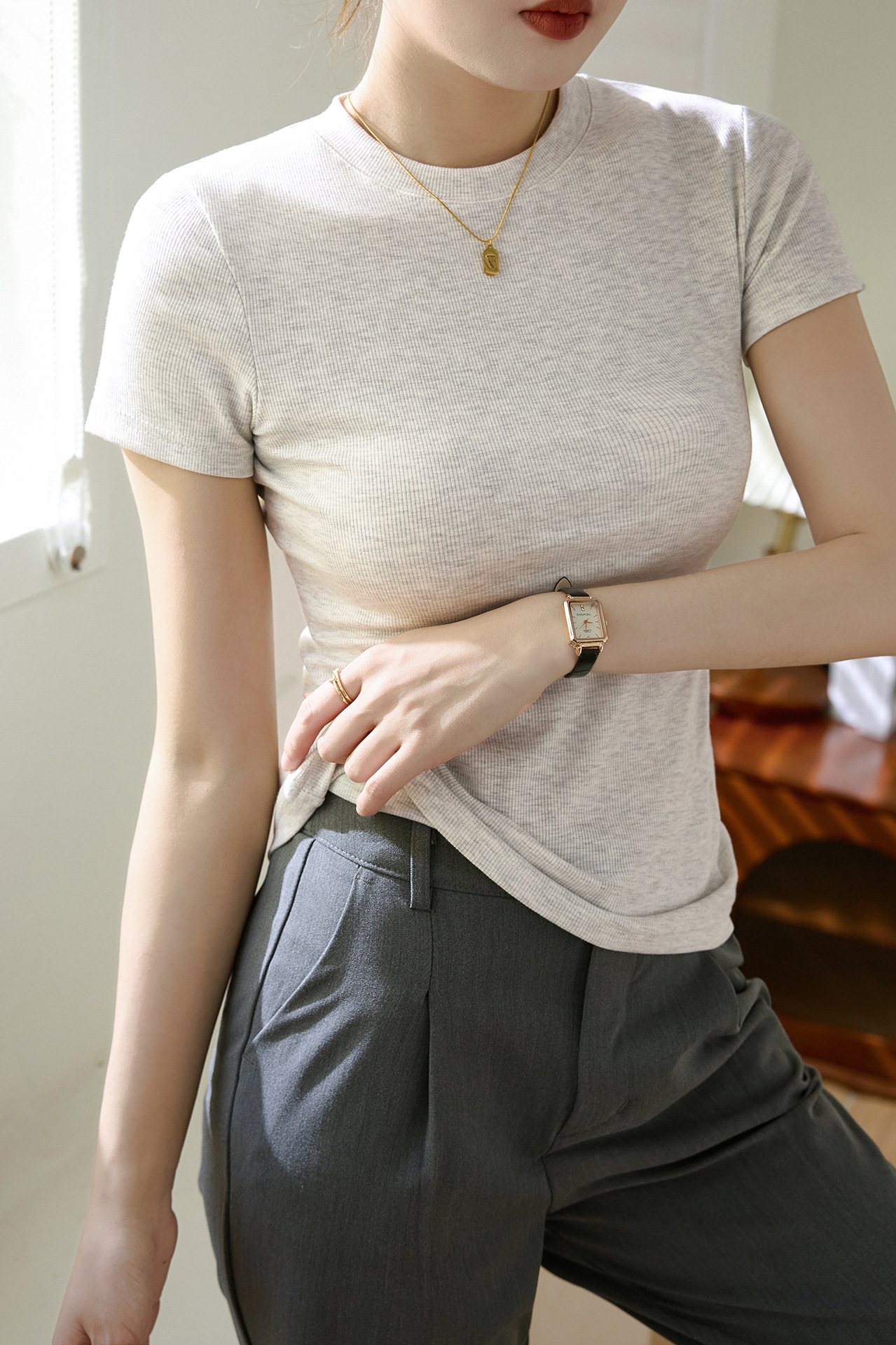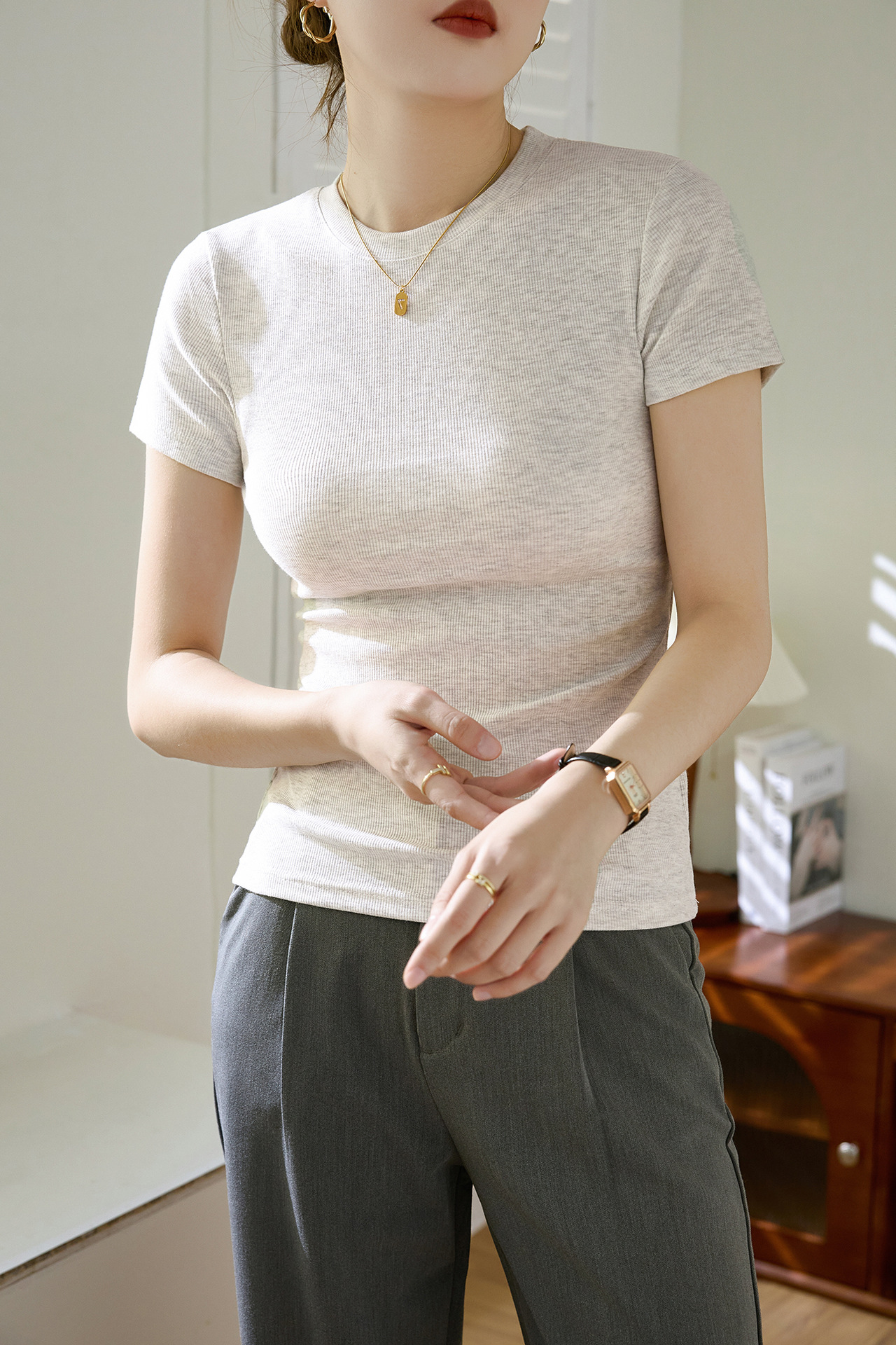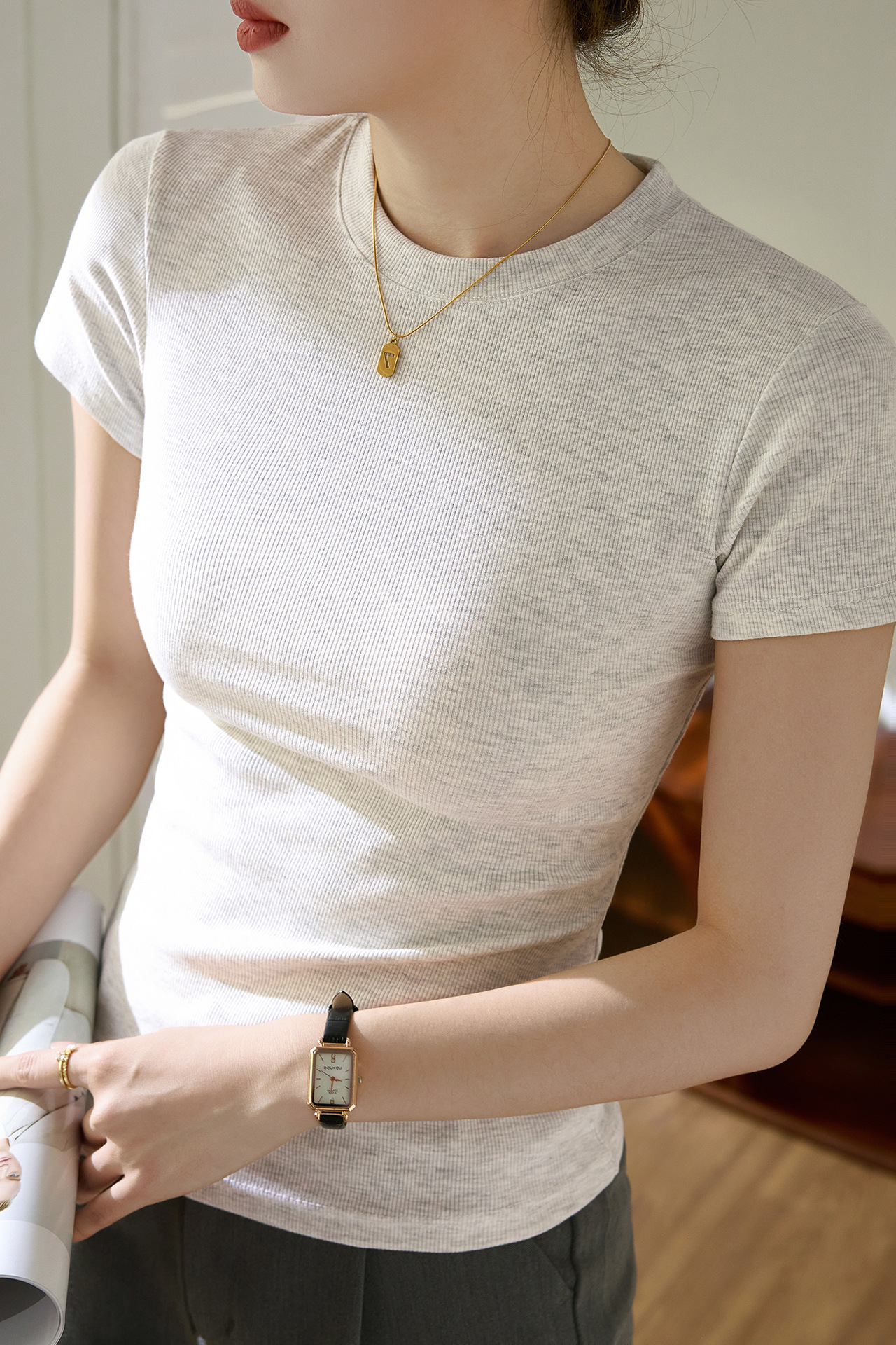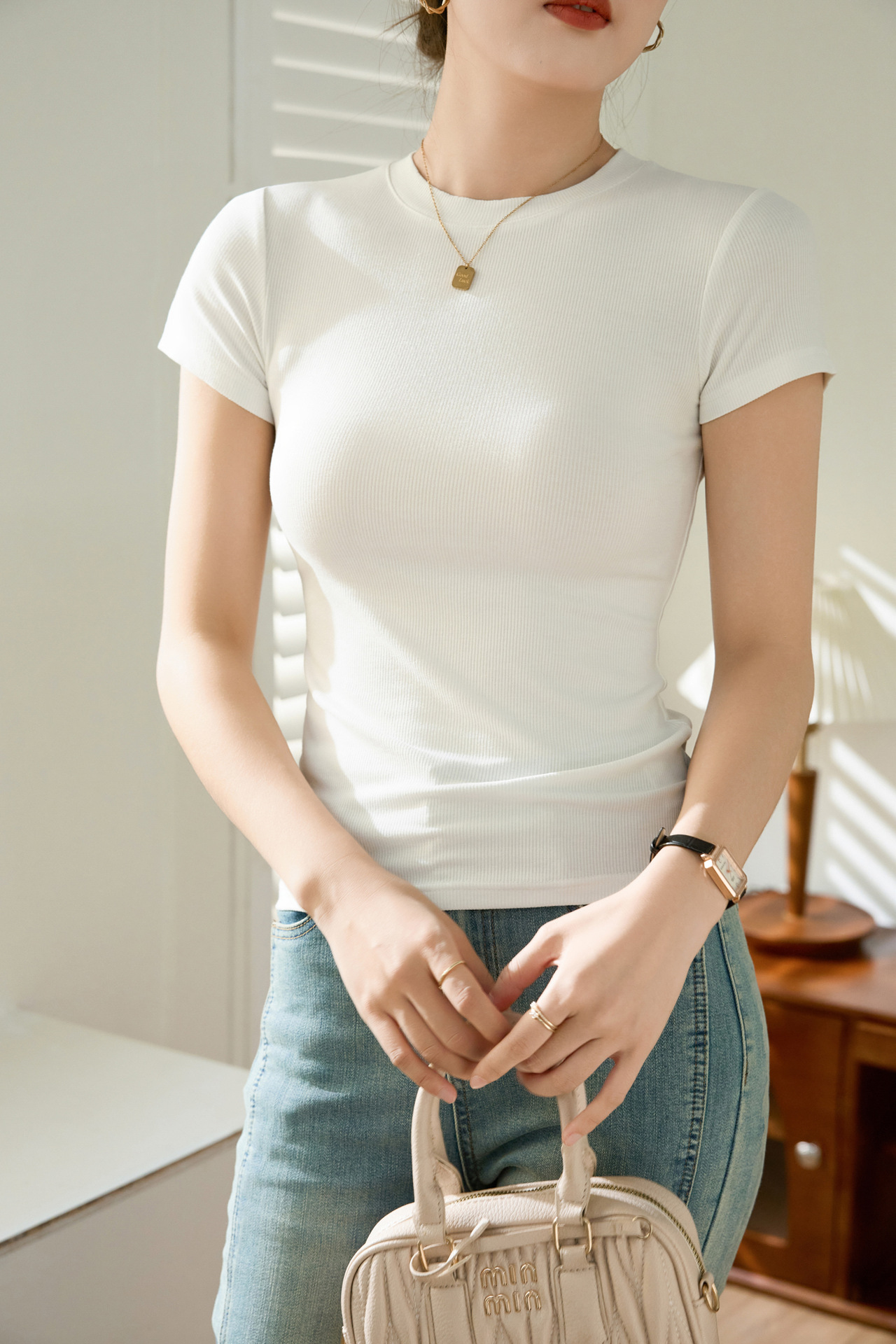 &좋은 소재 사용& 고탄성 코튼 슬림핏 반팔 티셔츠 여성 여름 2026 신상 만능 상의 슬리밍 라운드넥 베이스 레이어