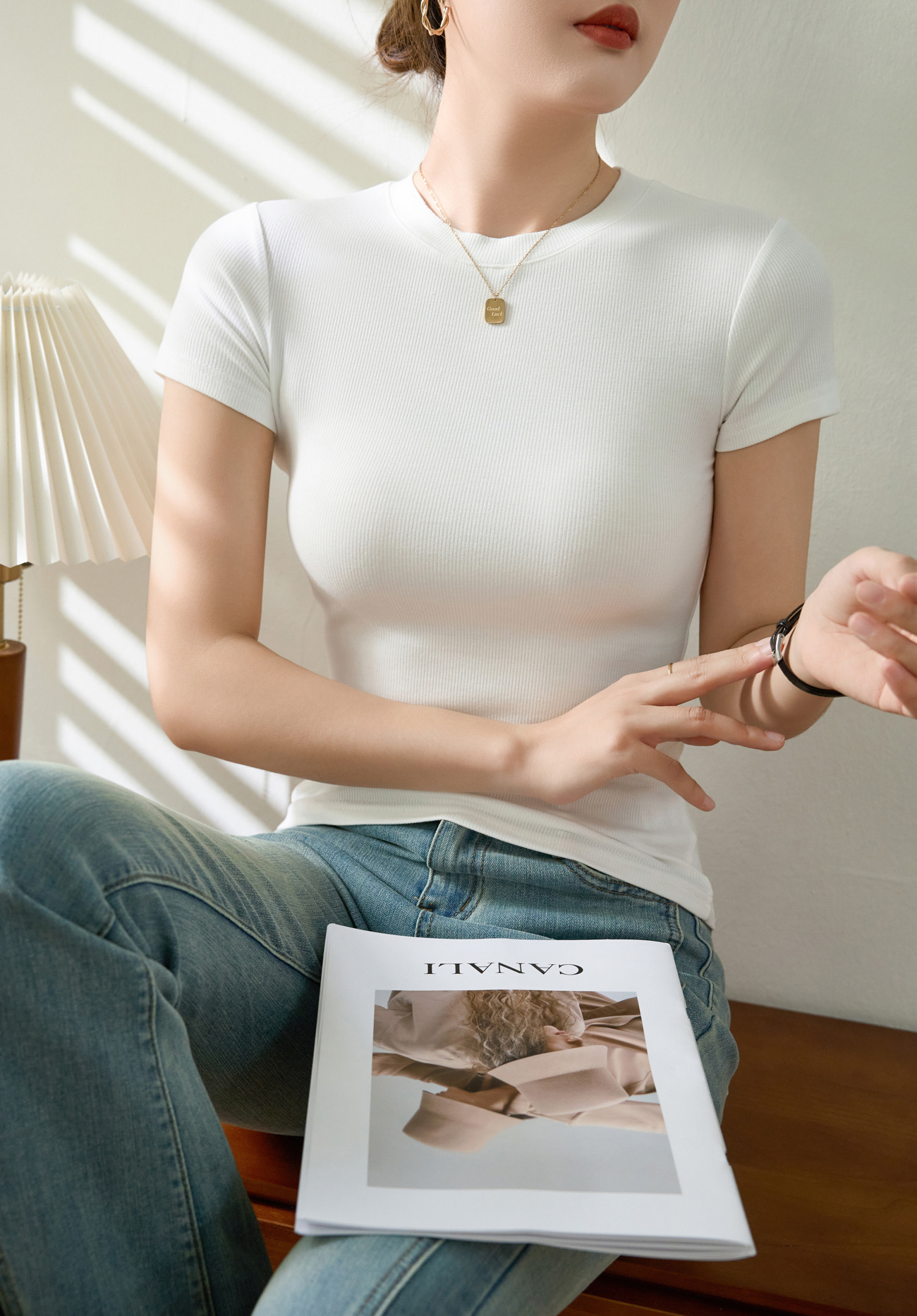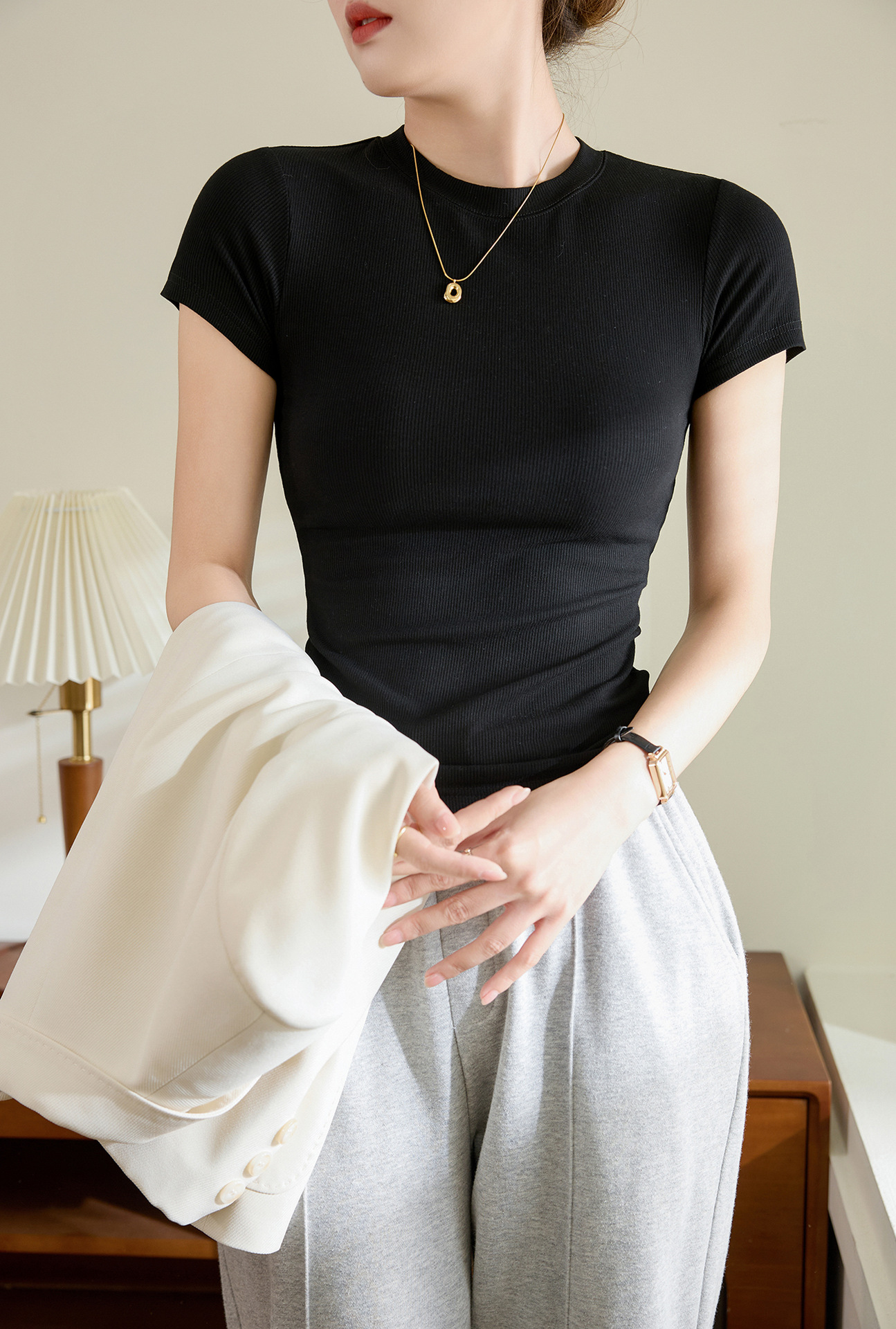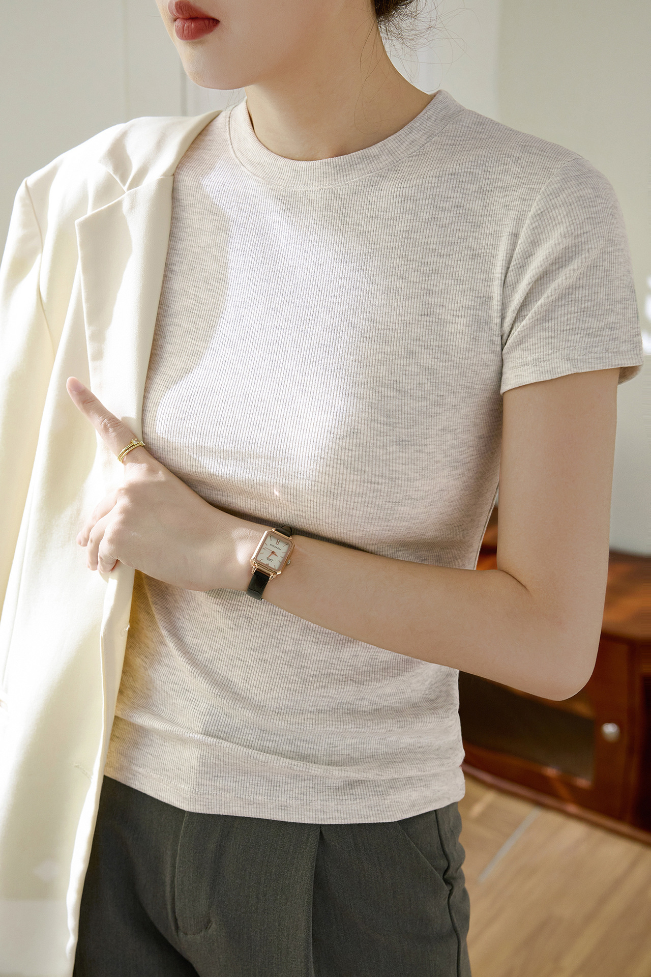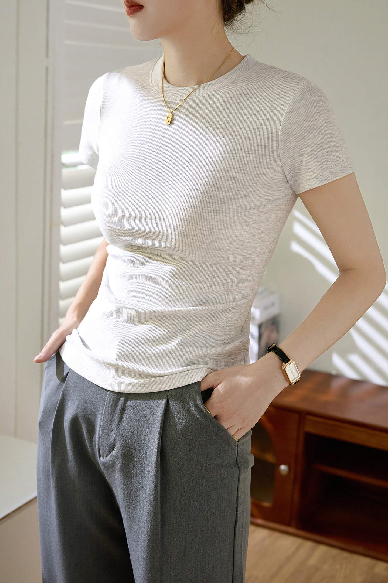 &좋은 소재 사용& 고탄성 코튼 슬림핏 반팔 티셔츠 여성 여름 2026 신상 만능 상의 슬리밍 라운드넥 베이스 레이어