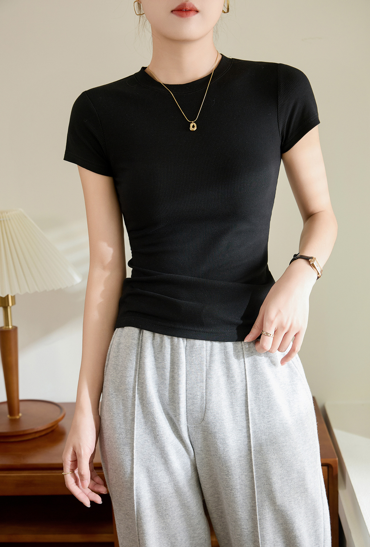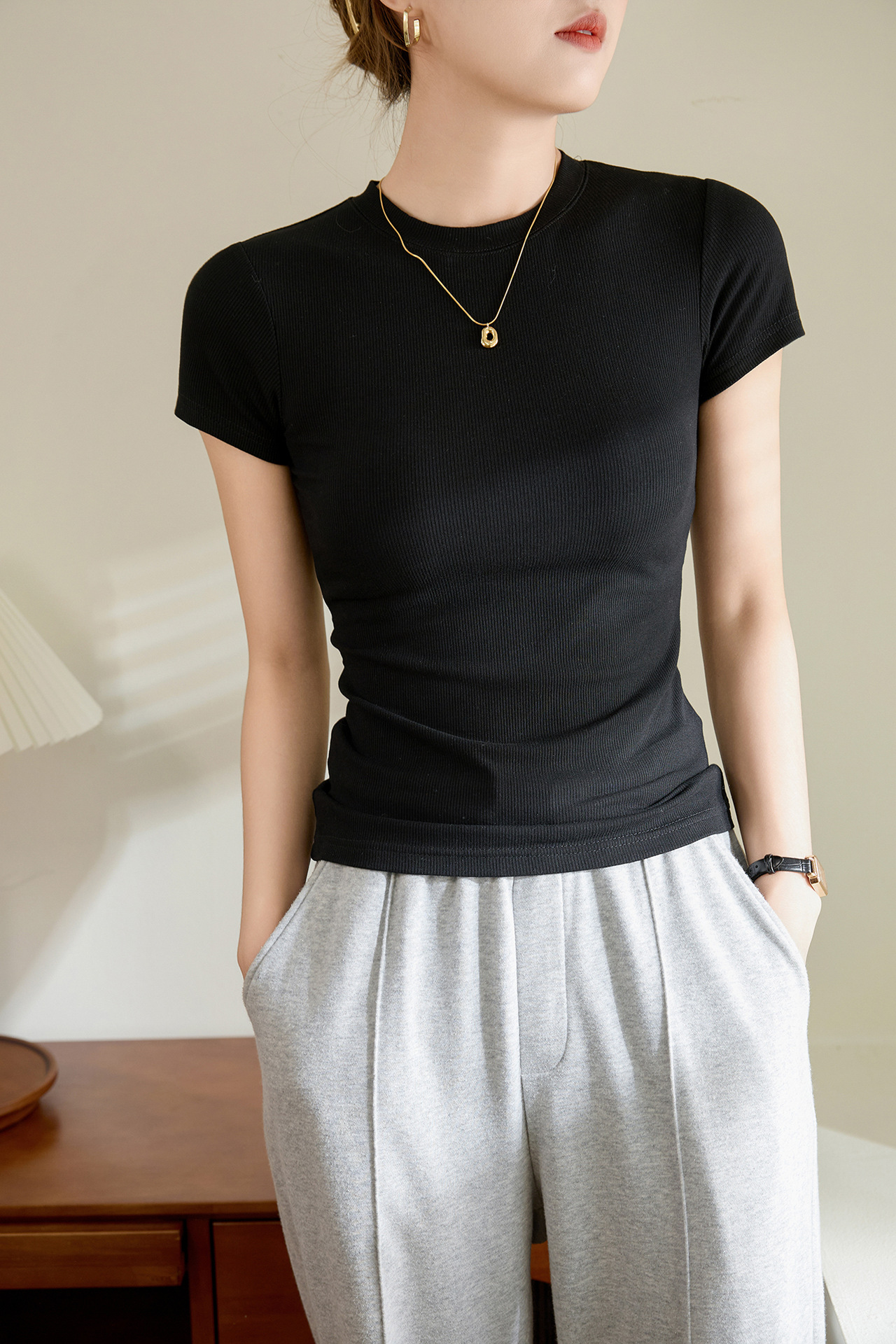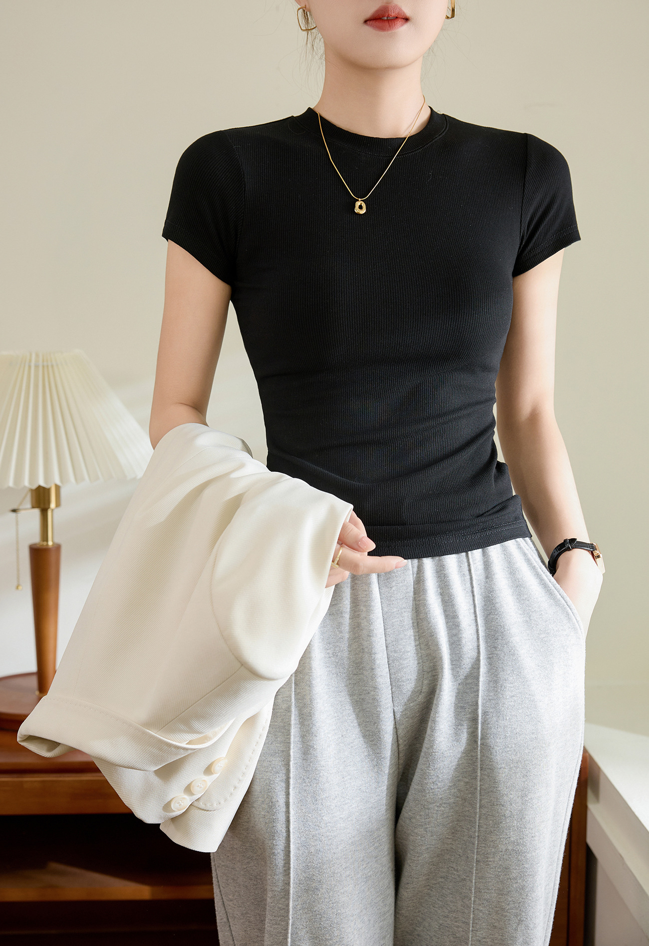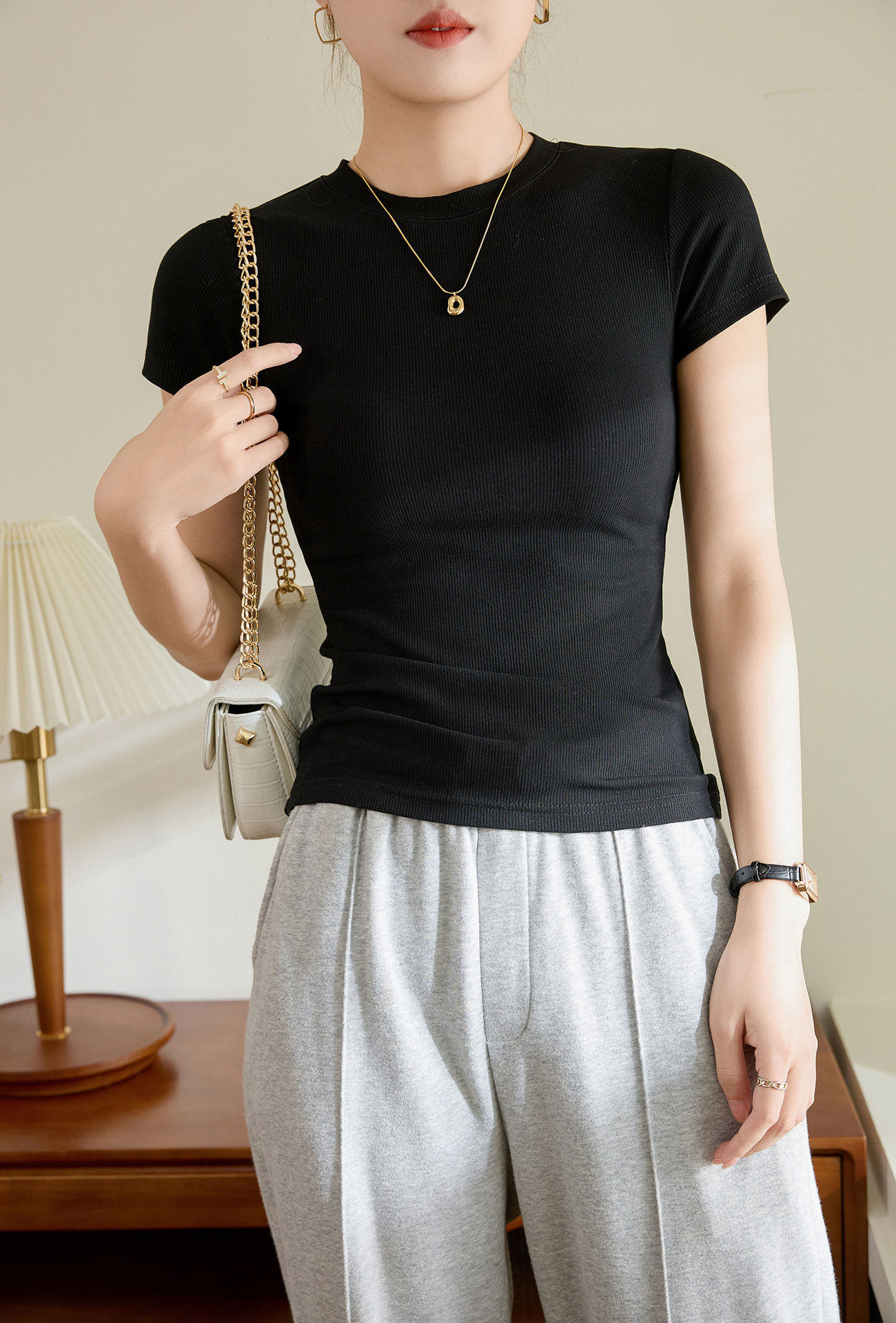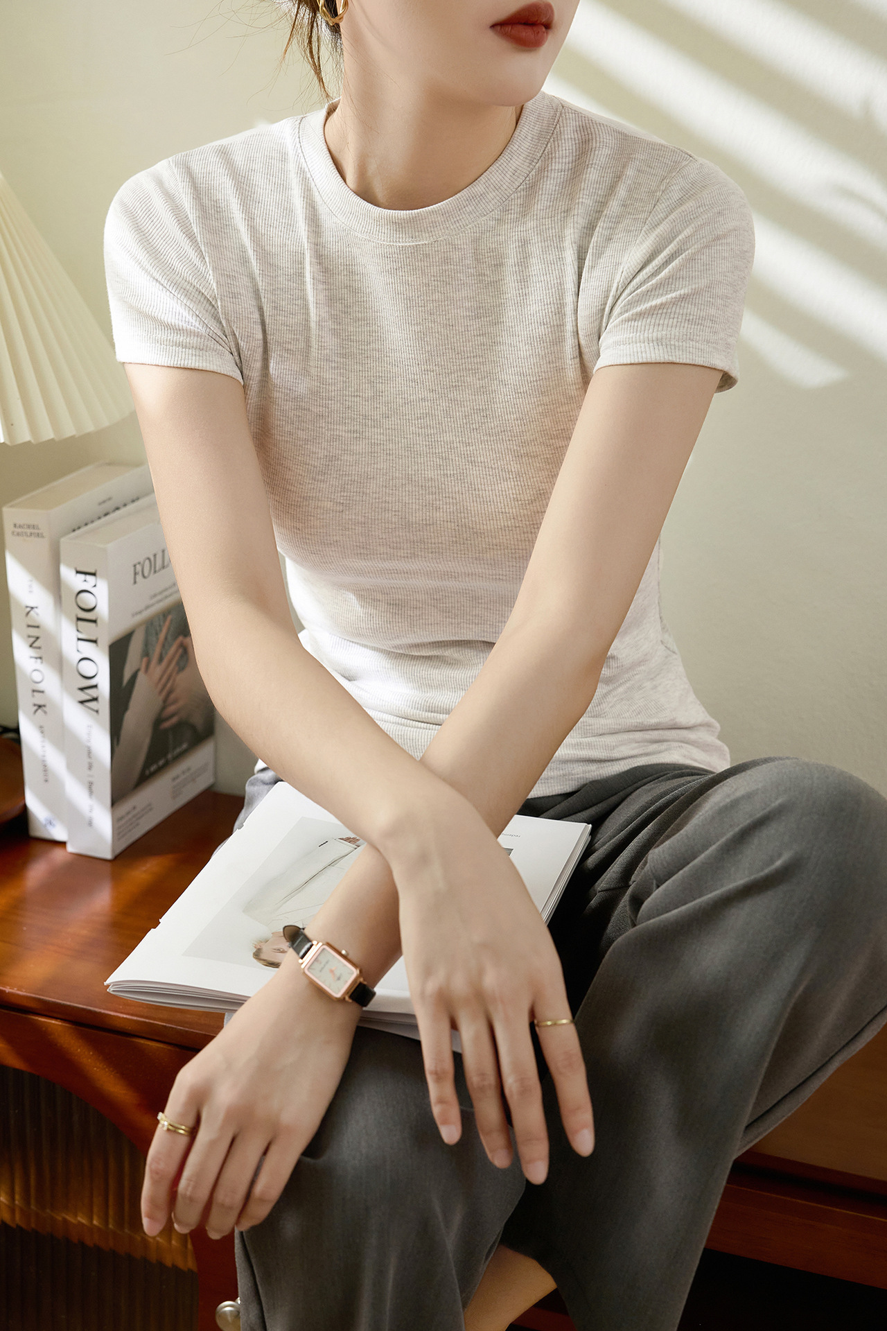 &좋은 소재 사용& 고탄성 코튼 슬림핏 반팔 티셔츠 여성 여름 2026 신상 만능 상의 슬리밍 라운드넥 베이스 레이어