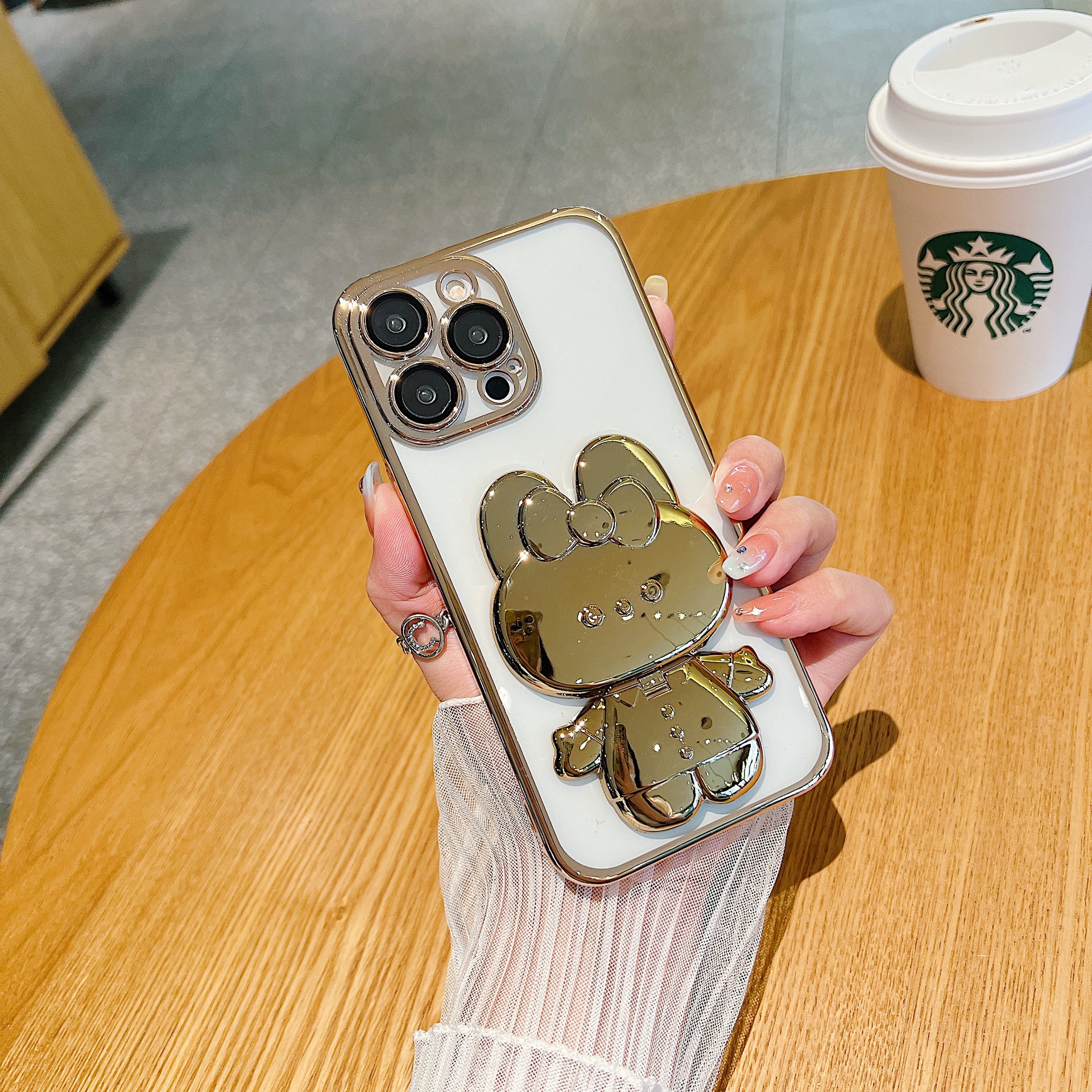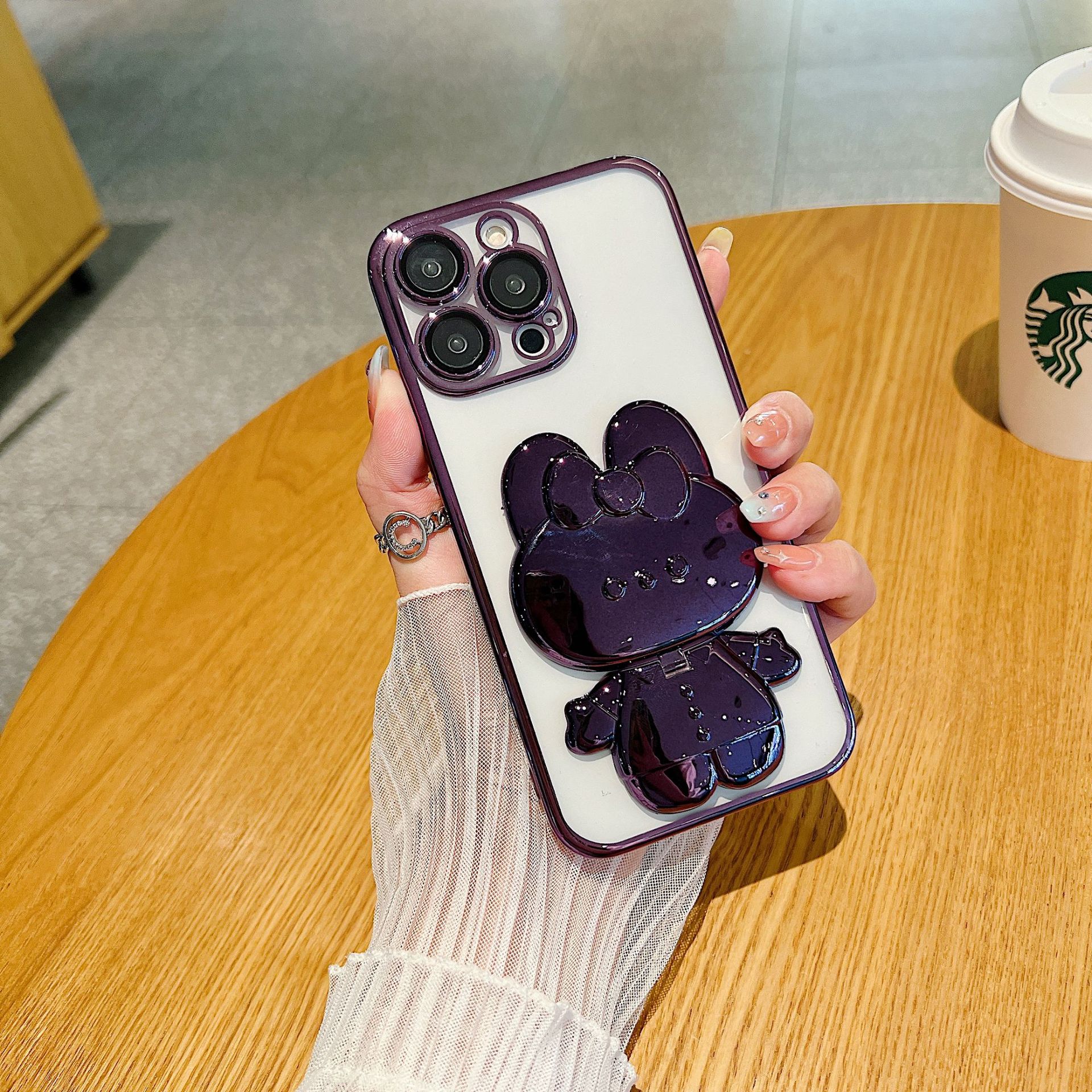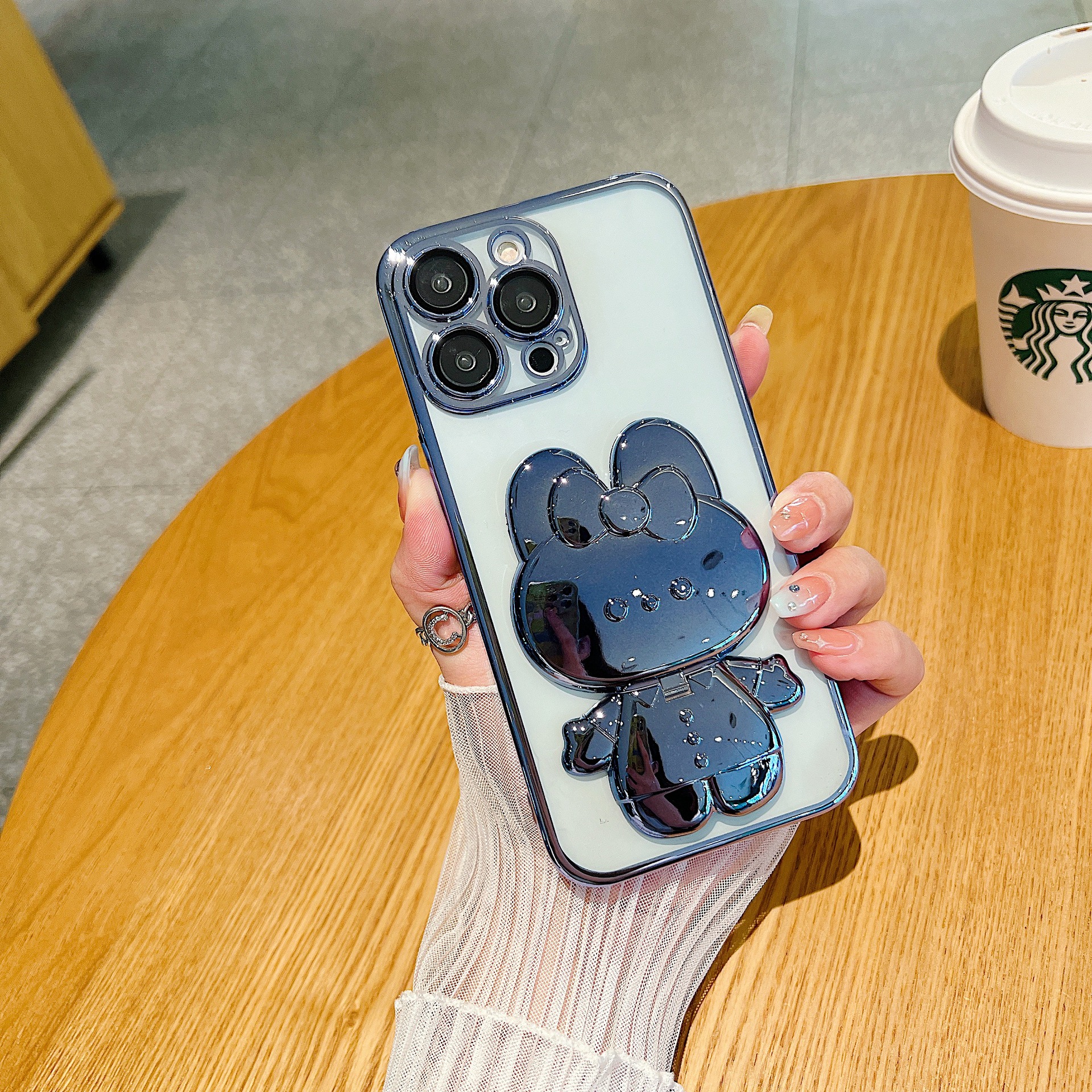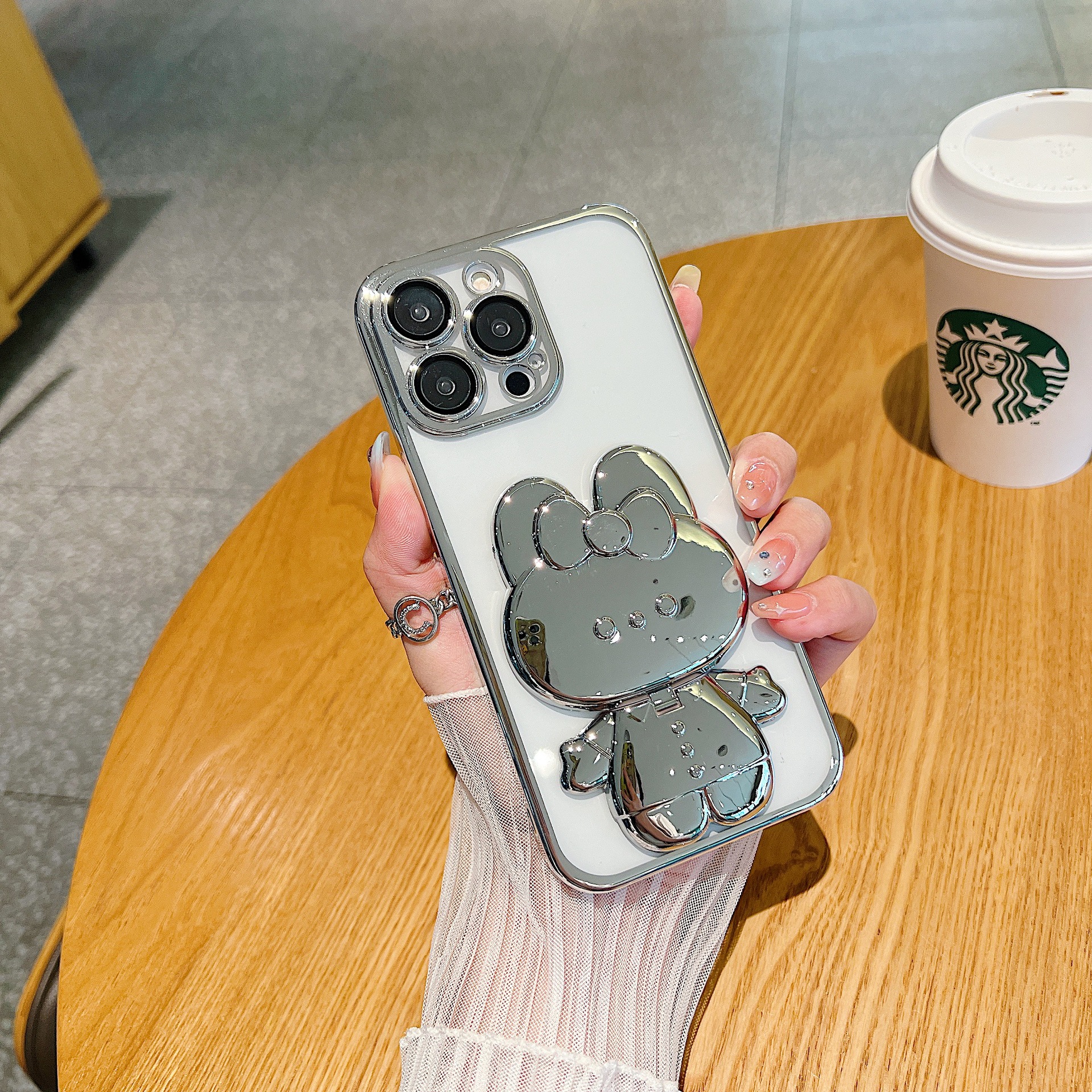 완전 전기 도금 KT 토끼 거울 휴대 전화 홀더 소녀 메이크업 미러 휴대 전화 쉘 홀더 데스크탑 브러시 TikTok 수평 및 수직 이중 사용