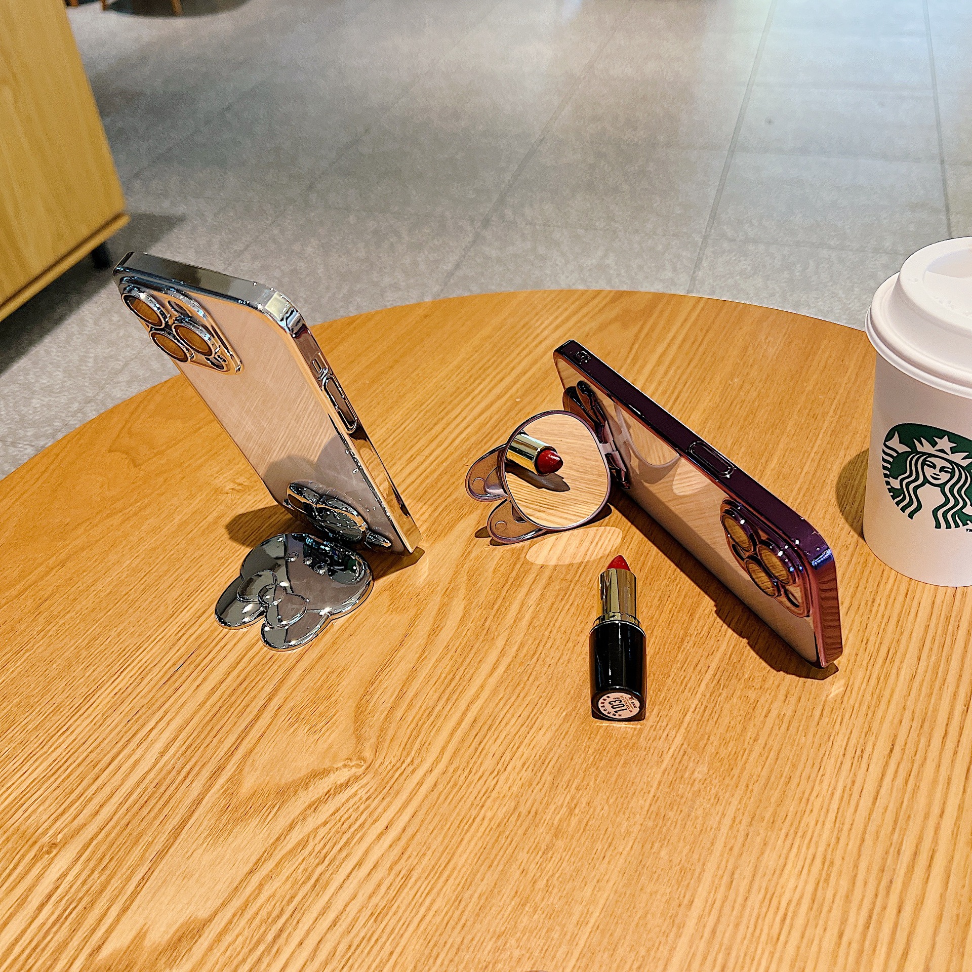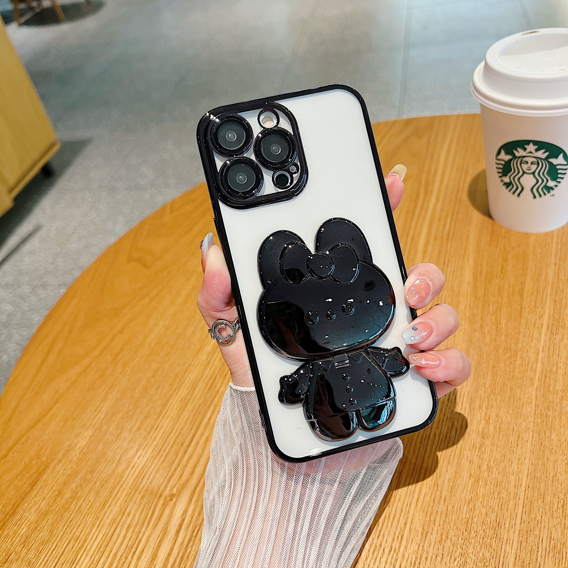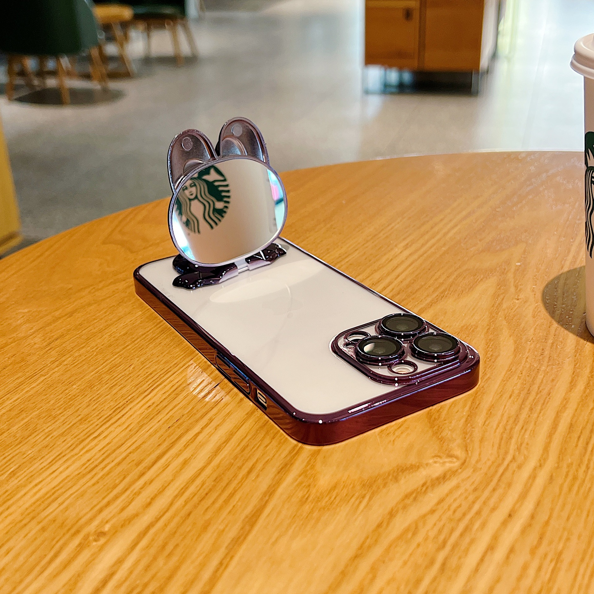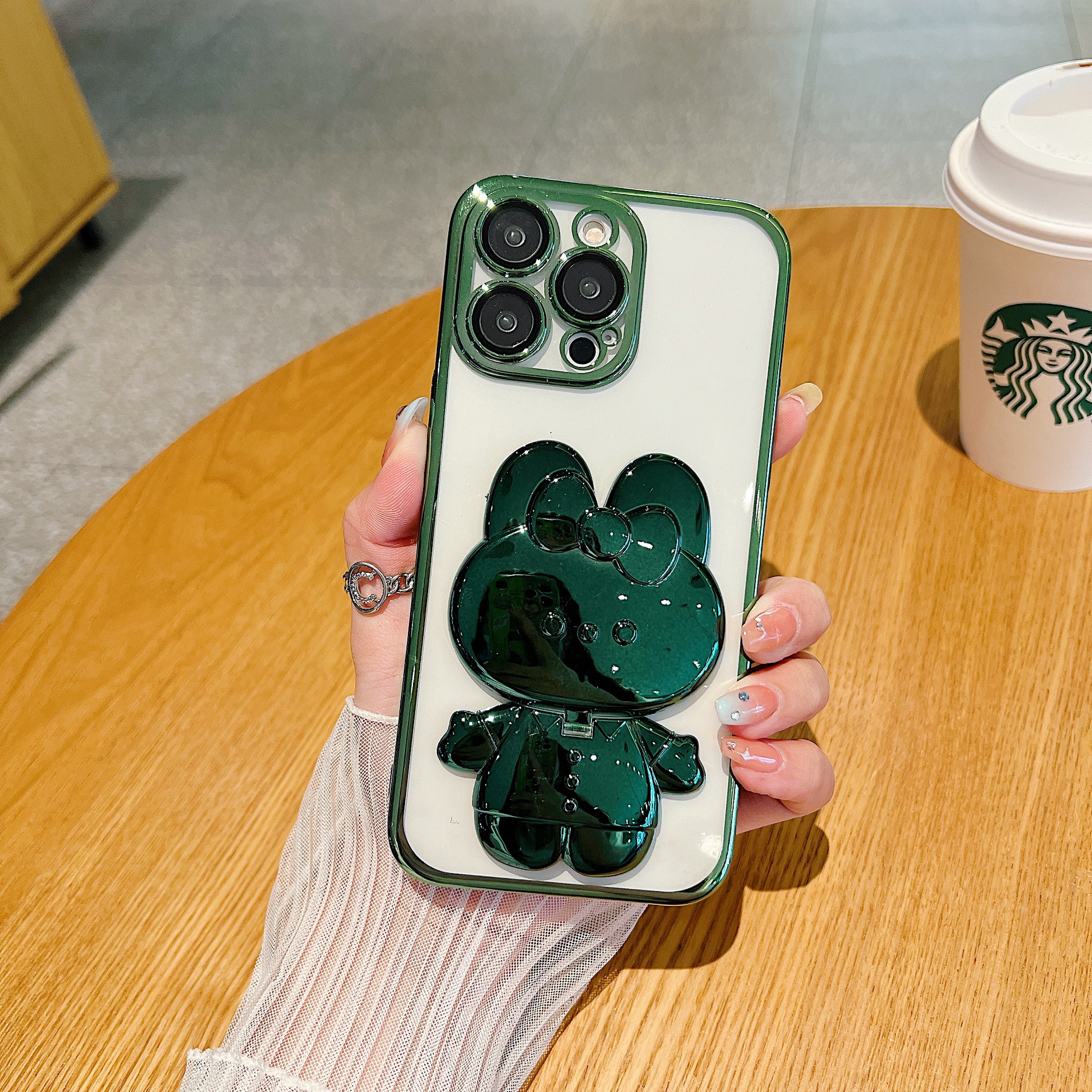 완전 전기 도금 KT 토끼 거울 휴대 전화 홀더 소녀 메이크업 미러 휴대 전화 쉘 홀더 데스크탑 브러시 TikTok 수평 및 수직 이중 사용
