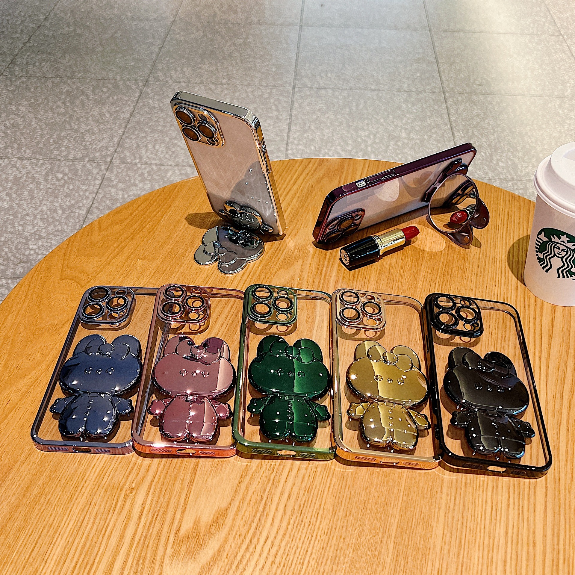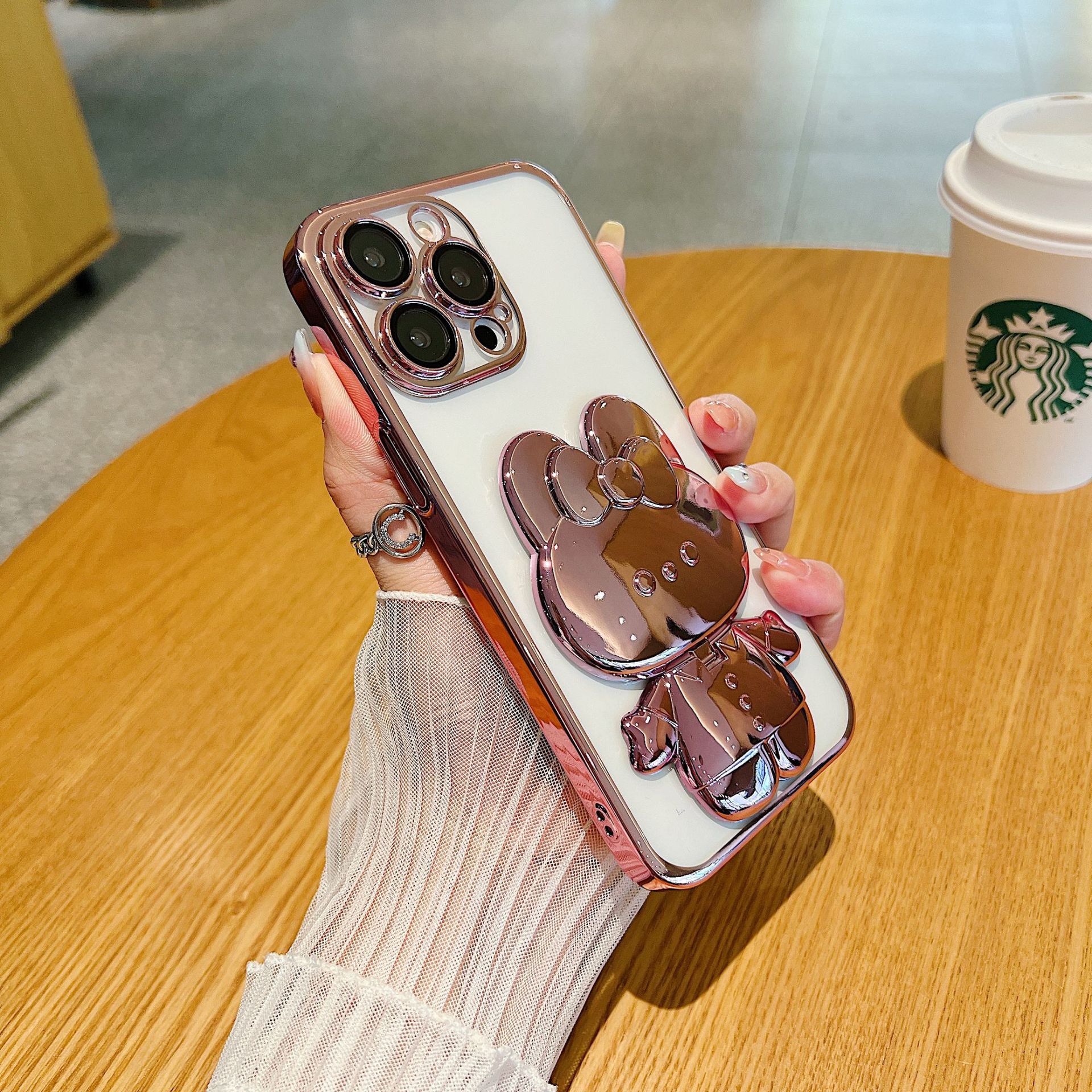 완전 전기 도금 KT 토끼 거울 휴대 전화 홀더 소녀 메이크업 미러 휴대 전화 쉘 홀더 데스크탑 브러시 TikTok 수평 및 수직 이중 사용스토어 가기