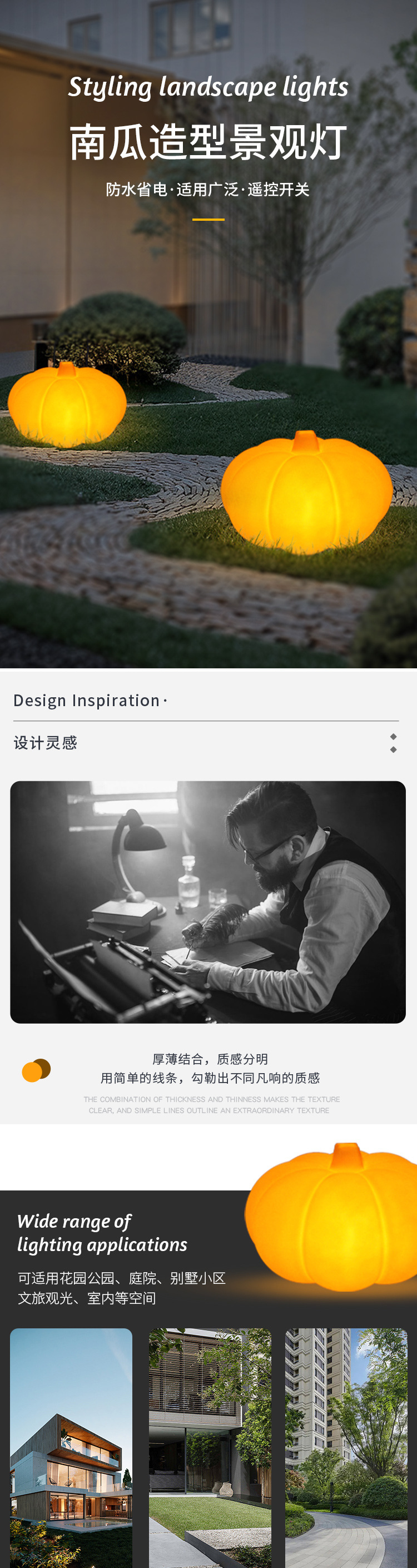 LED 야외 빛나는 호박 빛 모델링 램프 현대 안뜰 정원 잔디 램프 태양 대기 풍경 램프