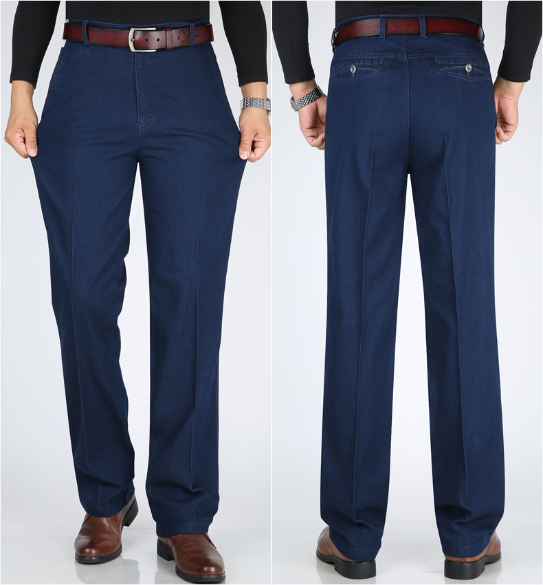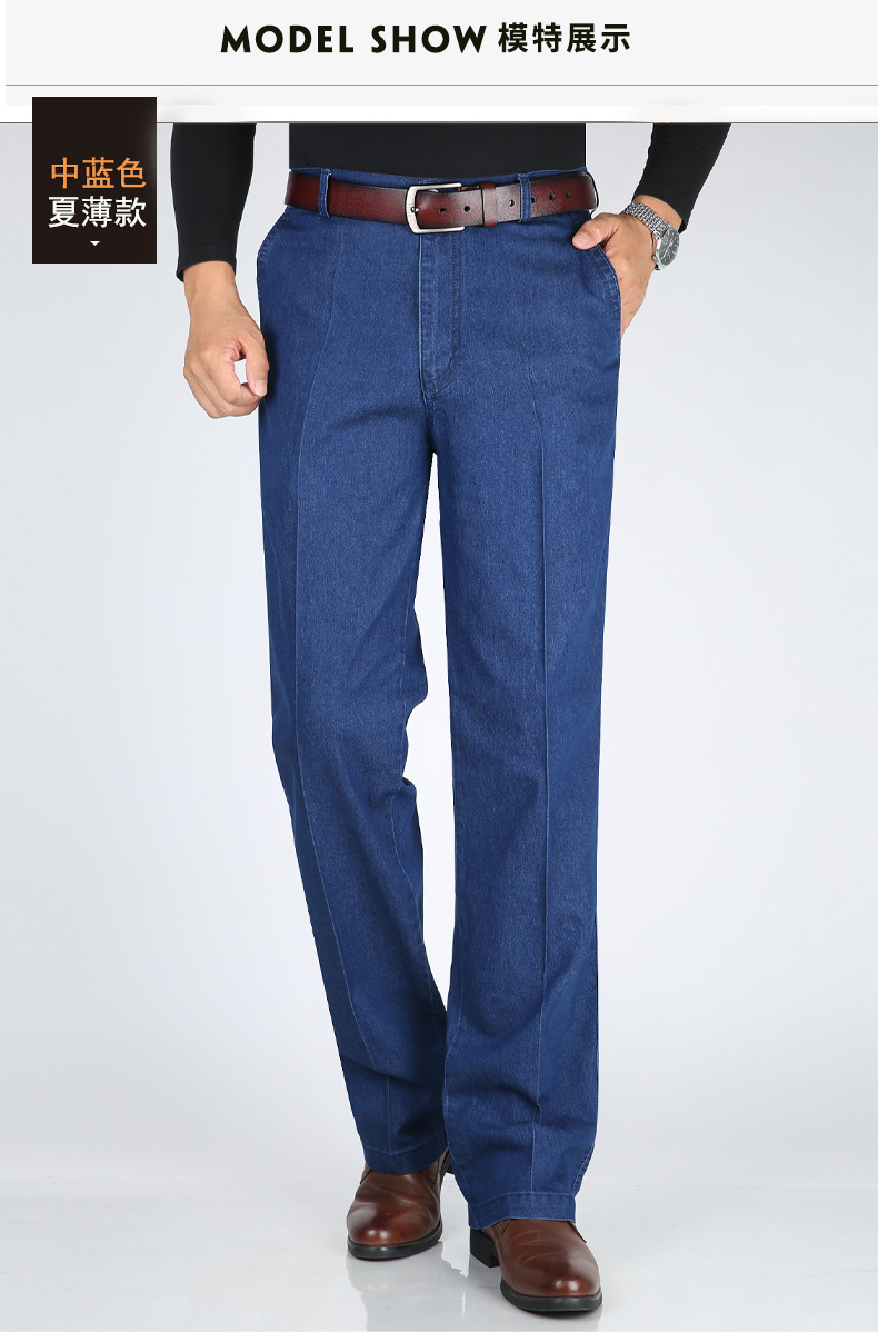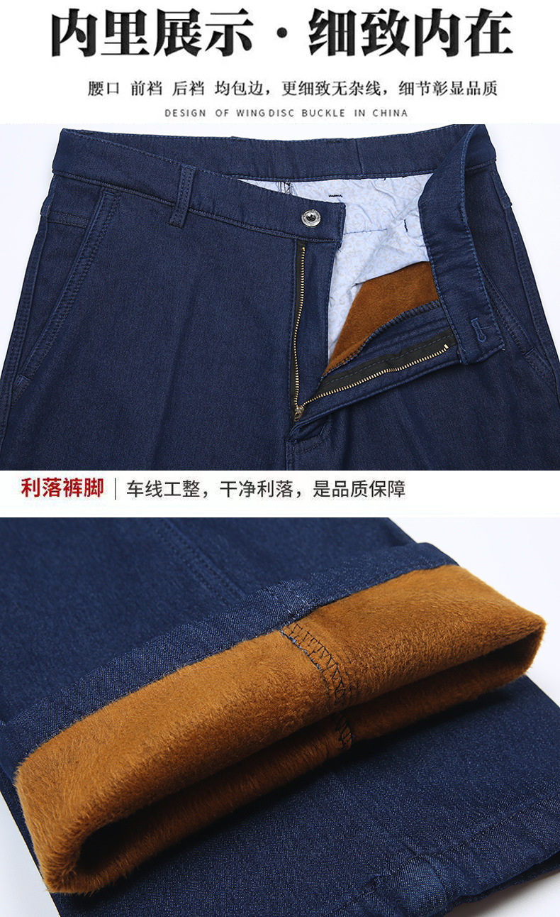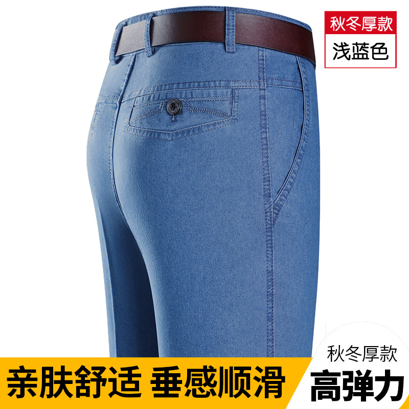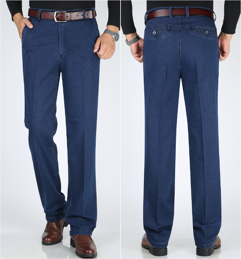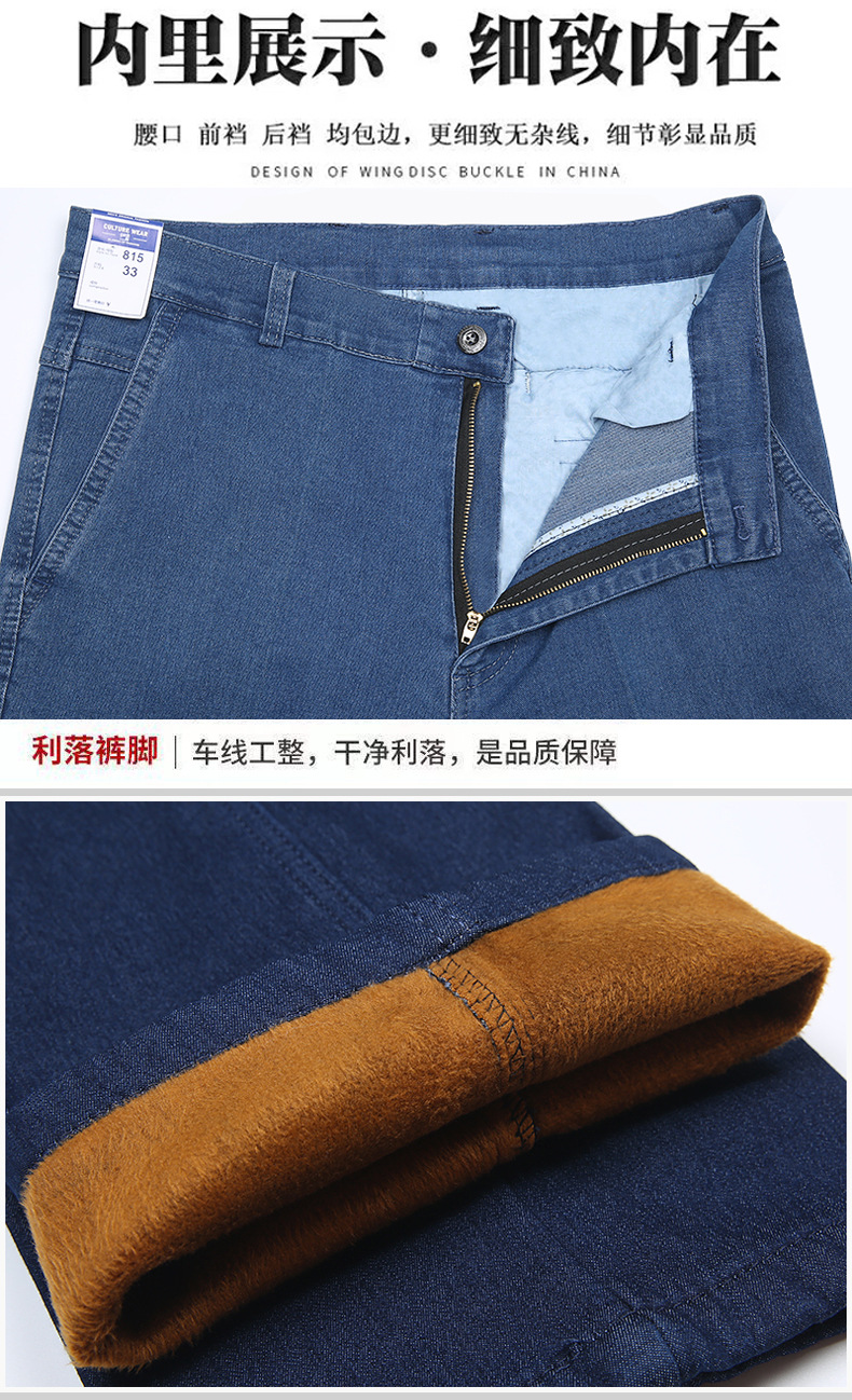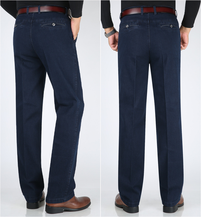 가을 겨울 두꺼운 청바지 중년 및 노년 남성용 루즈핏 스트레이트 하이웨이스트 딥컷 신축성 캐주얼 팬츠 아빠용 긴바지스토어 가기