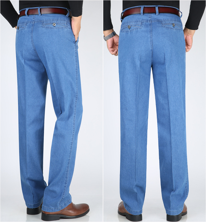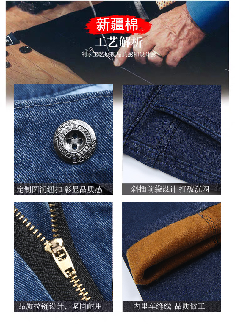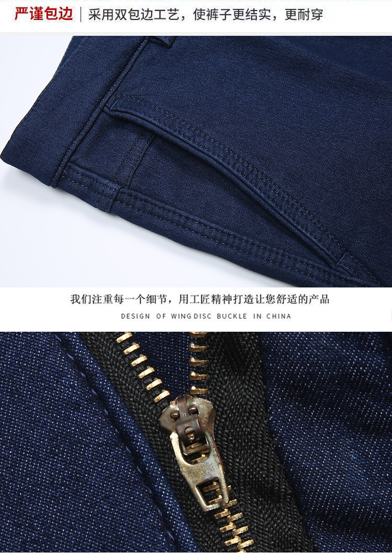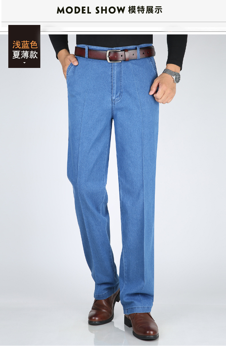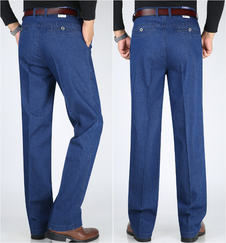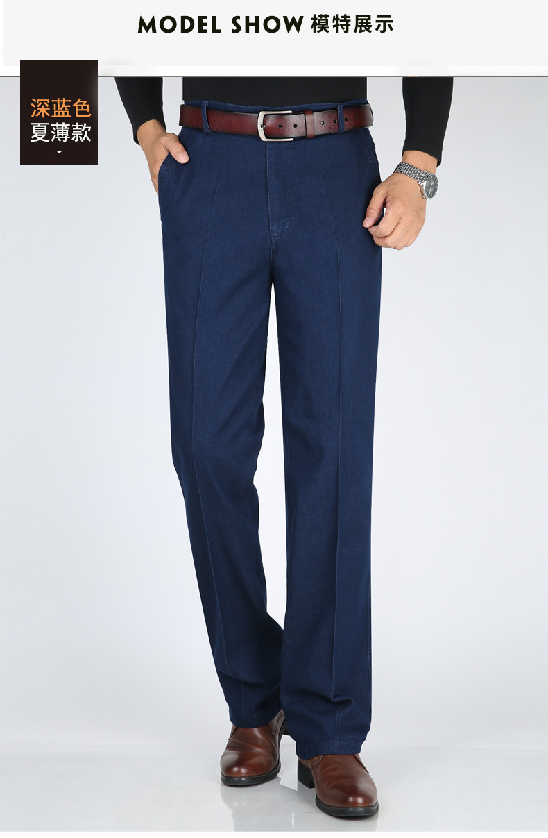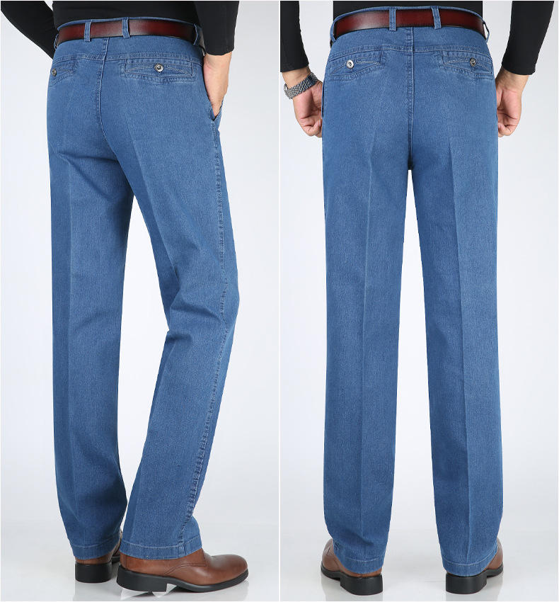 가을 겨울 두꺼운 청바지 중년 및 노년 남성용 루즈핏 스트레이트 하이웨이스트 딥컷 신축성 캐주얼 팬츠 아빠용 긴바지스토어 가기