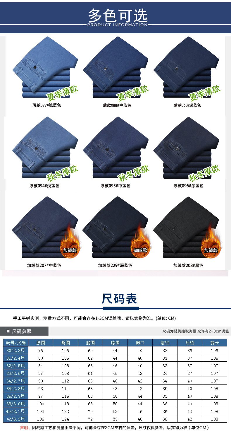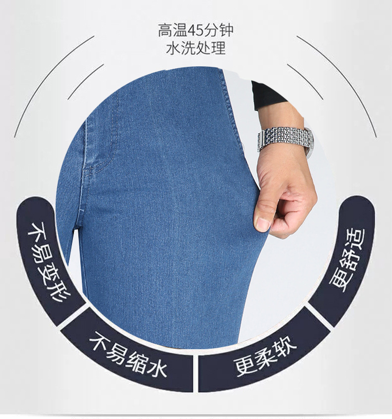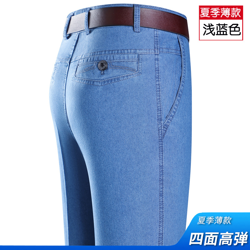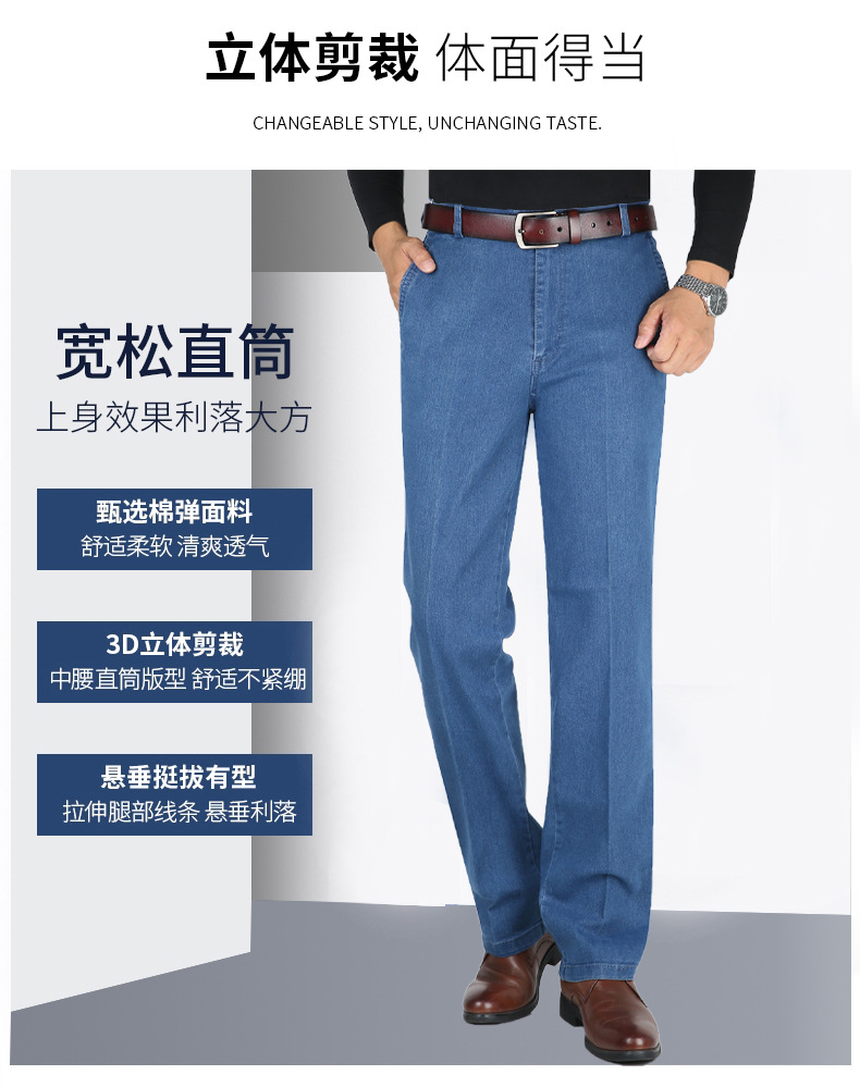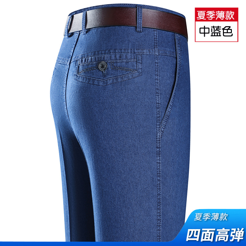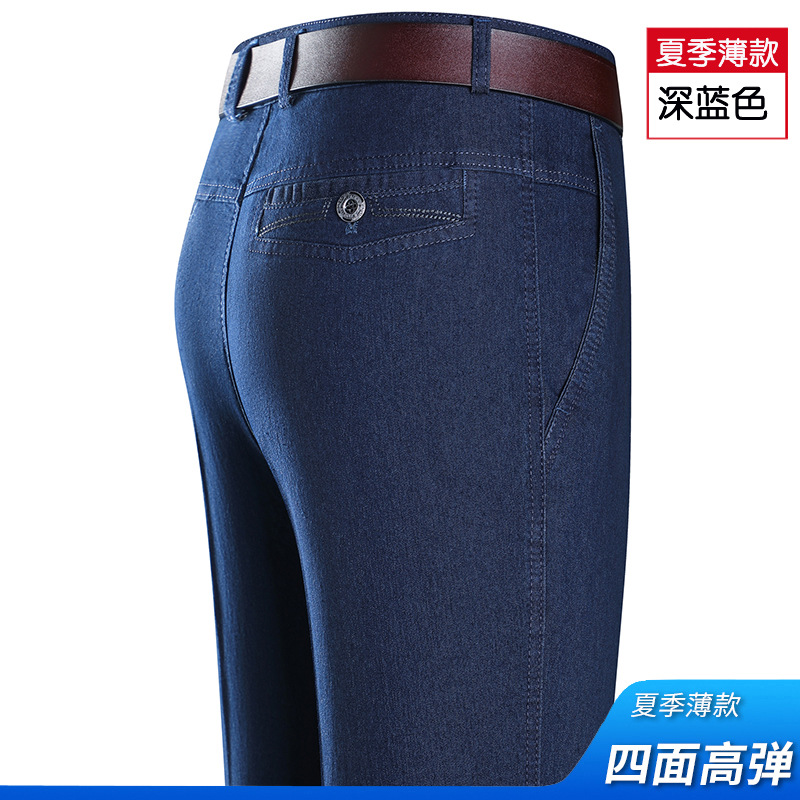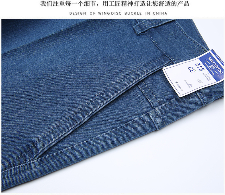 가을 겨울 두꺼운 청바지 중년 및 노년 남성용 루즈핏 스트레이트 하이웨이스트 딥컷 신축성 캐주얼 팬츠 아빠용 긴바지스토어 가기