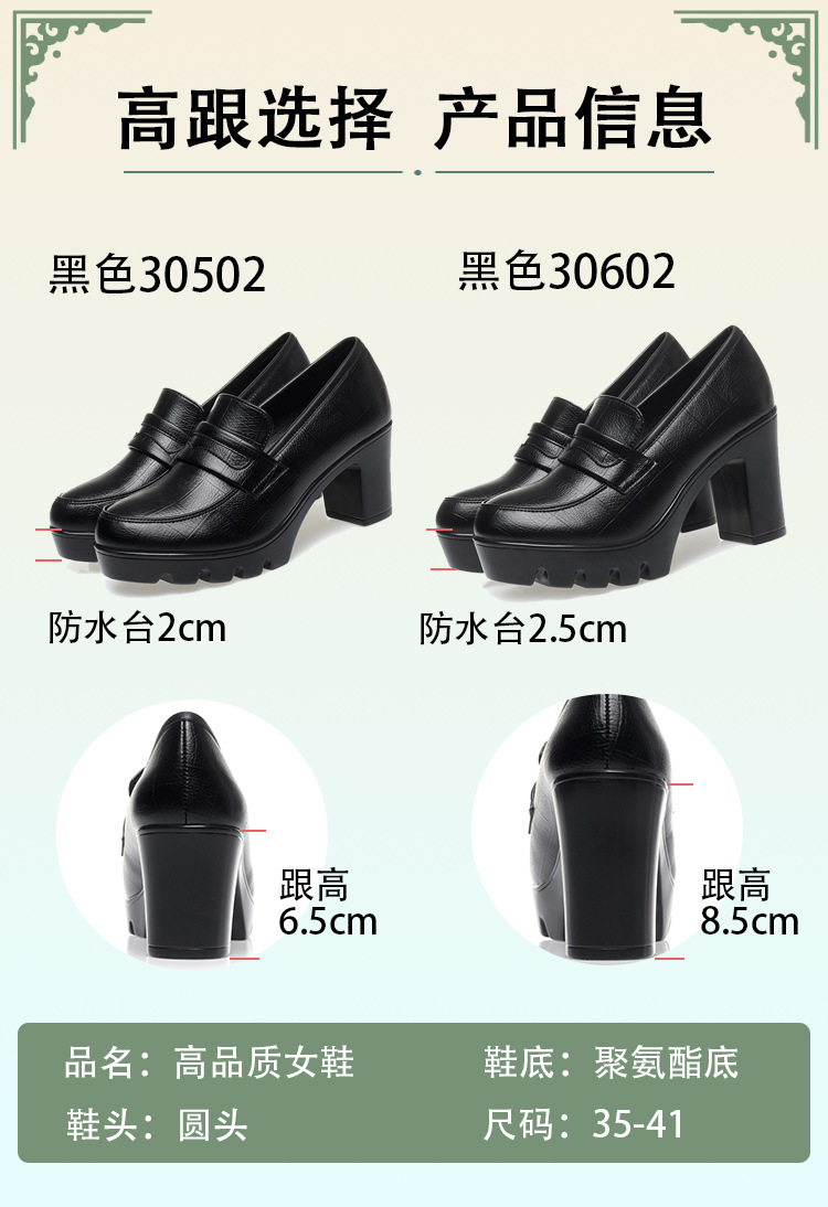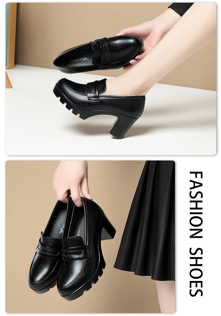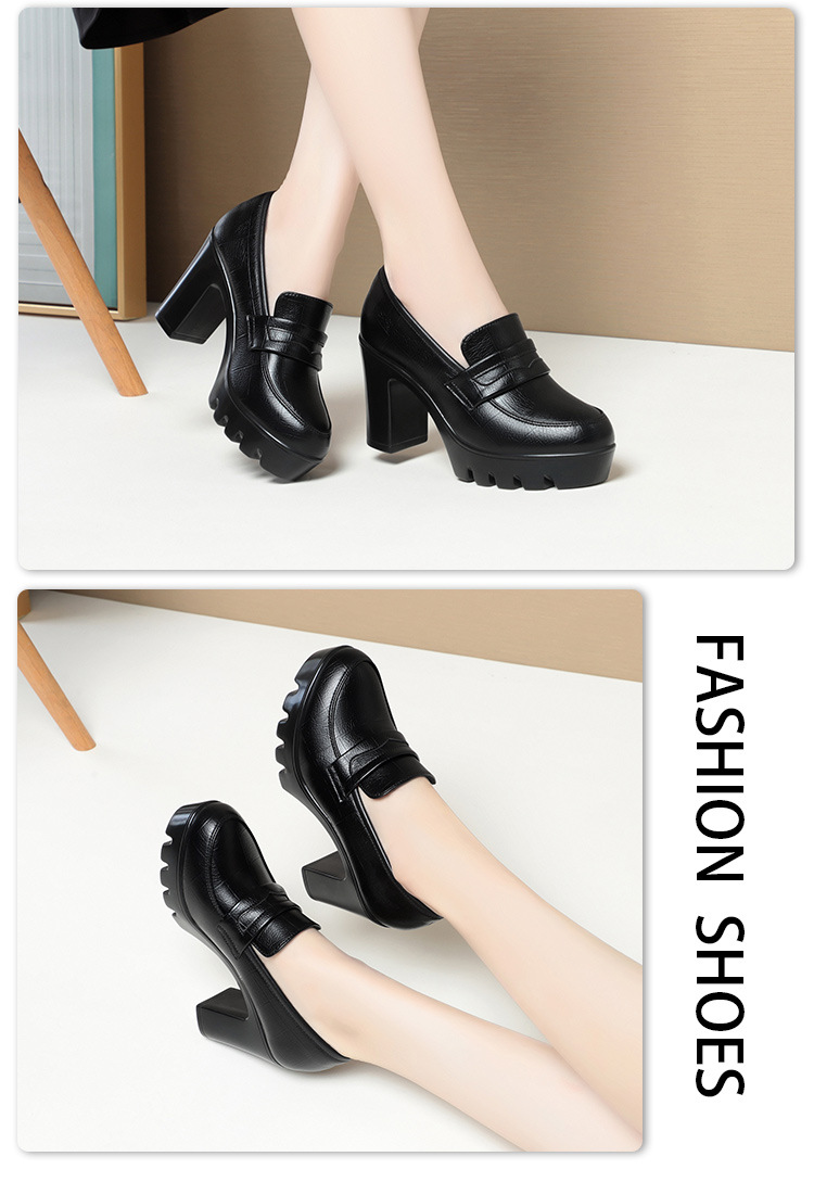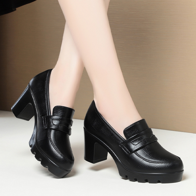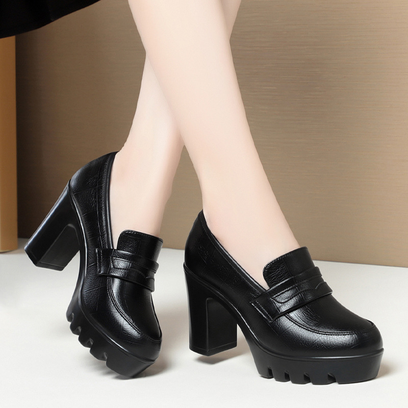 여성용 하이힐 2025 신상 봄 가을 가죽 신발 다용도 깊은 굽 단화 편안한 두꺼운 밑창 방수 플랫폼 두꺼운 굽 여성화