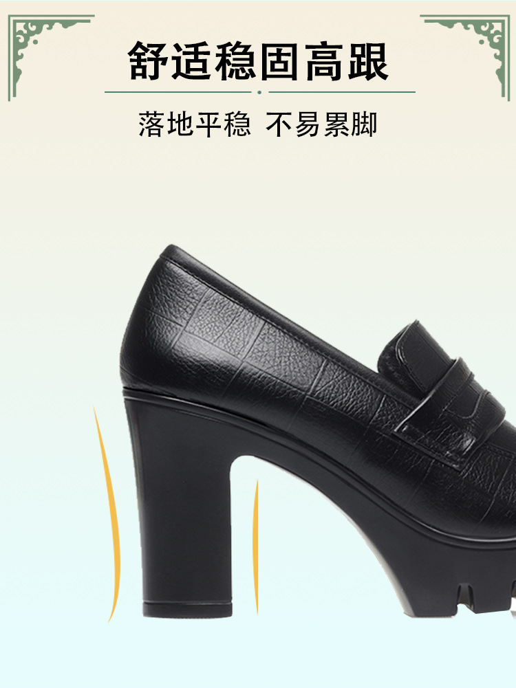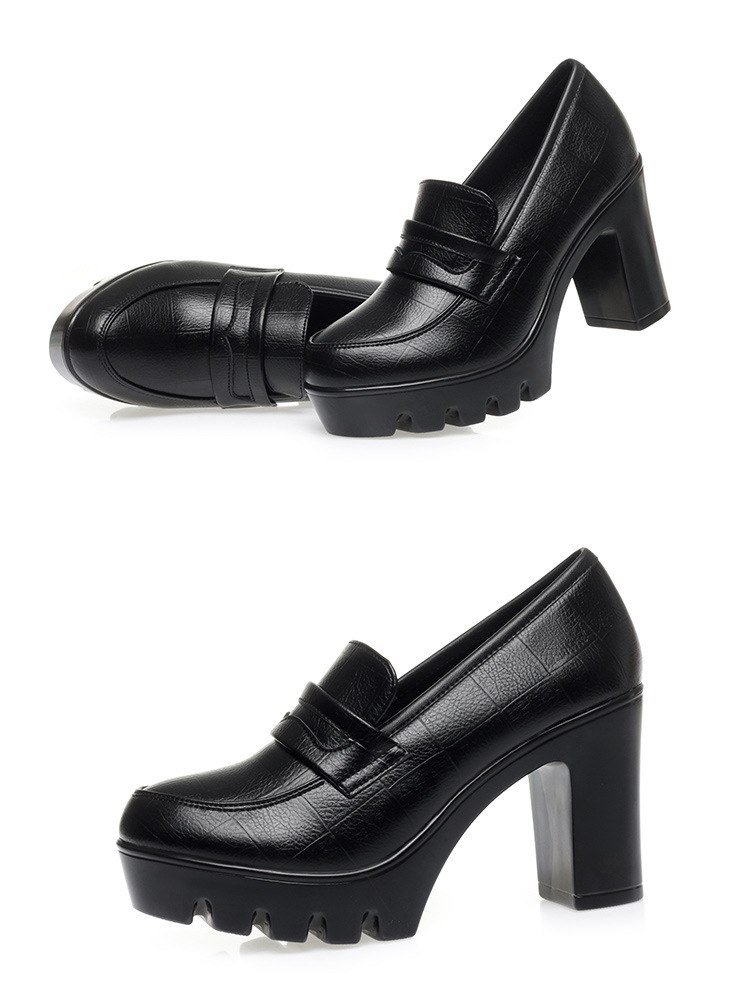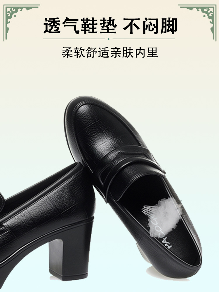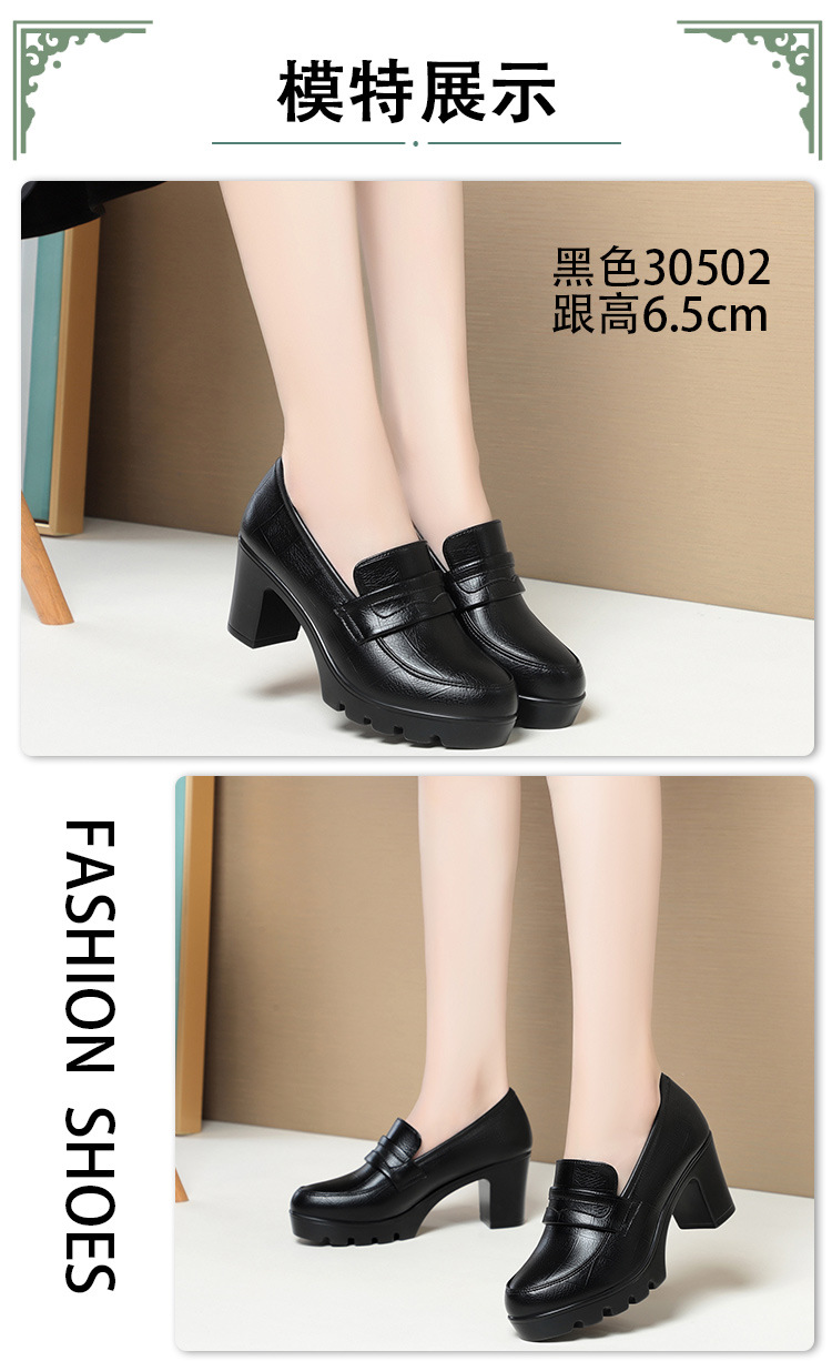 여성용 하이힐 2025 신상 봄 가을 가죽 신발 다용도 깊은 굽 단화 편안한 두꺼운 밑창 방수 플랫폼 두꺼운 굽 여성화