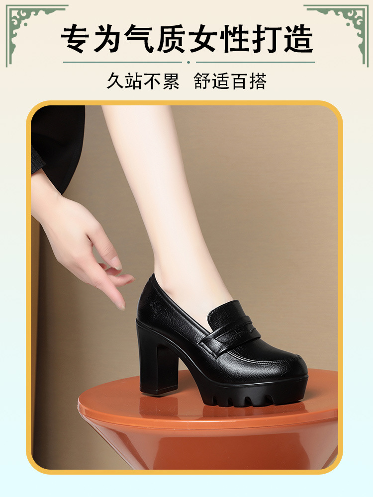 여성용 하이힐 2025 신상 봄 가을 가죽 신발 다용도 깊은 굽 단화 편안한 두꺼운 밑창 방수 플랫폼 두꺼운 굽 여성화스토어 가기
