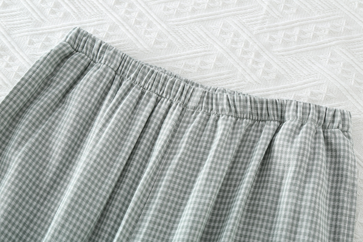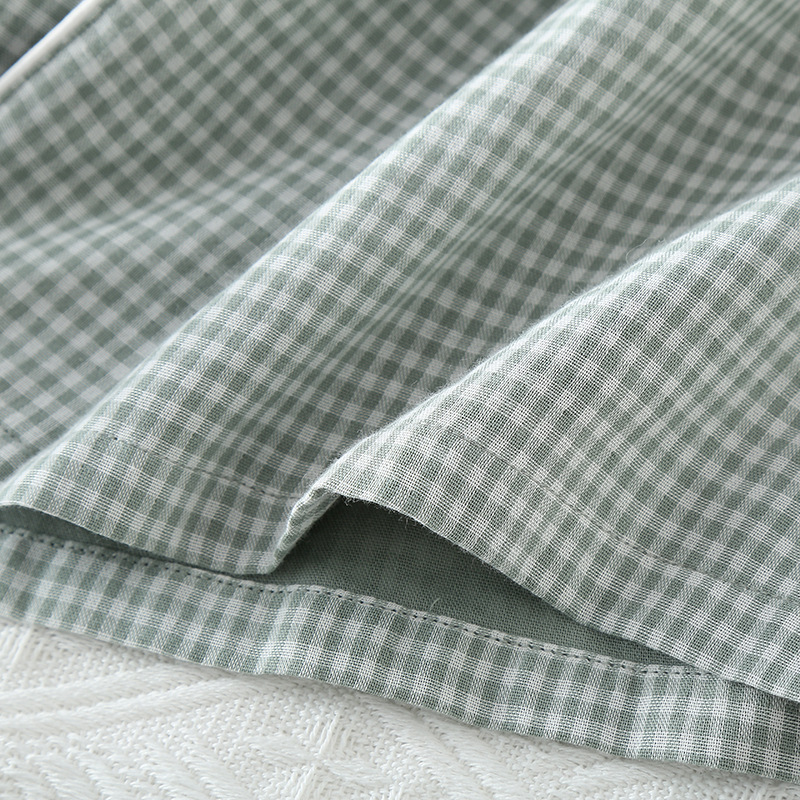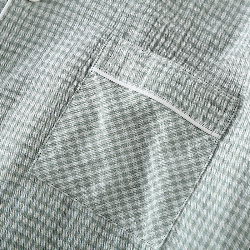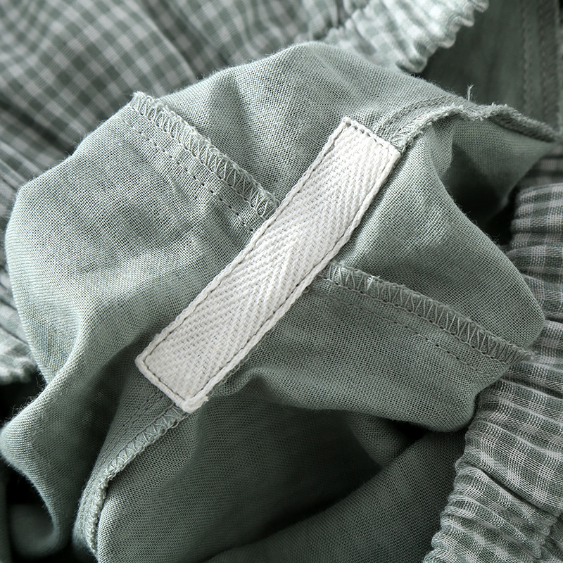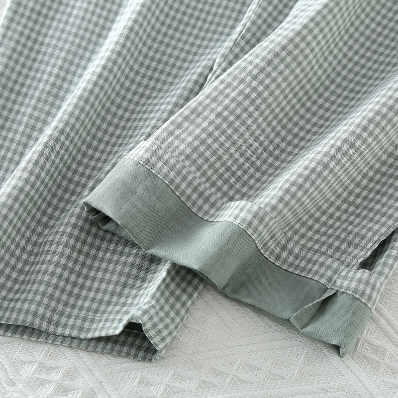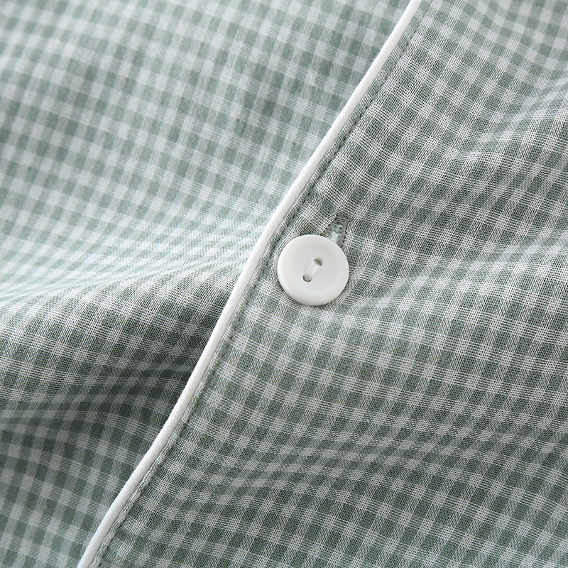 일본 무인쇄 스타일 봄, 가을, 여름 순면 더블 레이어 거즈 남성 잠옷 얇은 긴팔 격자 무늬 가정 의류 공장 도매스토어 가기