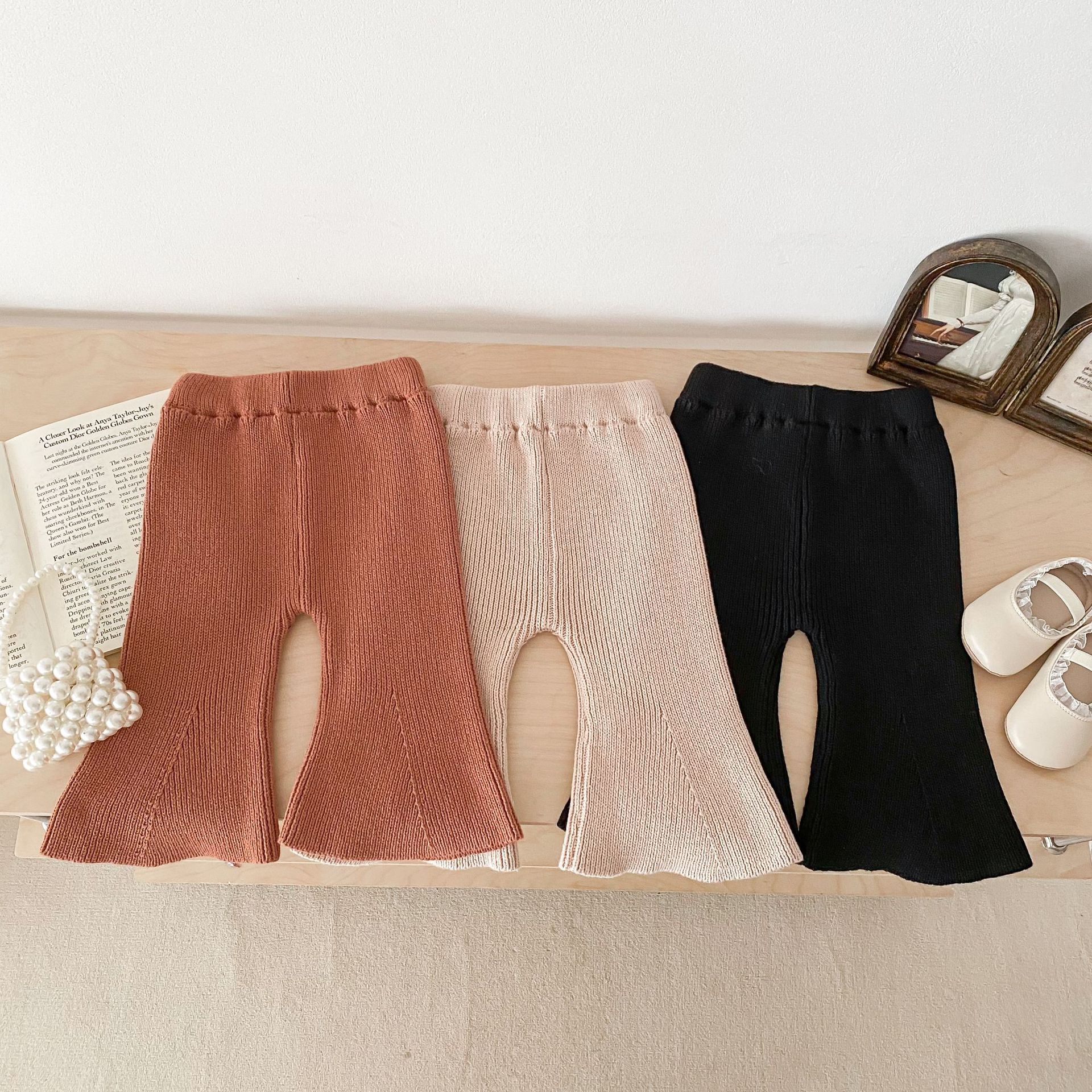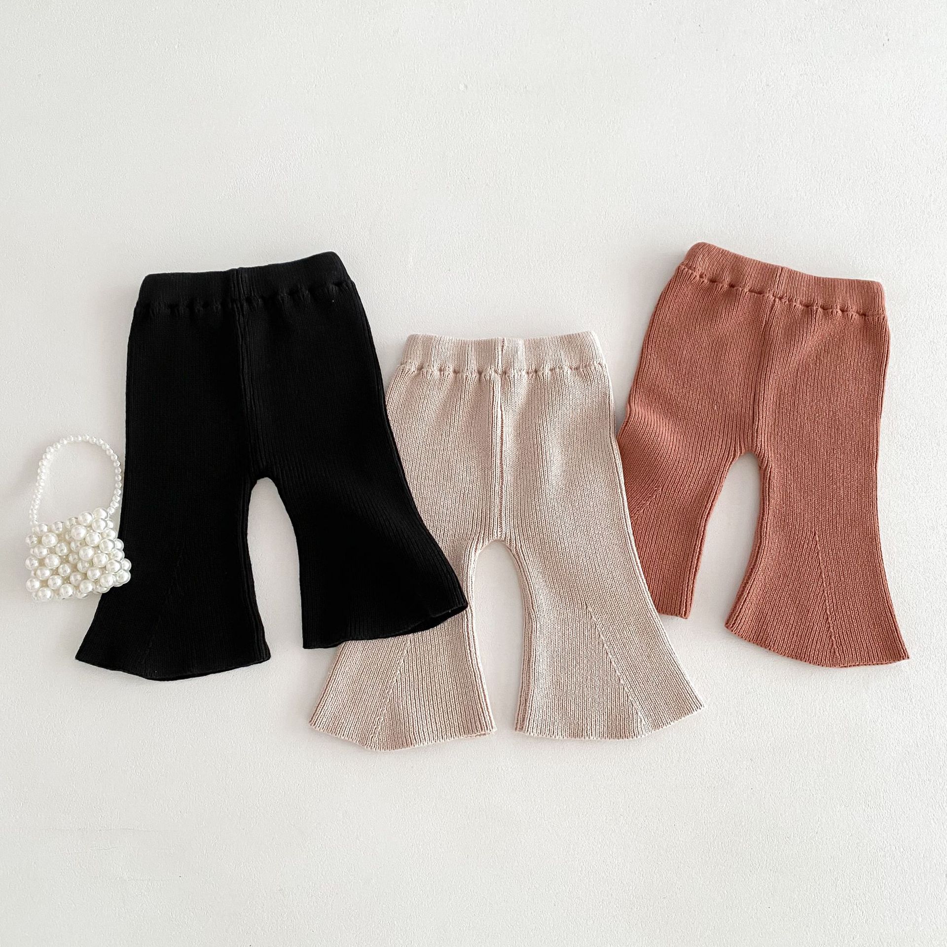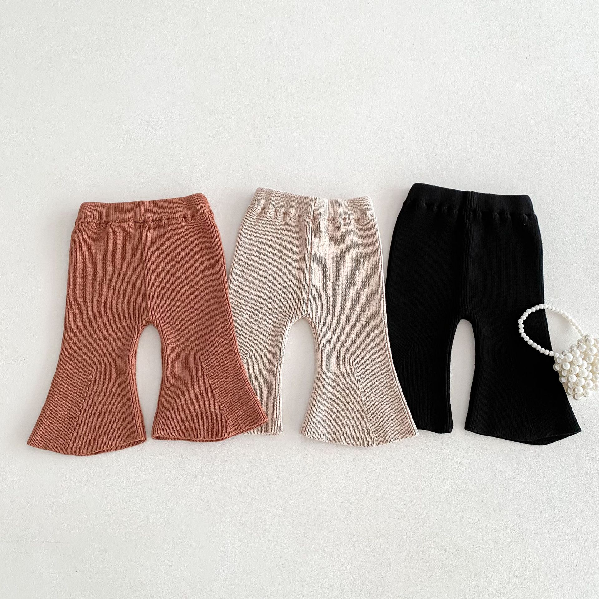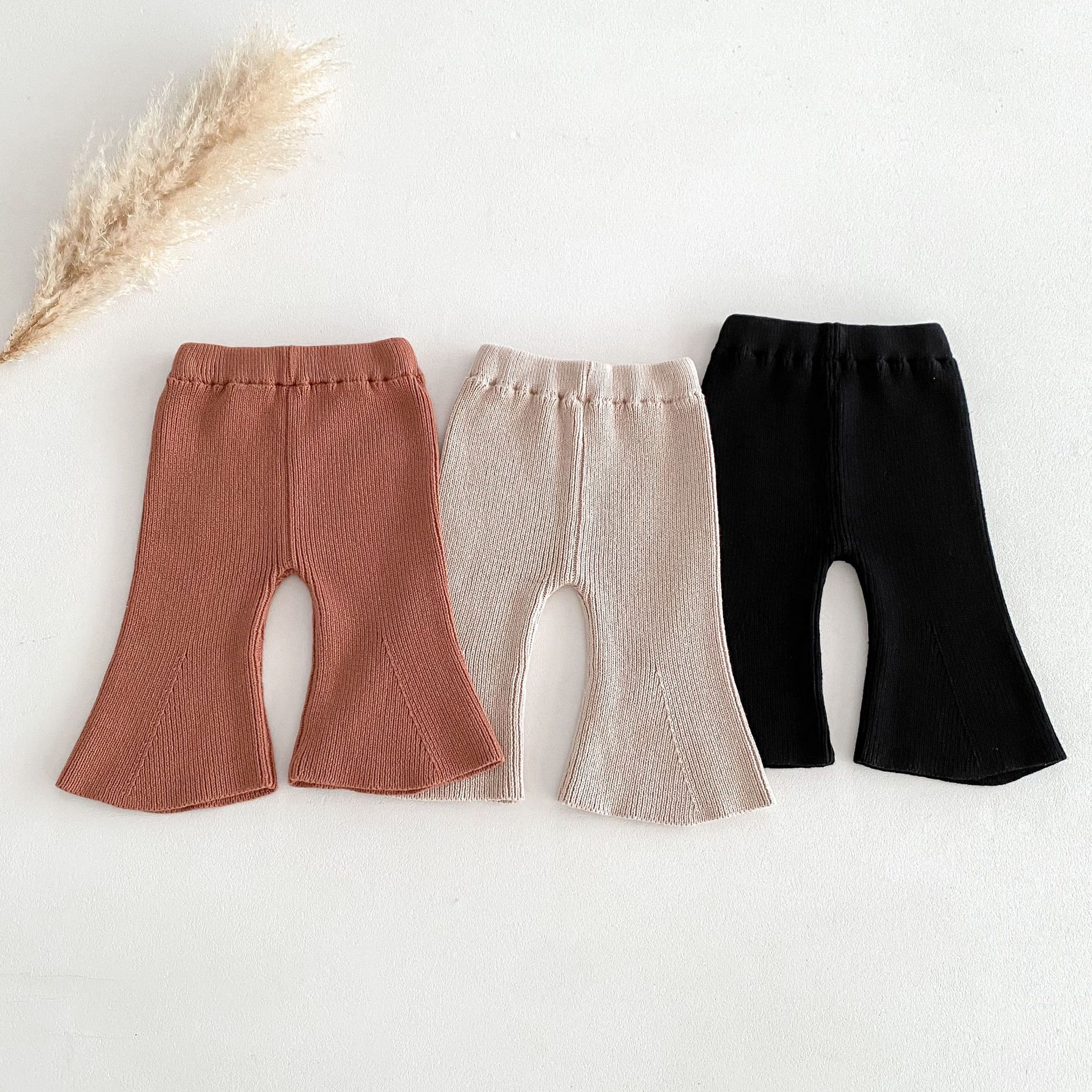 Ins 한국식 아동복 봄과 가을 아기 소녀 바지 니트 코튼 플레어 바지 유아 와이드 다리 바지 레깅스스토어 가기