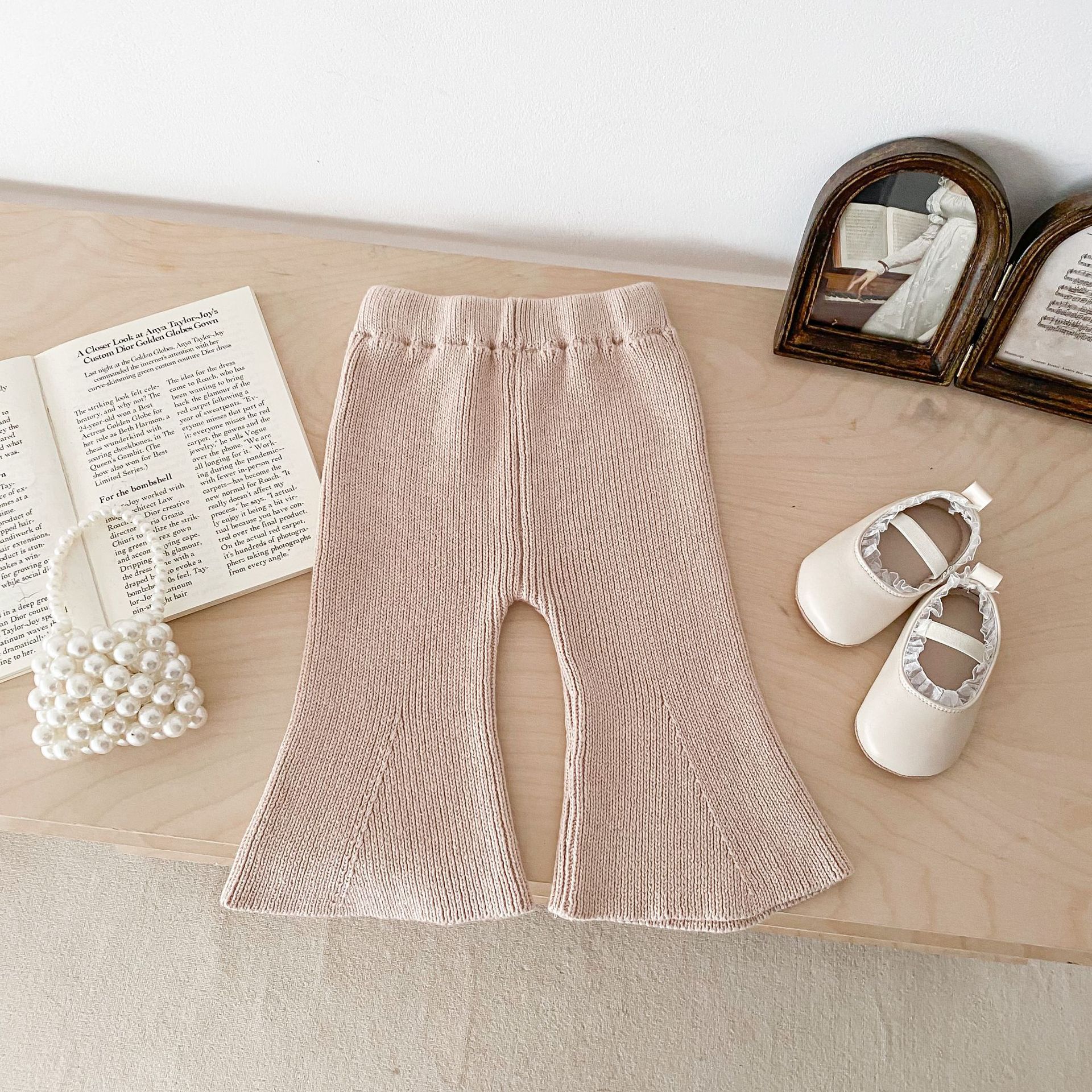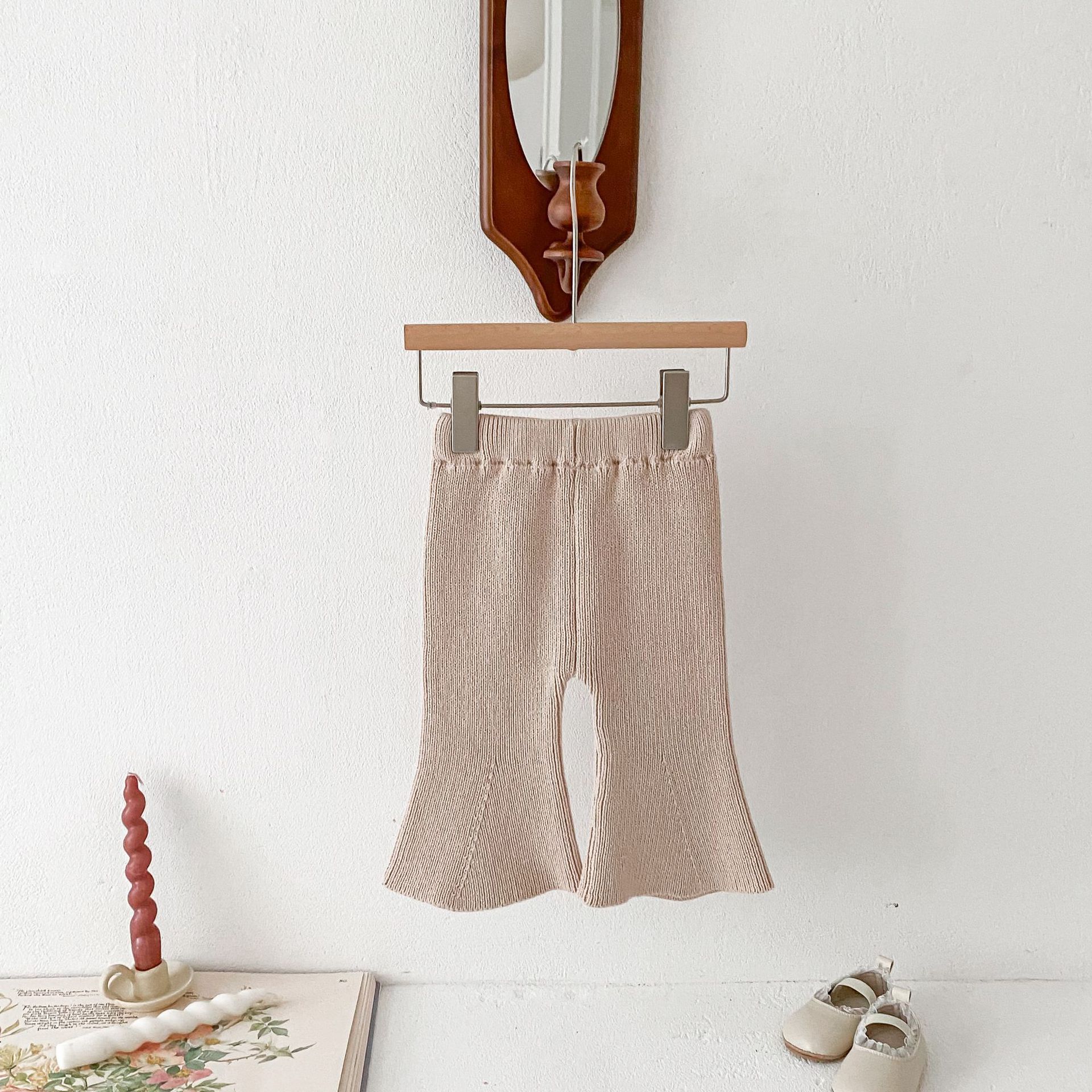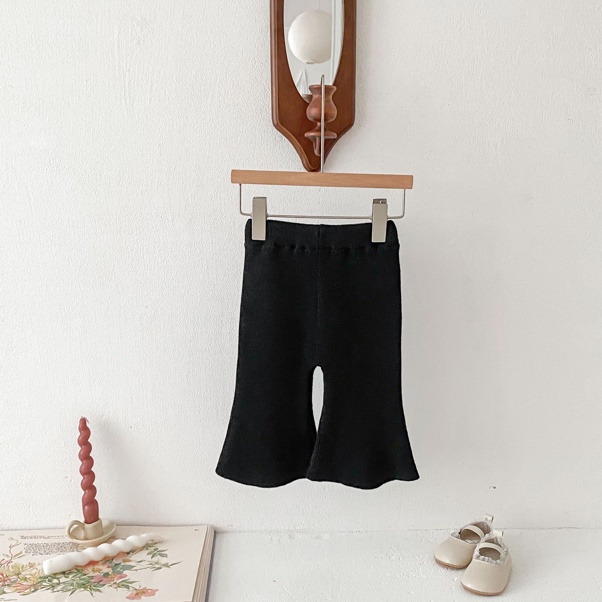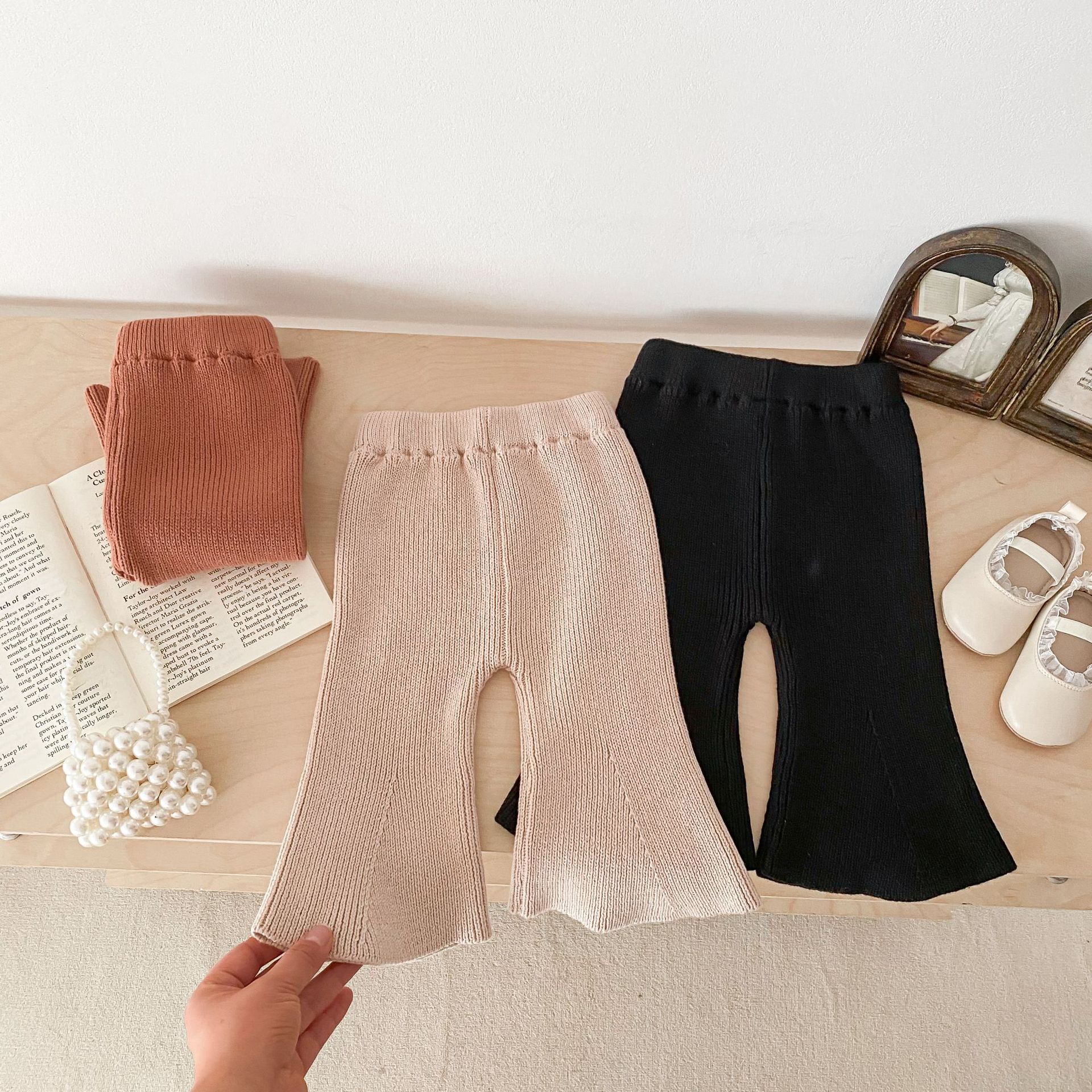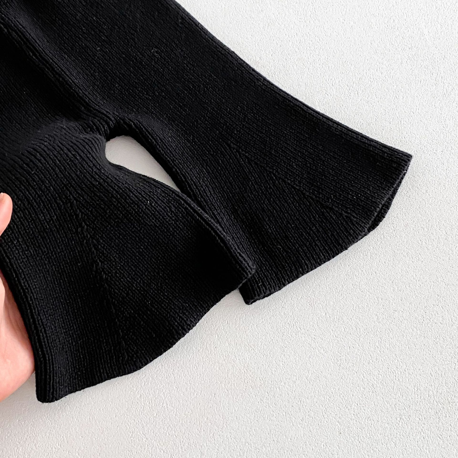 Ins 한국식 아동복 봄과 가을 아기 소녀 바지 니트 코튼 플레어 바지 유아 와이드 다리 바지 레깅스스토어 가기