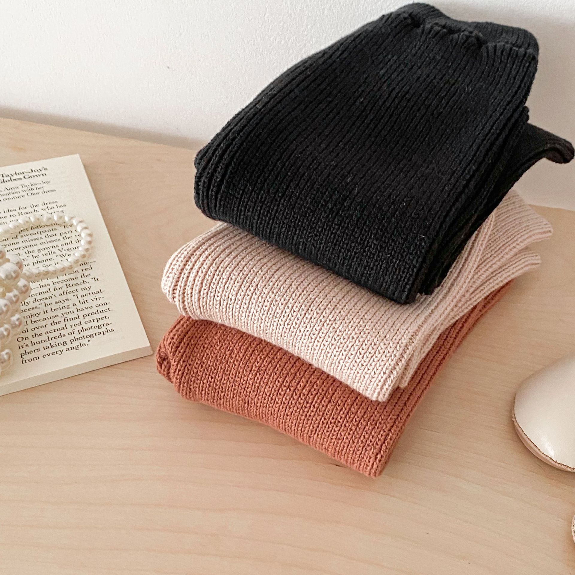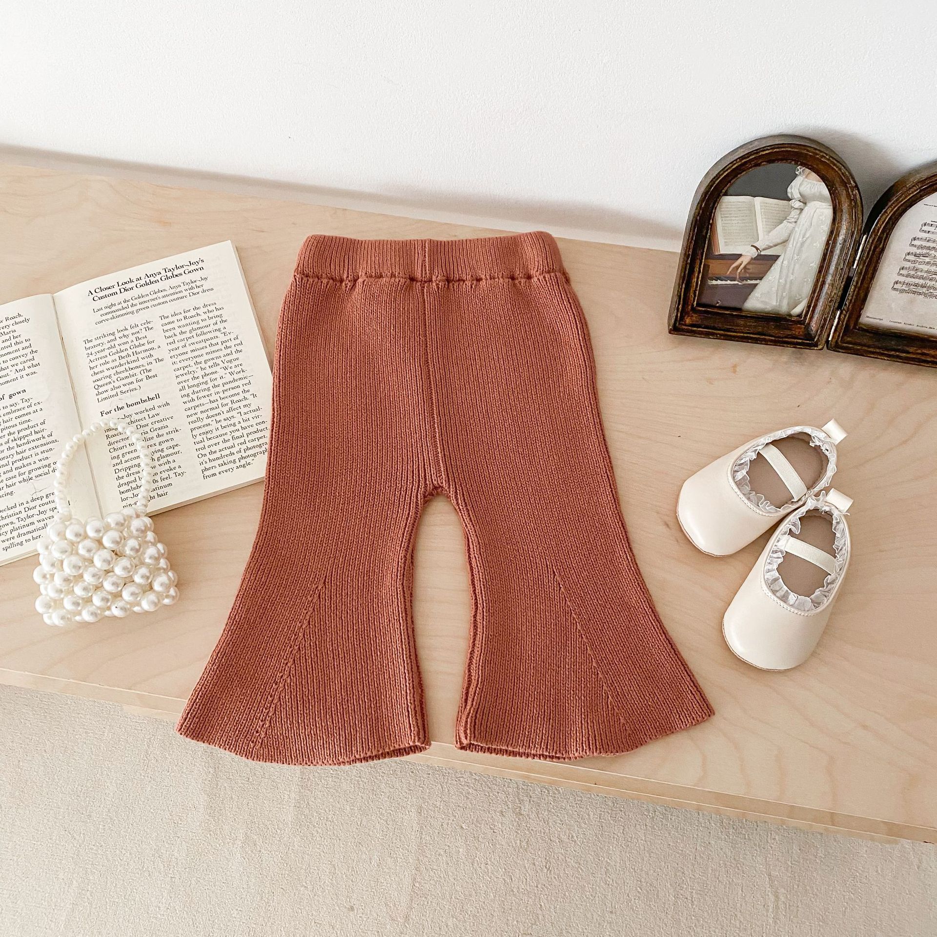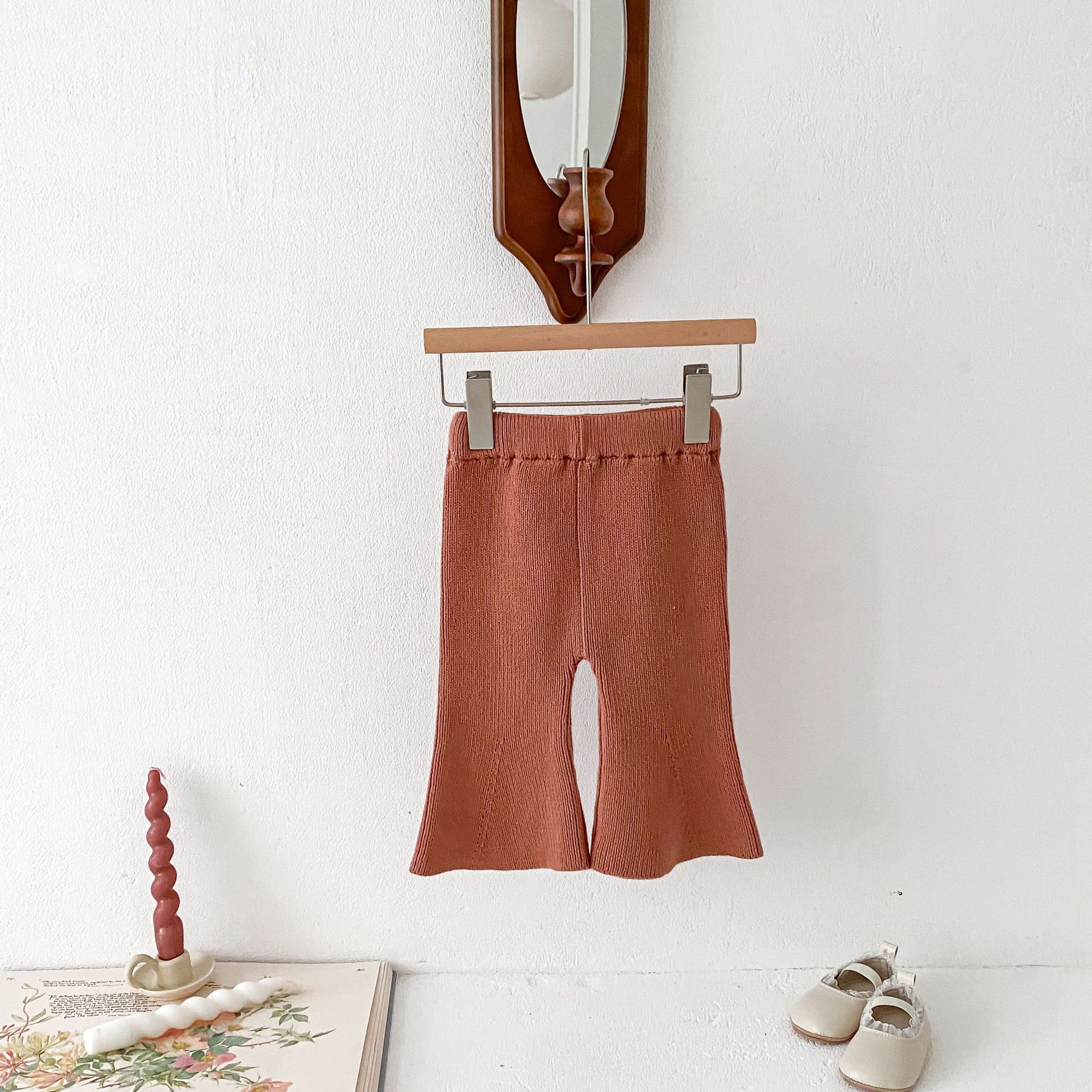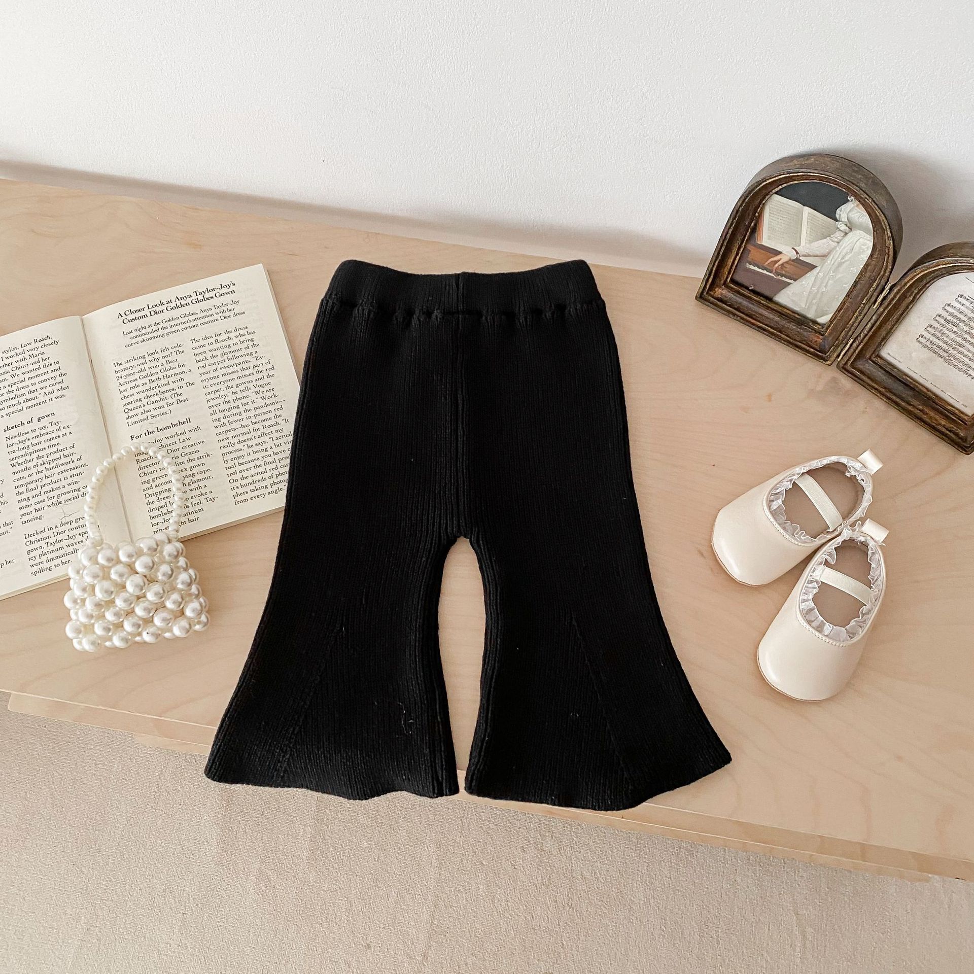 Ins 한국식 아동복 봄과 가을 아기 소녀 바지 니트 코튼 플레어 바지 유아 와이드 다리 바지 레깅스스토어 가기
