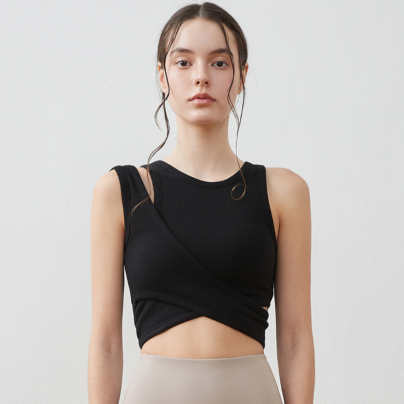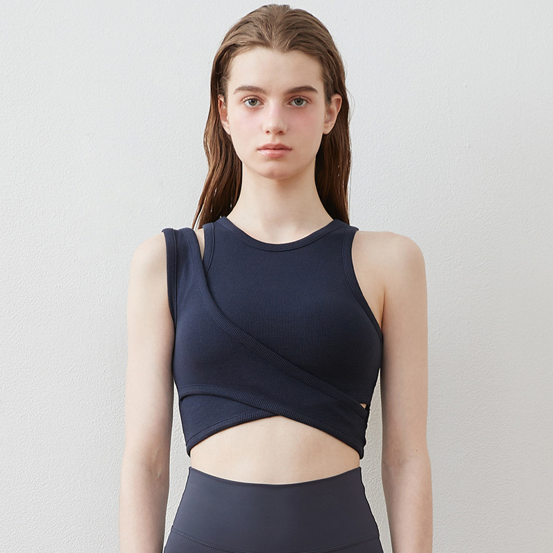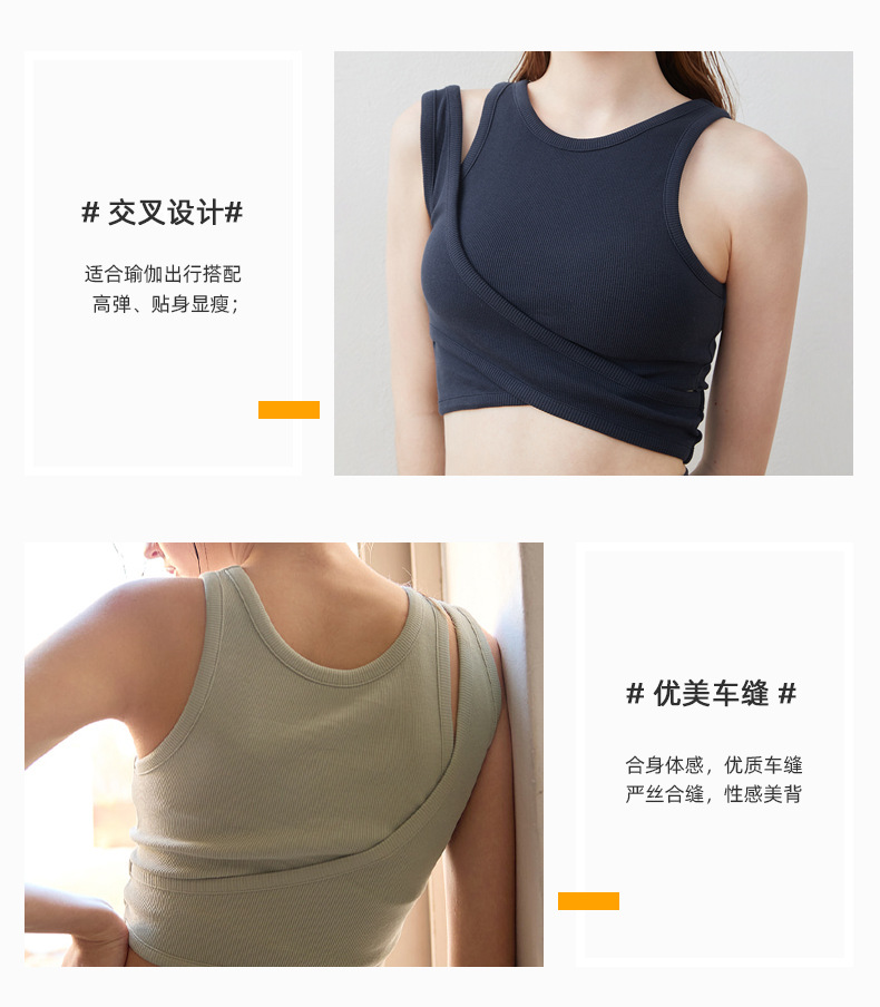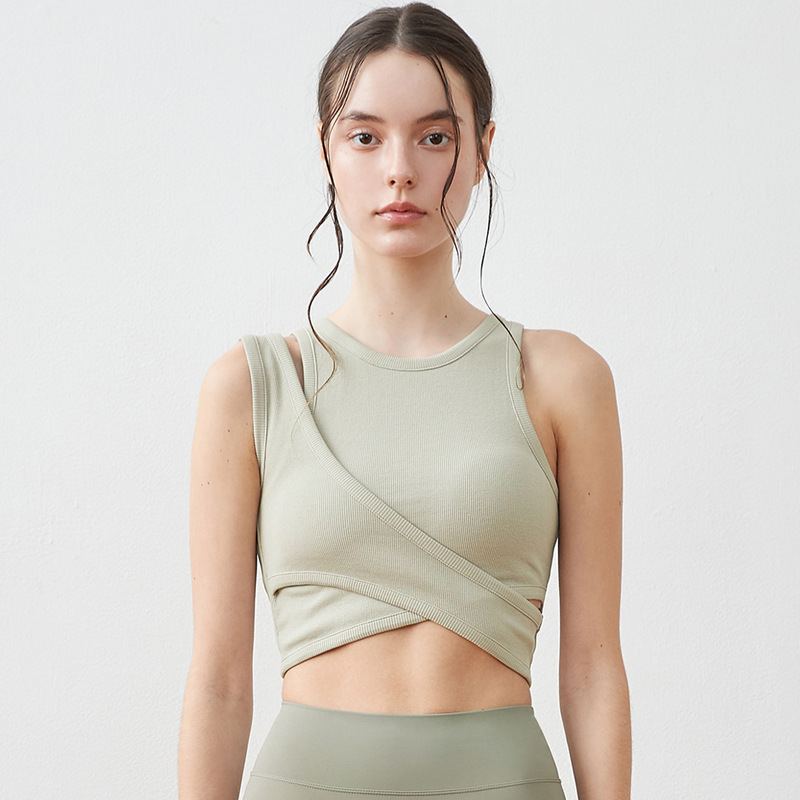 24 여름 스레드 Raglan 민소매 요가 피트니스 조끼 고강도 크로스 디자인 뷰티 어깨 스포츠 조끼 통기성