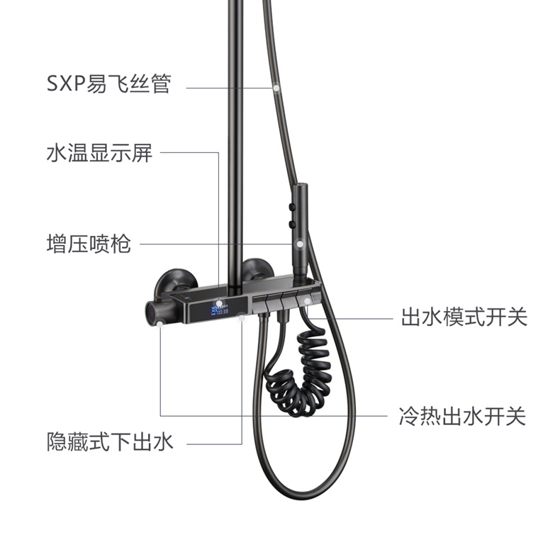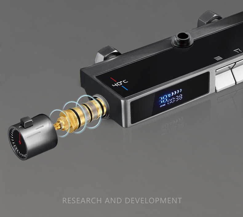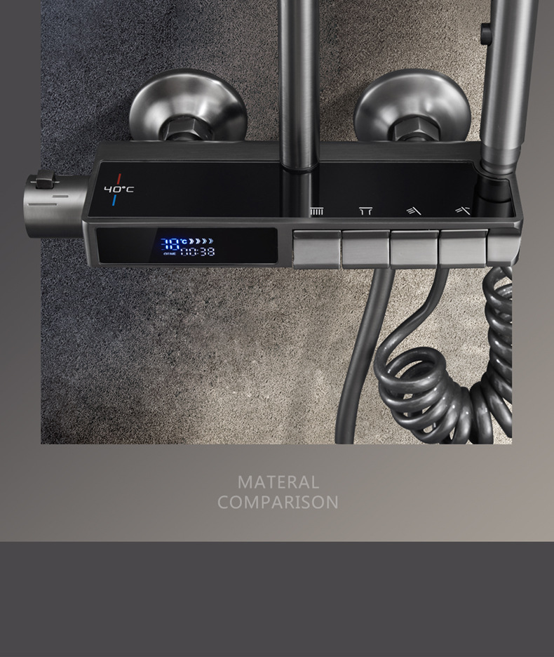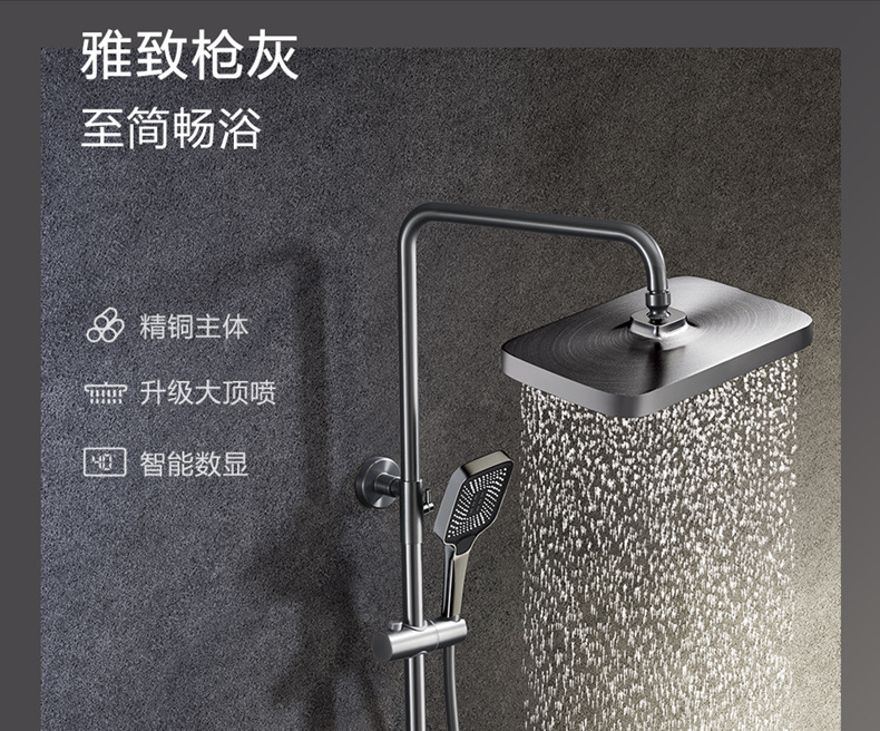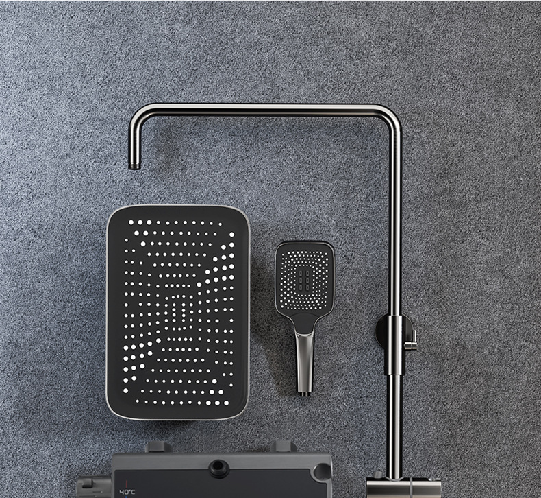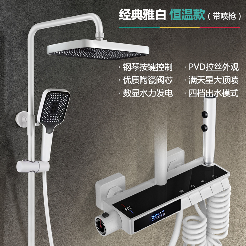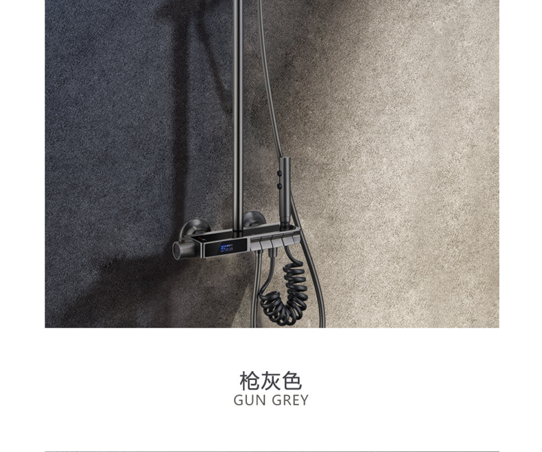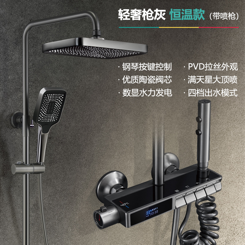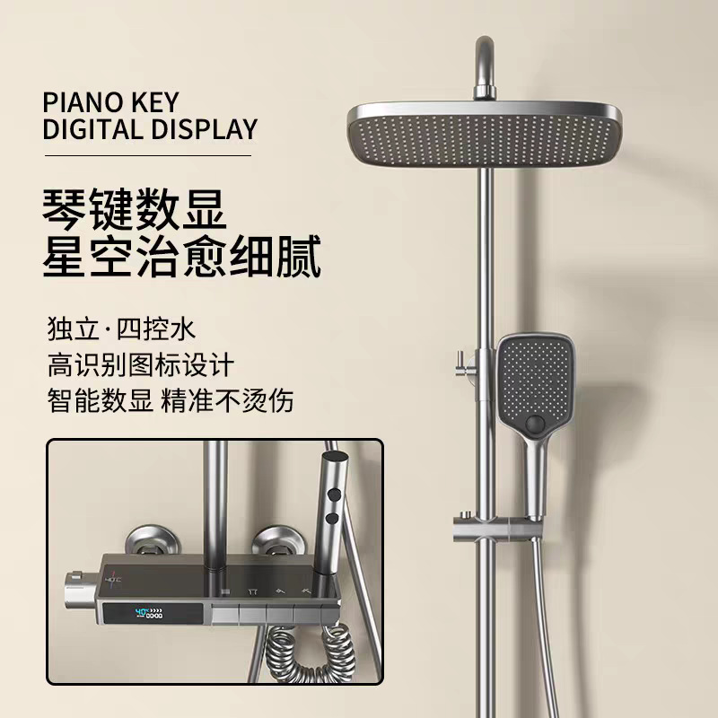 독일 일정한 온도 샤워 헤드 세트 총 회색 피아노 키 지능형 디지털 디스플레이 비 목욕 욕실 가정용 물 콘센트
