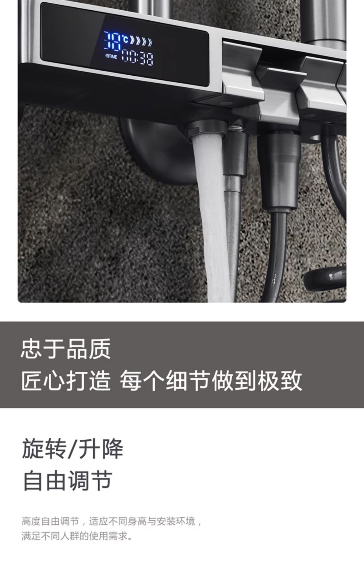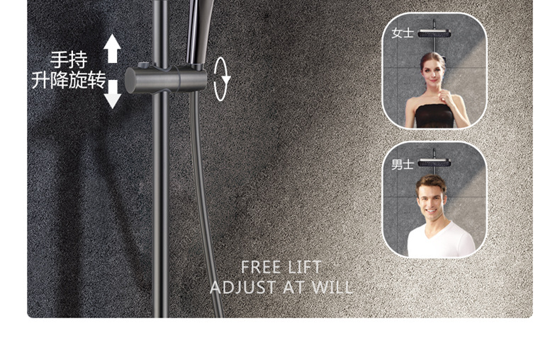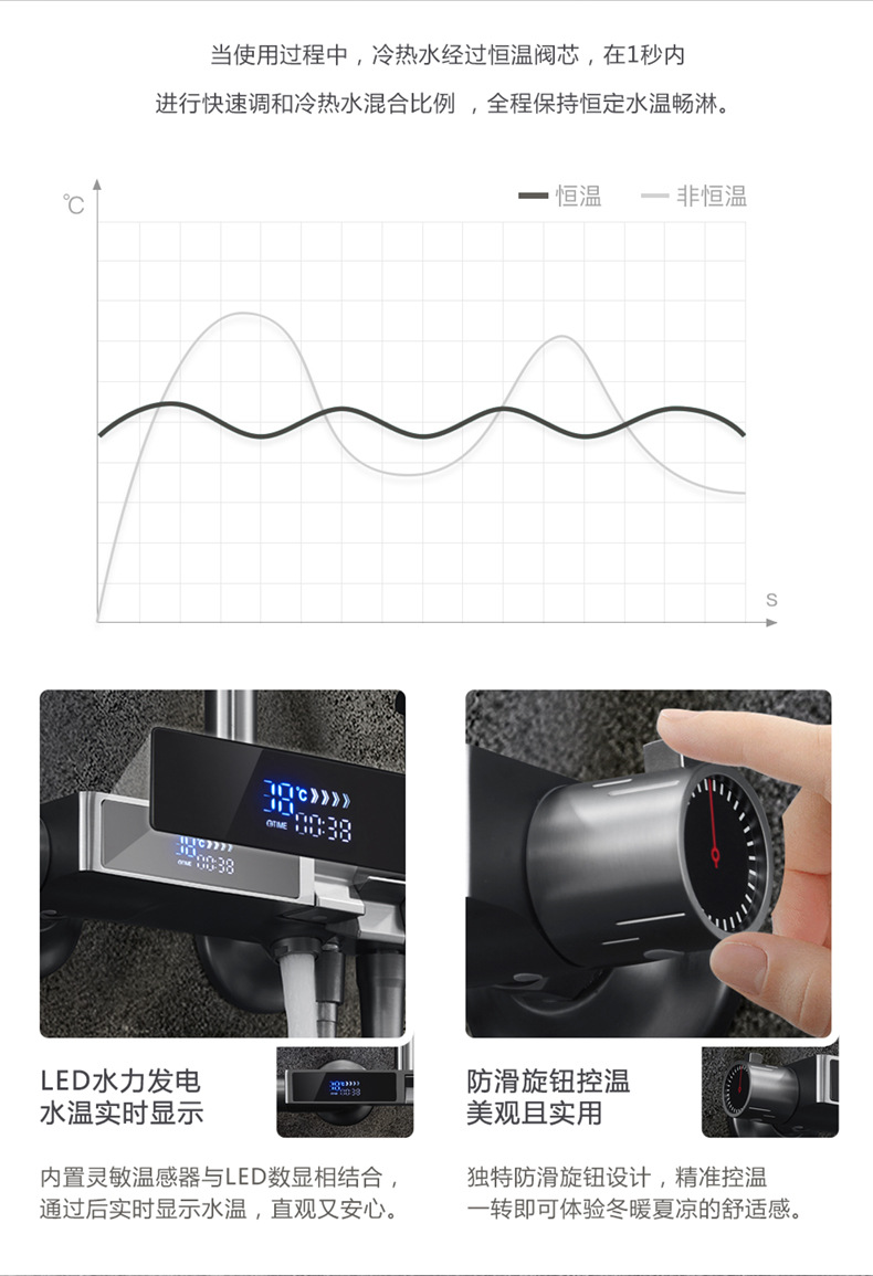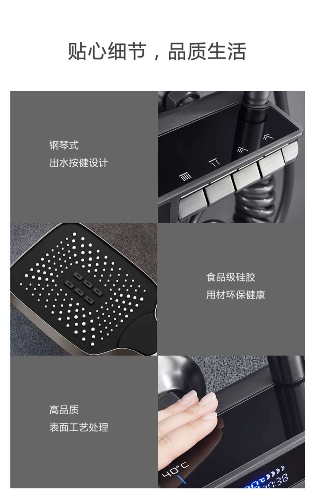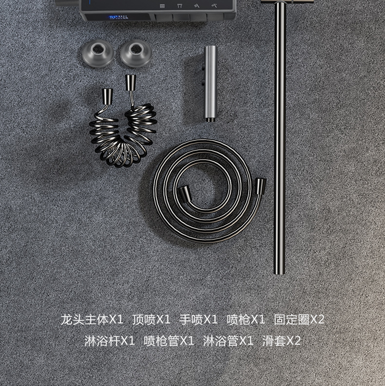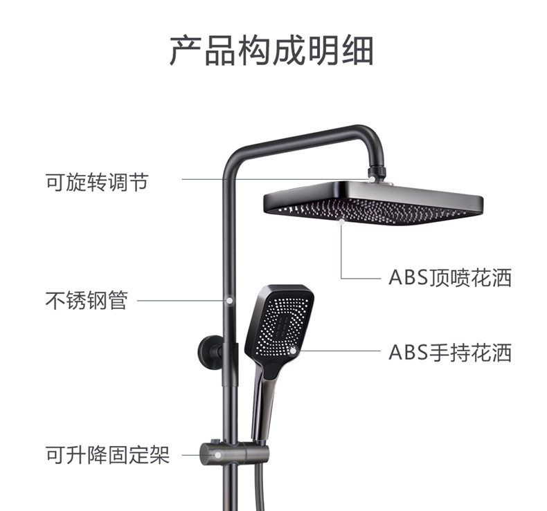독일 일정한 온도 샤워 헤드 세트 총 회색 피아노 키 지능형 디지털 디스플레이 비 목욕 욕실 가정용 물 콘센트