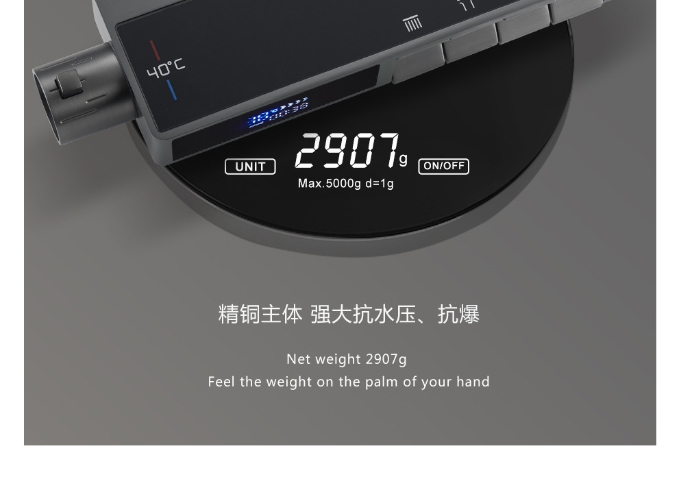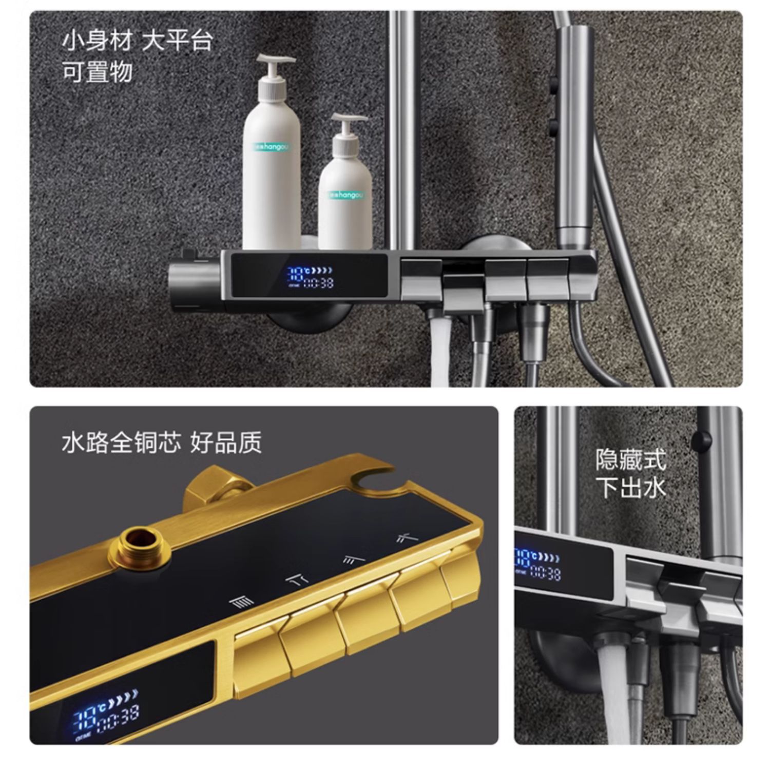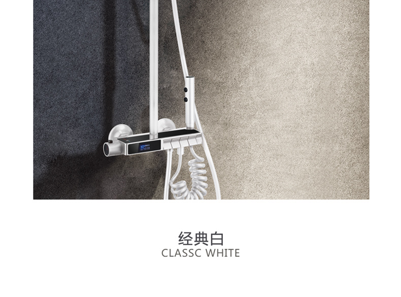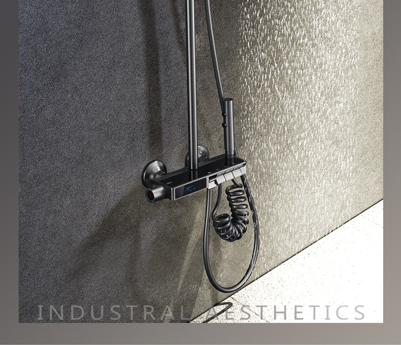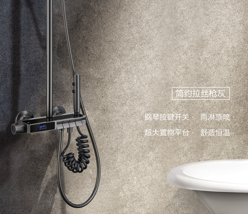 독일 일정한 온도 샤워 헤드 세트 총 회색 피아노 키 지능형 디지털 디스플레이 비 목욕 욕실 가정용 물 콘센트스토어 가기