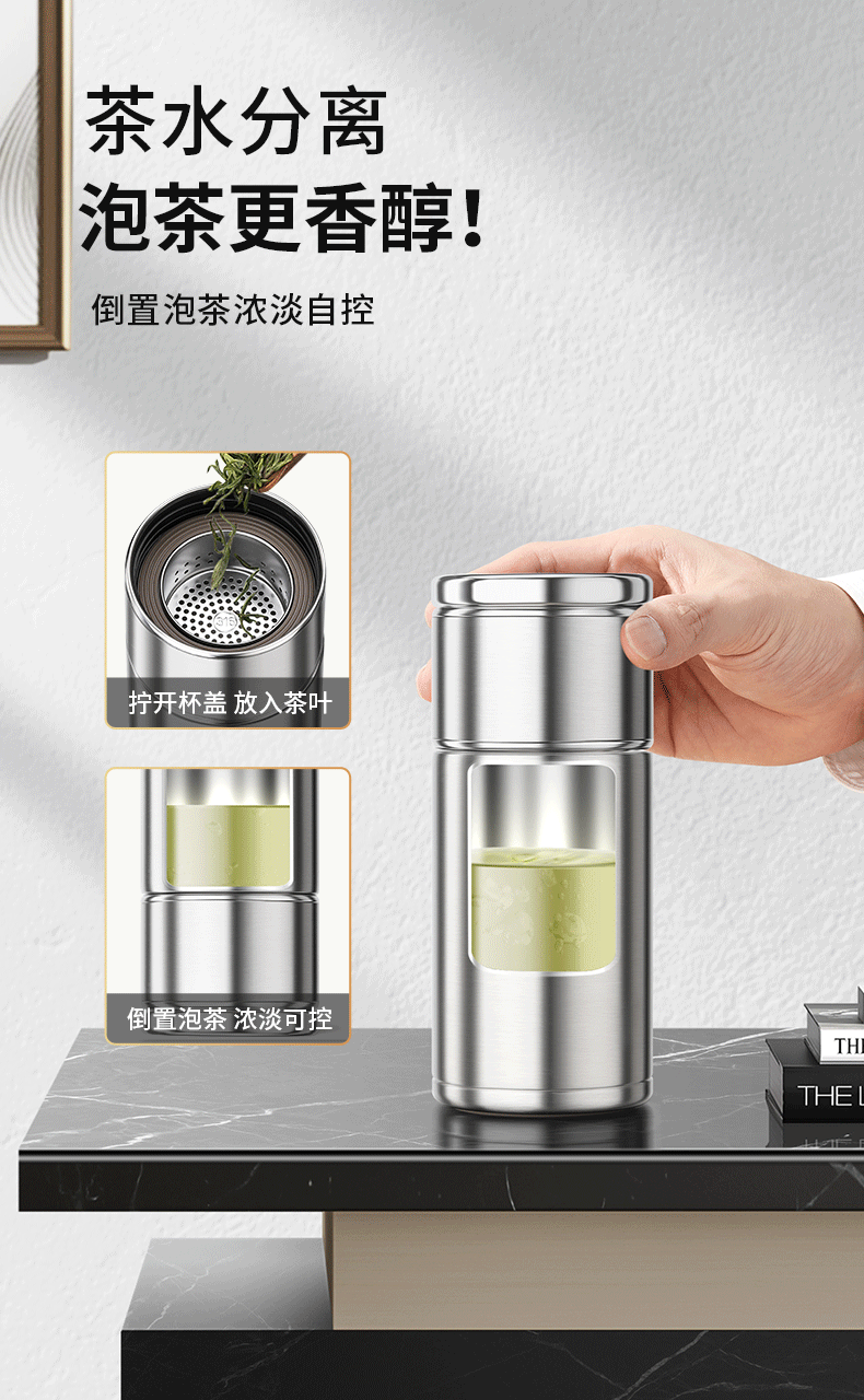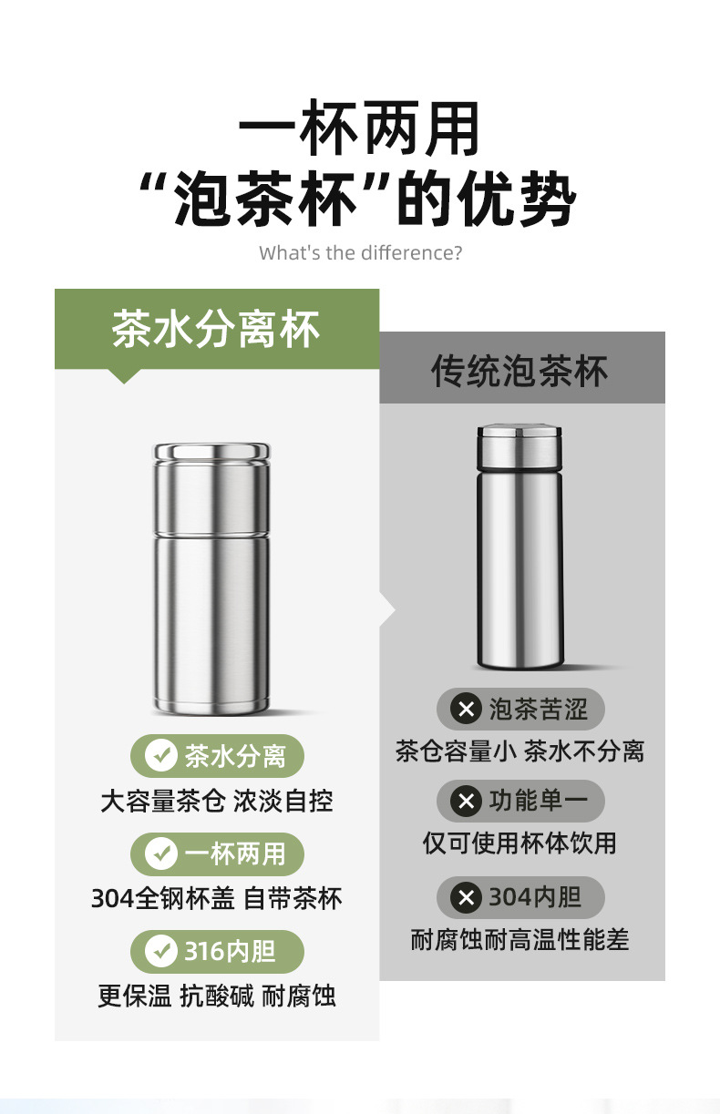 간단한 차 분리 컵 진공 컵 316 스테인레스 스틸 남성과 여성의 작은 휴대용 차 컵 인터넷 유명 인사 선물 물 컵스토어 가기