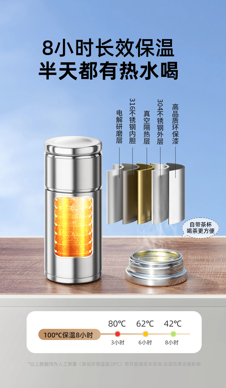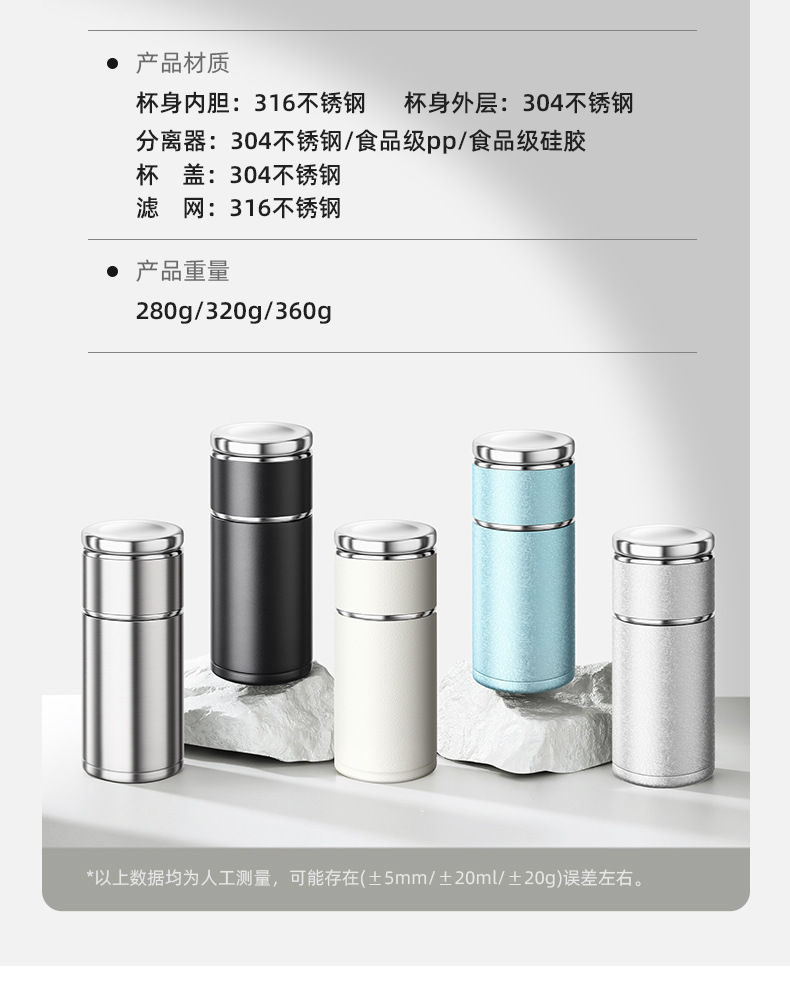간단한 차 분리 컵 진공 컵 316 스테인레스 스틸 남성과 여성의 작은 휴대용 차 컵 인터넷 유명 인사 선물 물 컵