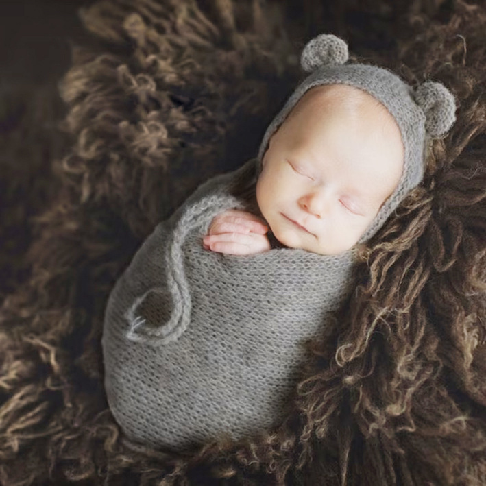 Baby knit wrap Bear hat wrap set baby photography costume props