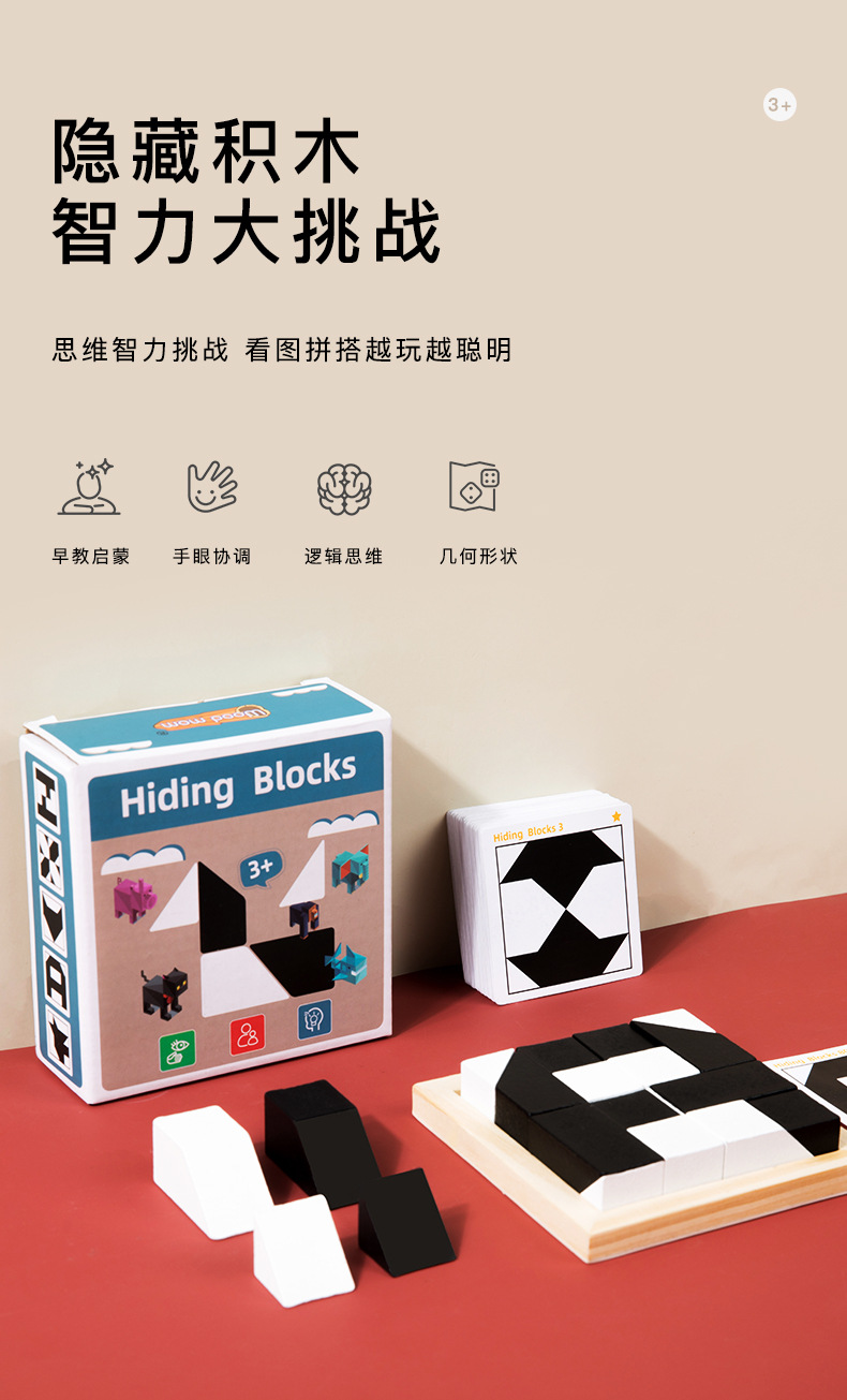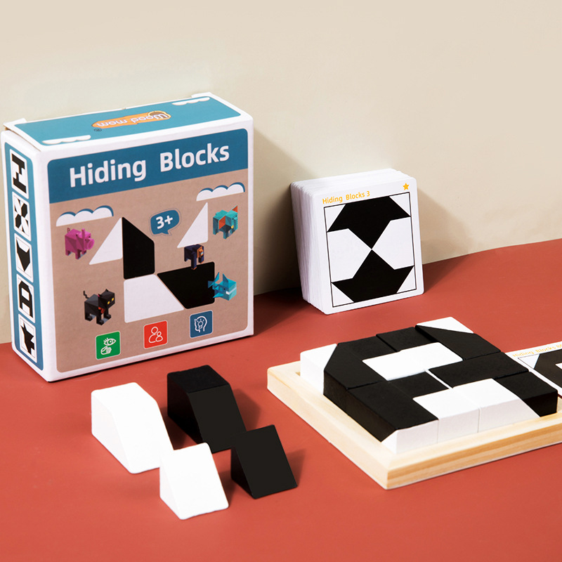 나무 숨겨진 빌딩 블록 게임 기하학적 그림 나무 어린이 교육 부모 자식 보드 게임 도전 레벨 장난감스토어 가기
