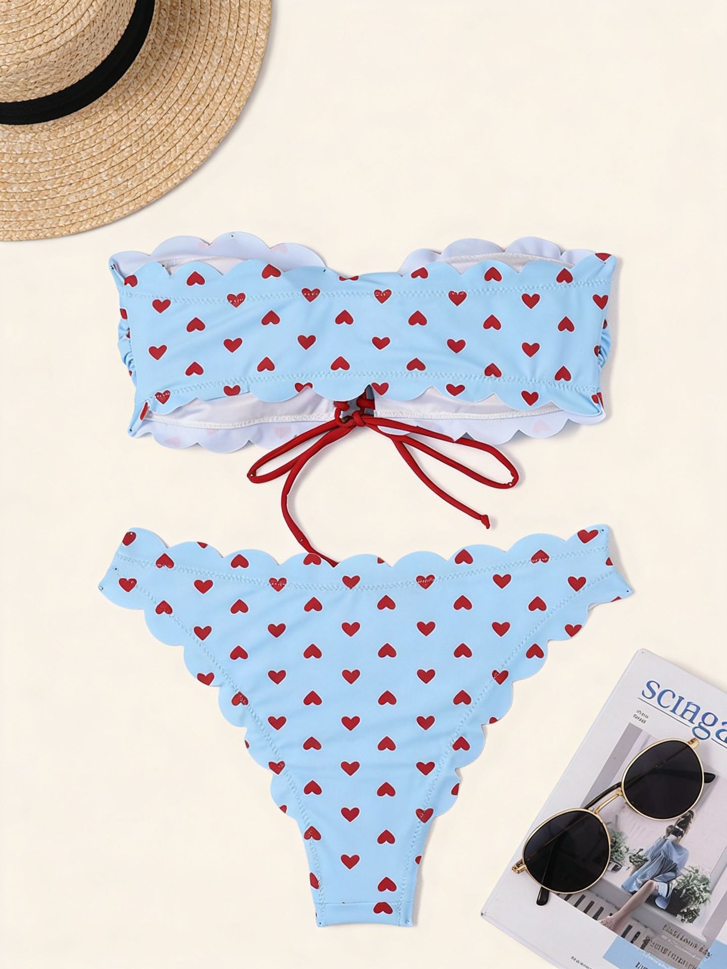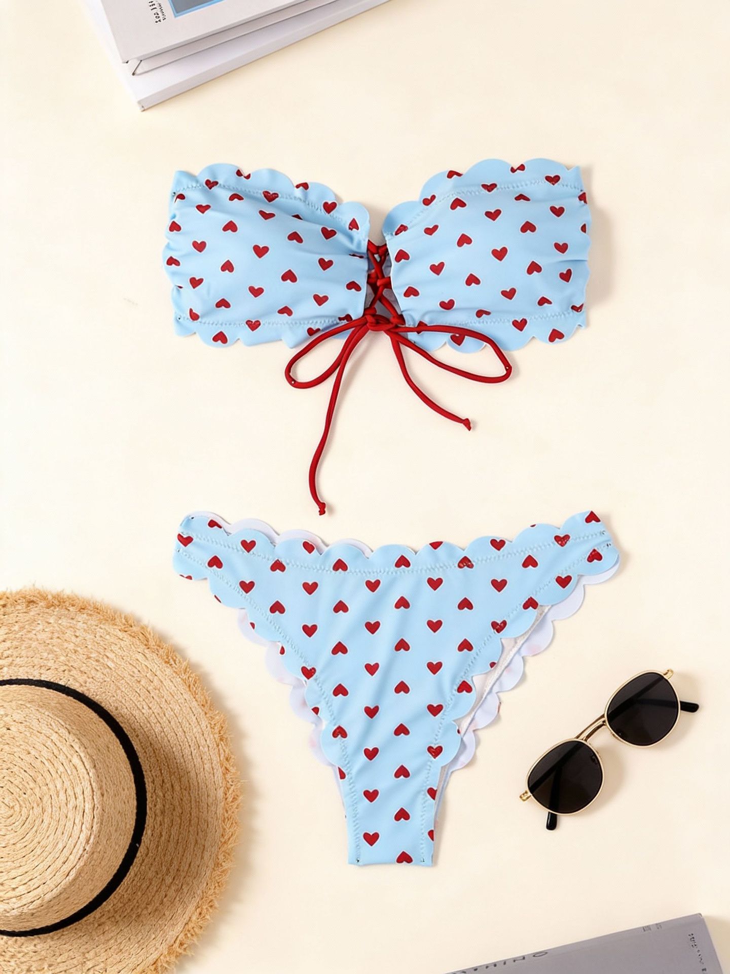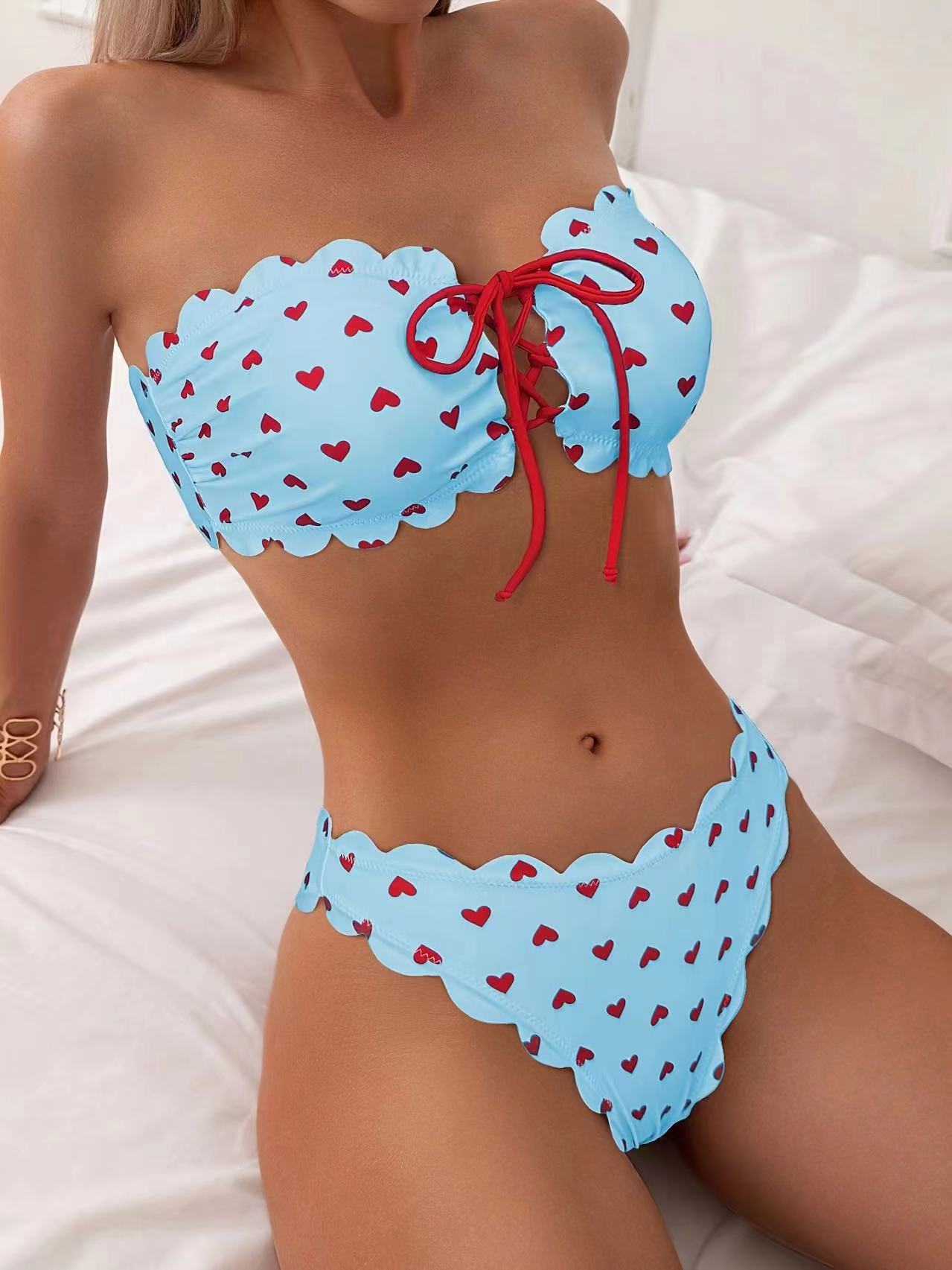 2024년 신상 크로스보더 스플릿 탑리스 수영복 여성 레트로 하트 비키니 상큼하고 섹시한 크로스보더 비키니
