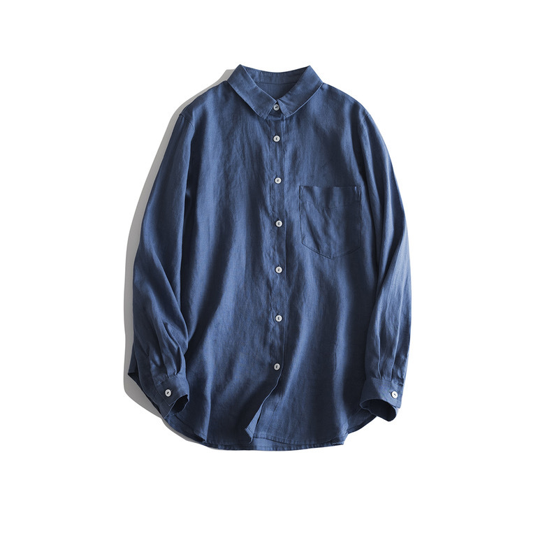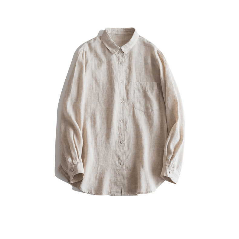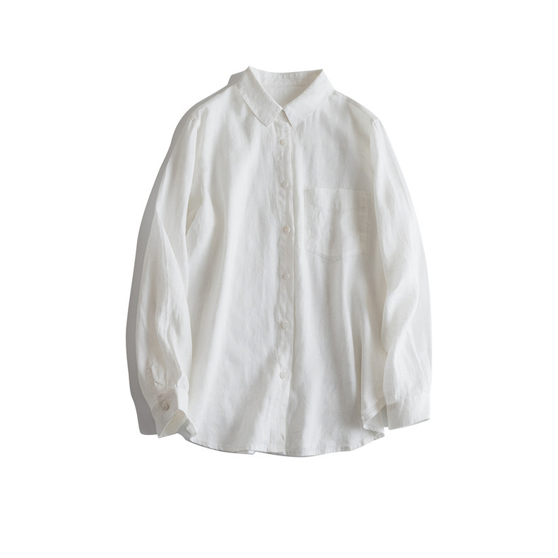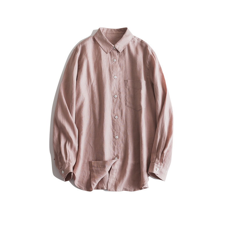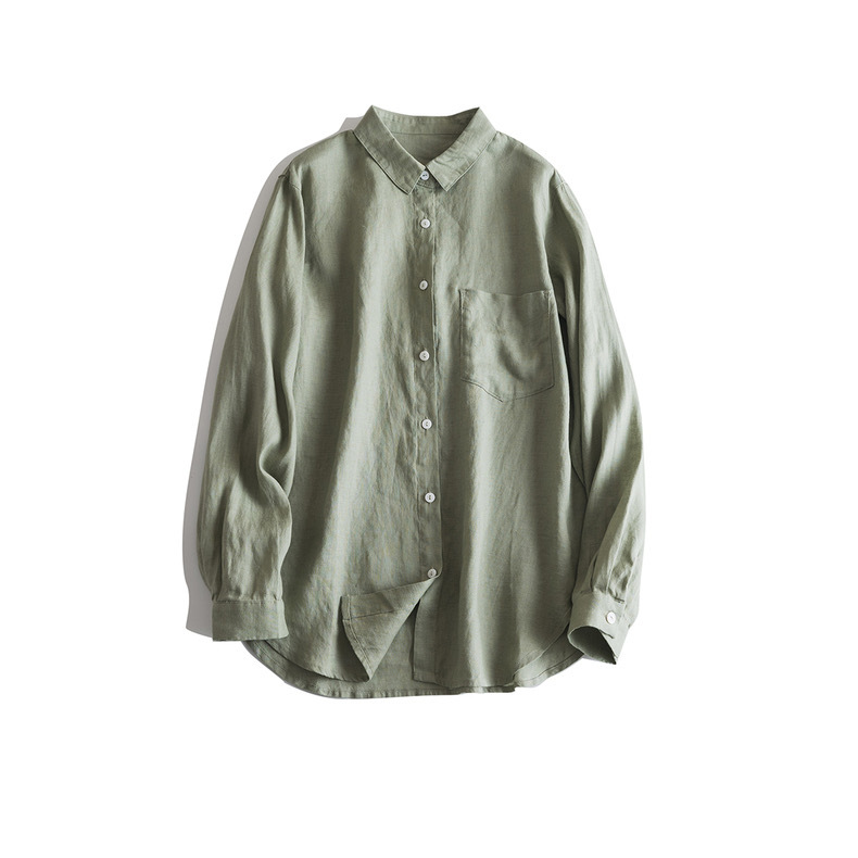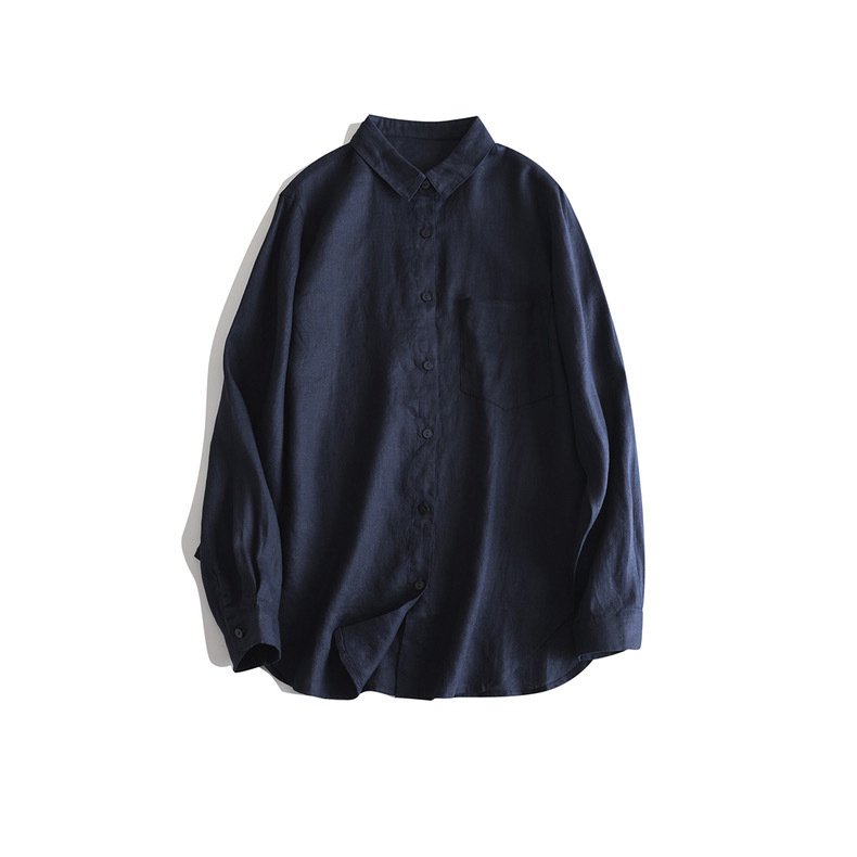 일본식 간단한 예술적 경량 하이 컷 순수 린넨 뾰족한 칼라 긴 소매 느슨한 예술적 셔츠 탑