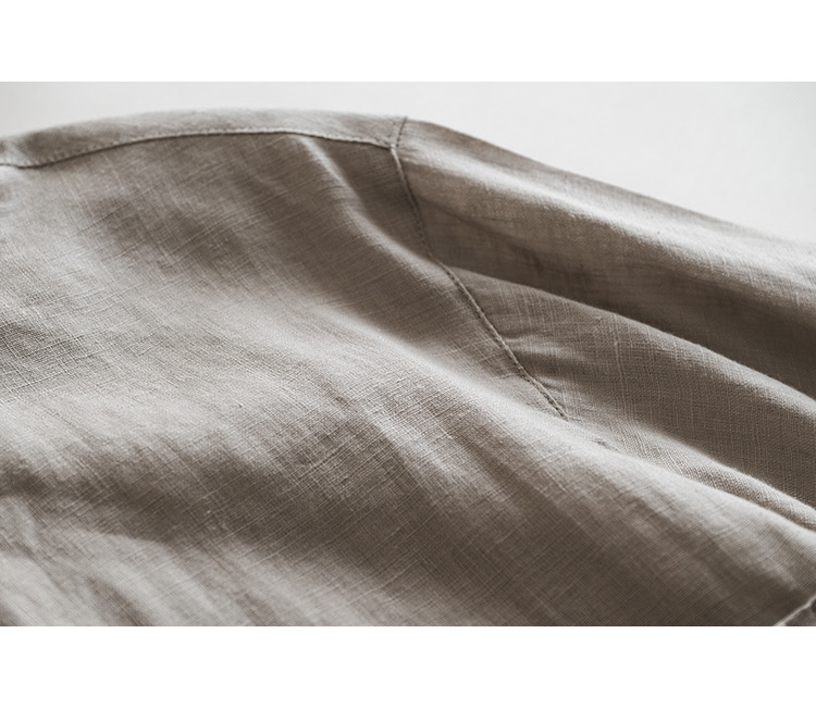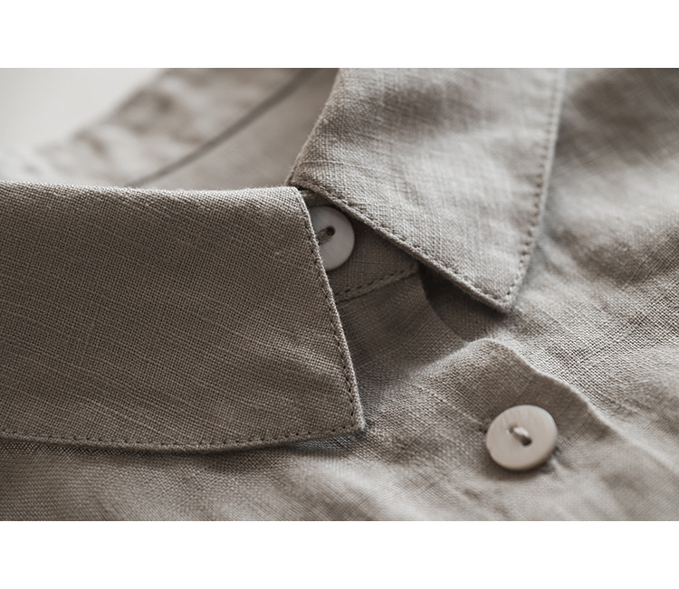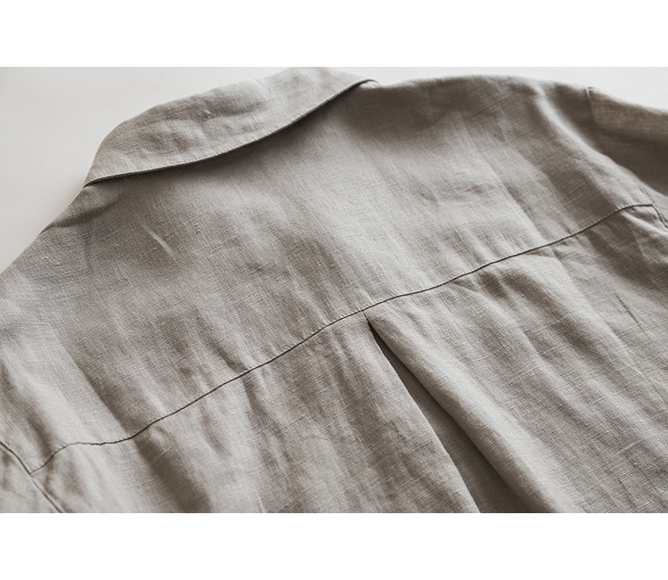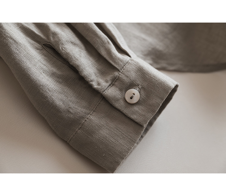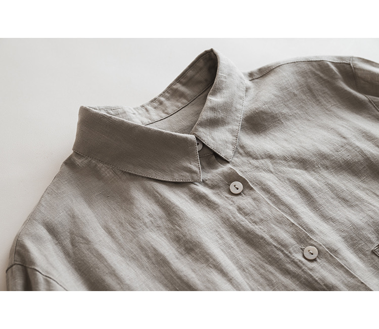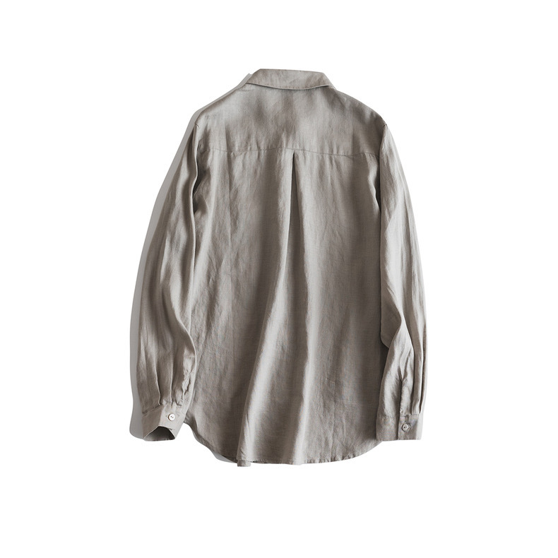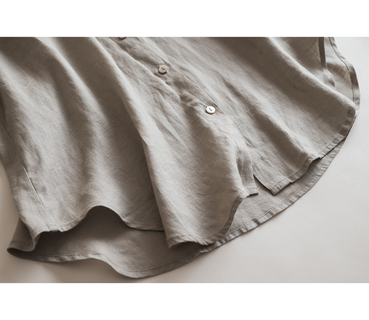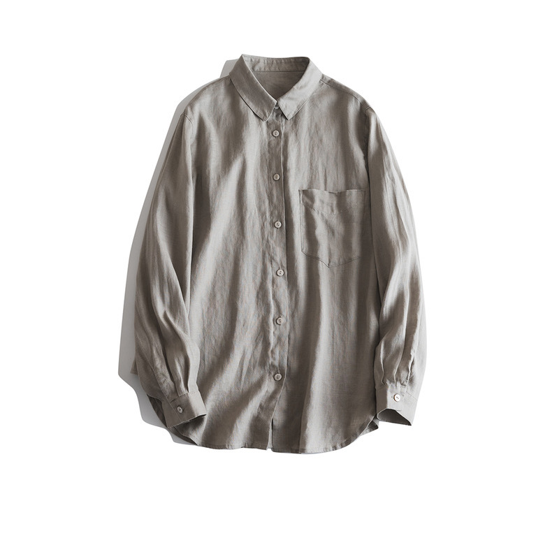 일본식 간단한 예술적 경량 하이 컷 순수 린넨 뾰족한 칼라 긴 소매 느슨한 예술적 셔츠 탑