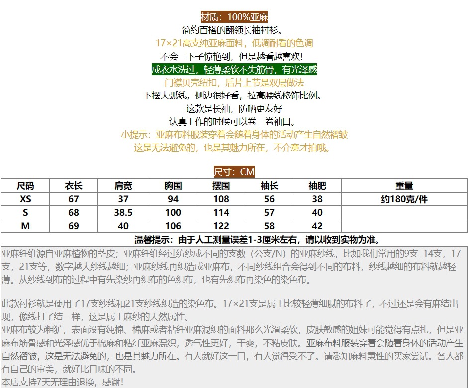 일본식 간단한 예술적 경량 하이 컷 순수 린넨 뾰족한 칼라 긴 소매 느슨한 예술적 셔츠 탑스토어 가기