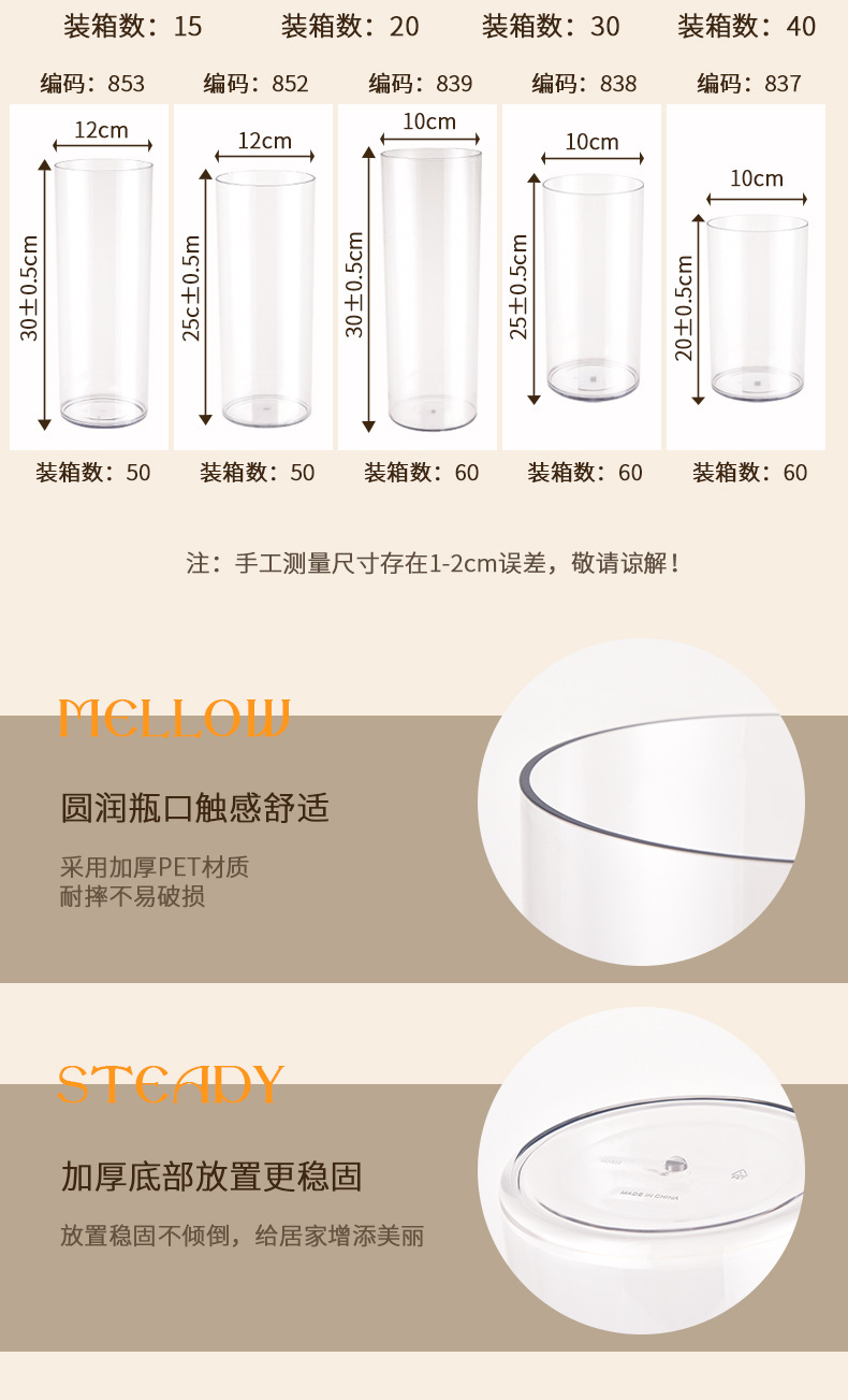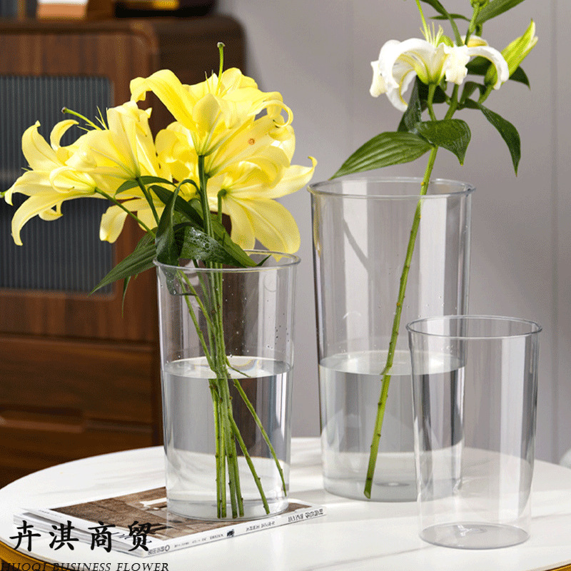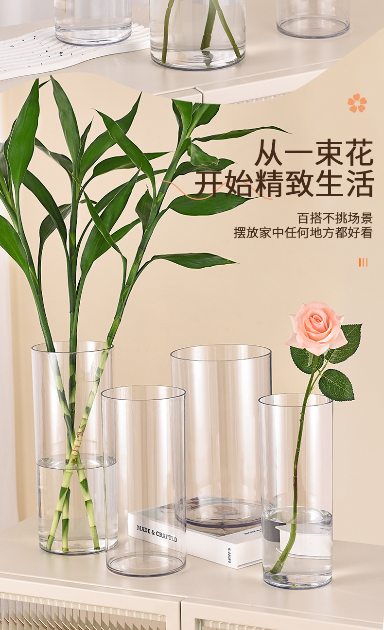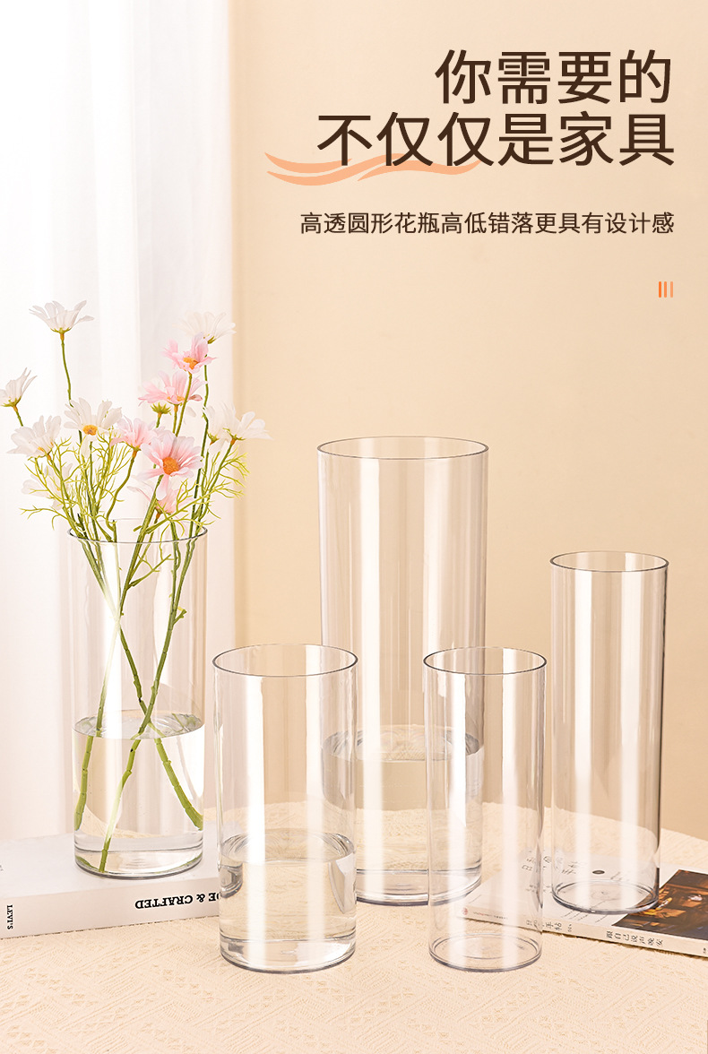뚜껑이 있는 낙하 방지 아크릴 직선 플라스틱 꽃 재배 통 32개, 간단한 꽃꽂이, 투명 통, 꽃꽂이 꽃병