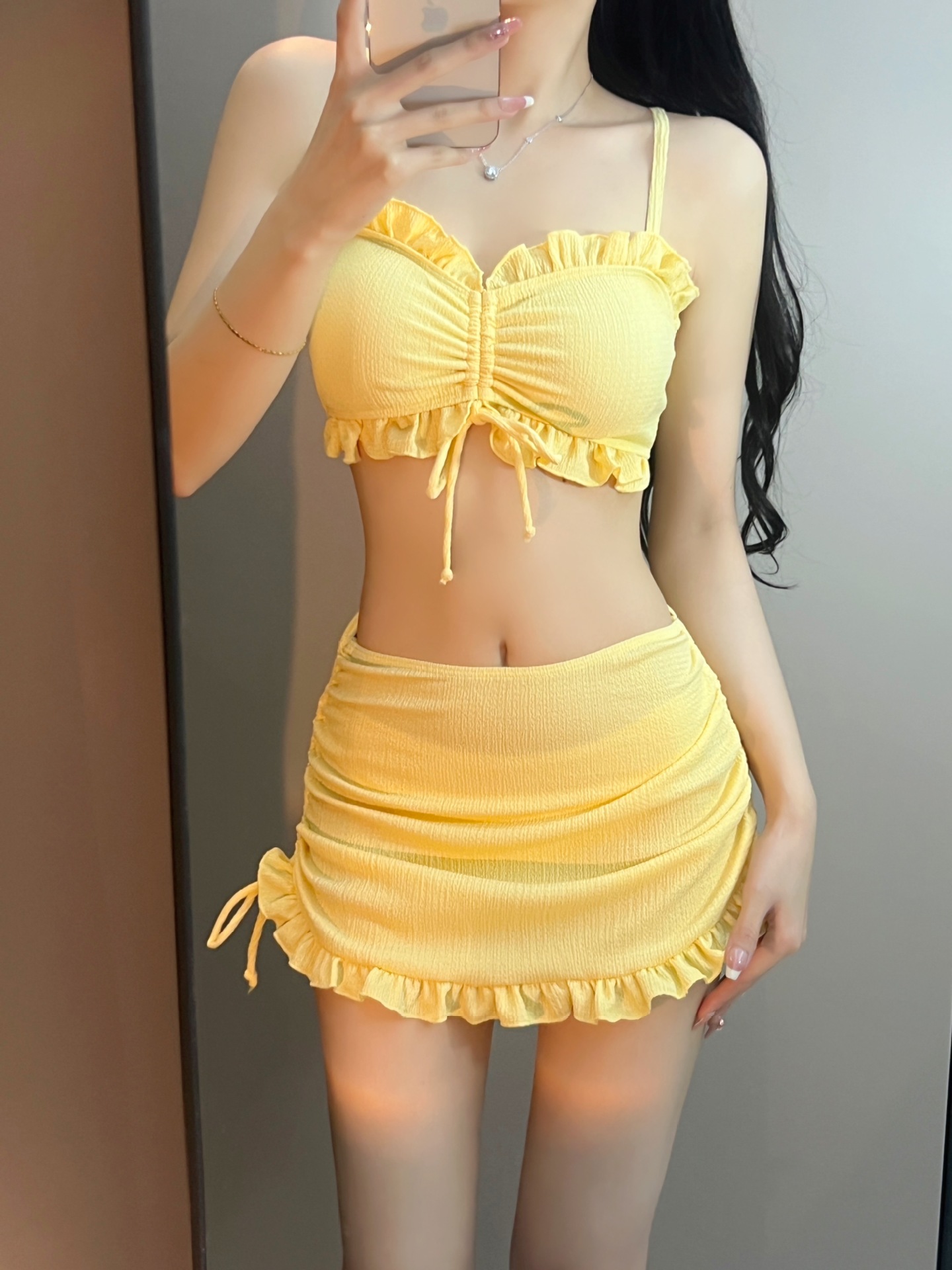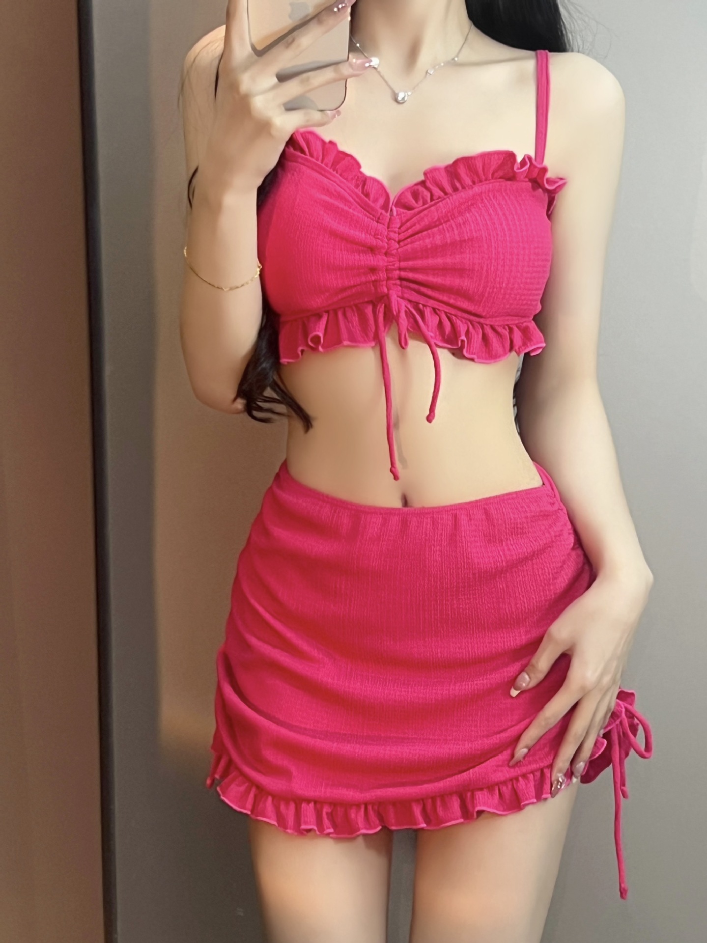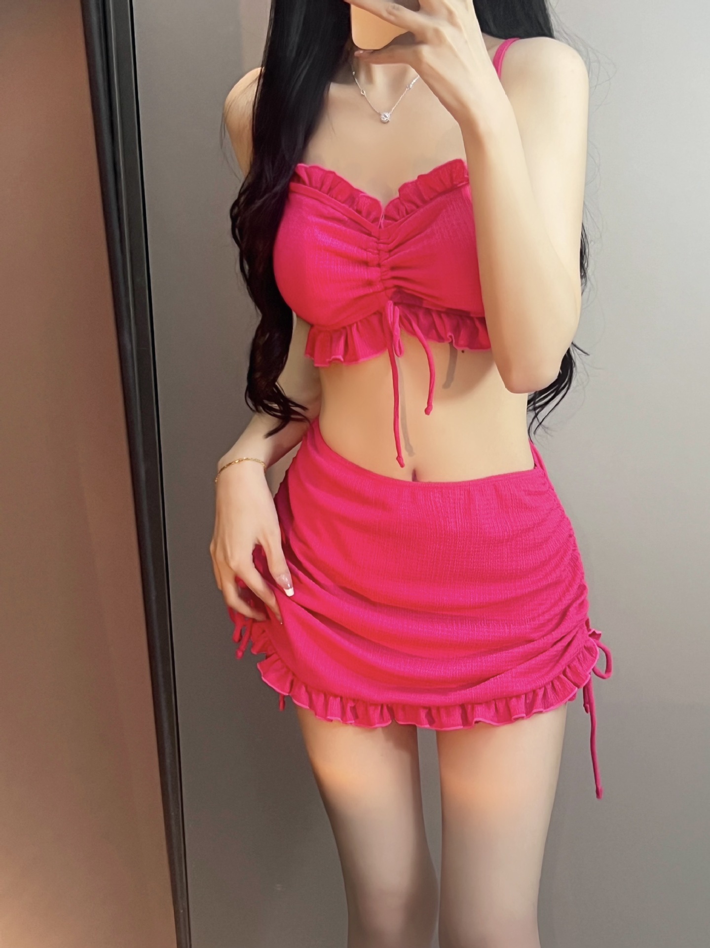 2024 여름 새로운 고급 스플릿 비키니 수영복 스커트 슬리밍 홀리데이 스타일 해변 온천 수영복 여성