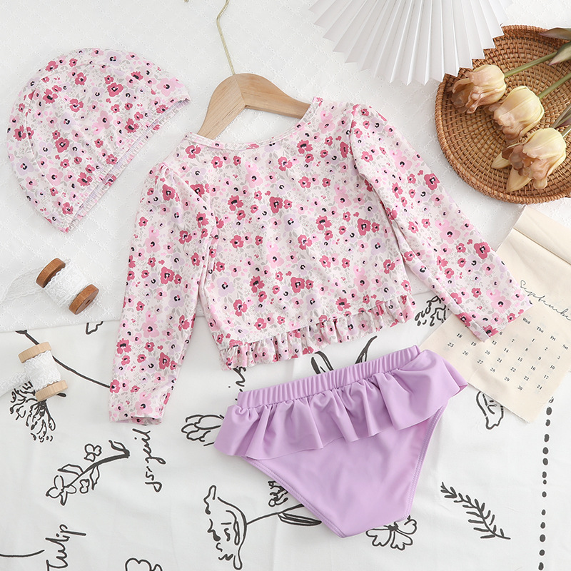 대외 무역 아마존 어린이 수영복 소녀 긴팔 꽃 쪼개진 수영복 비키니 스플릿 수영복스토어 가기