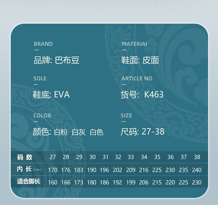 바부 콩 어린이 흰색 신발 큰 소년의 흰색 운동화 소녀 학생 가죽 방수 여행 신발