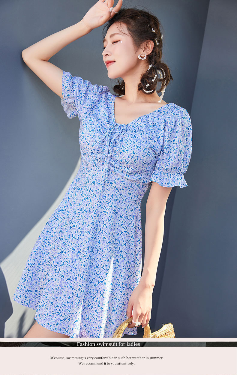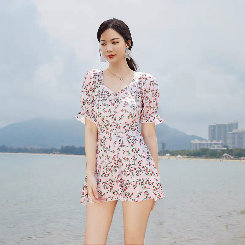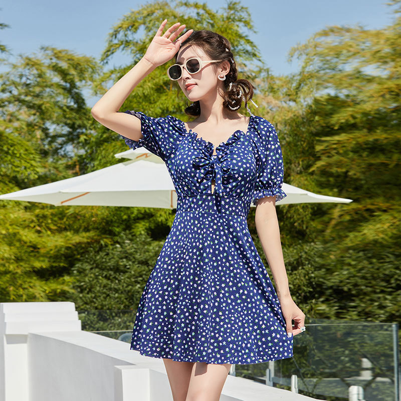 여성용 수영복, 인기 수영복 2025 배를 커버하고 슬림해 보이는 고급 꽃무늬 원피스 스커트 스타일 여성 온천 수영복
