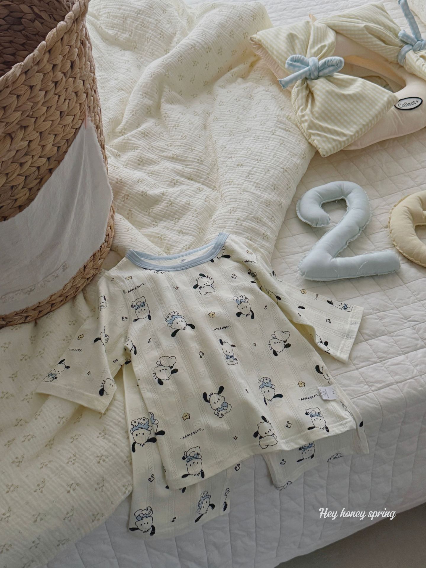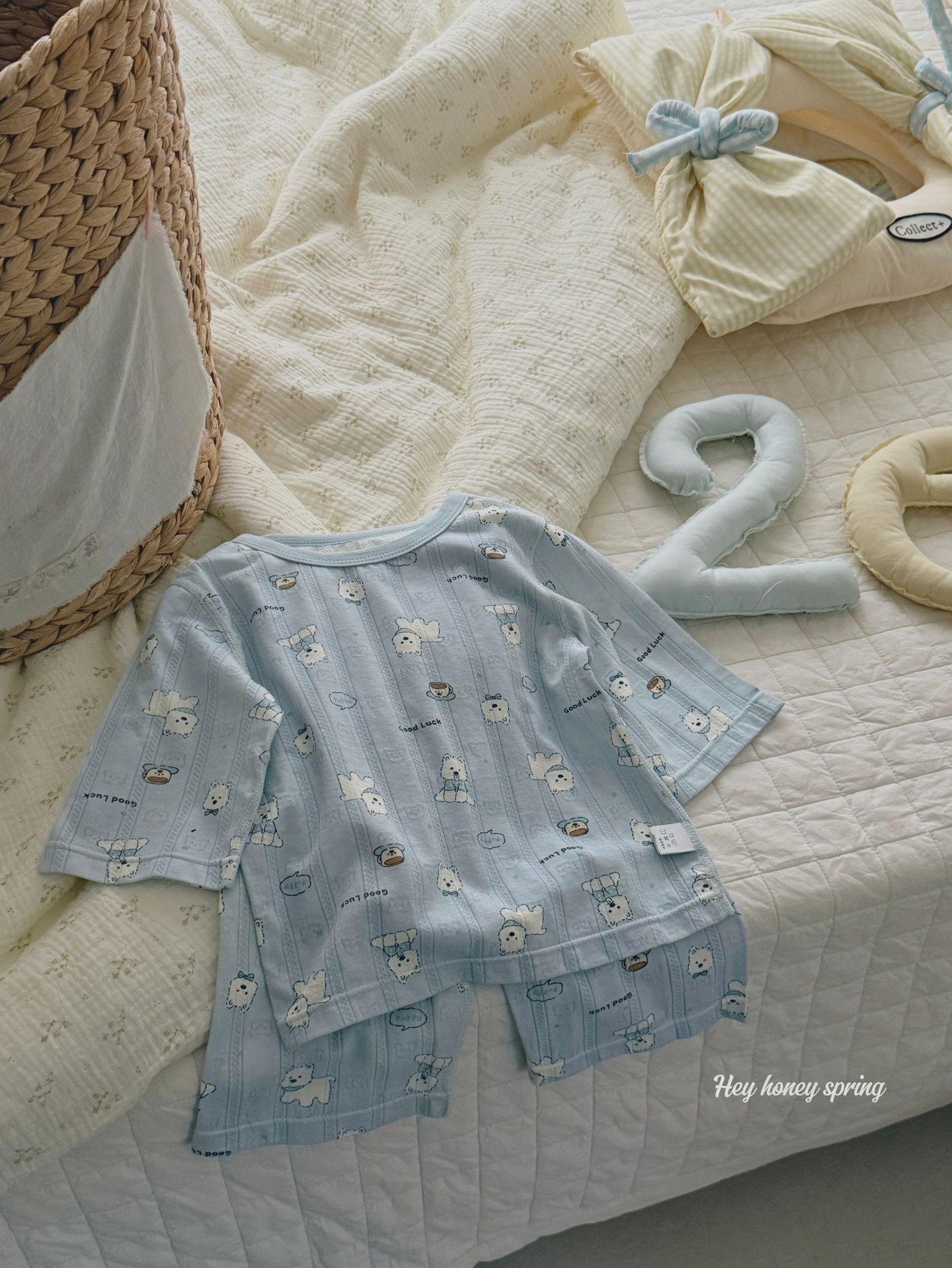대형 및 소형 사이즈 HeyHoney 아동용 여름 7부 소매 만화 캐릭터 투피스 세트 홈웨어 잠옷 부드러운 소재