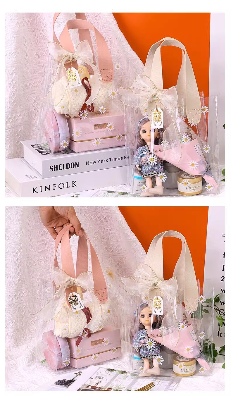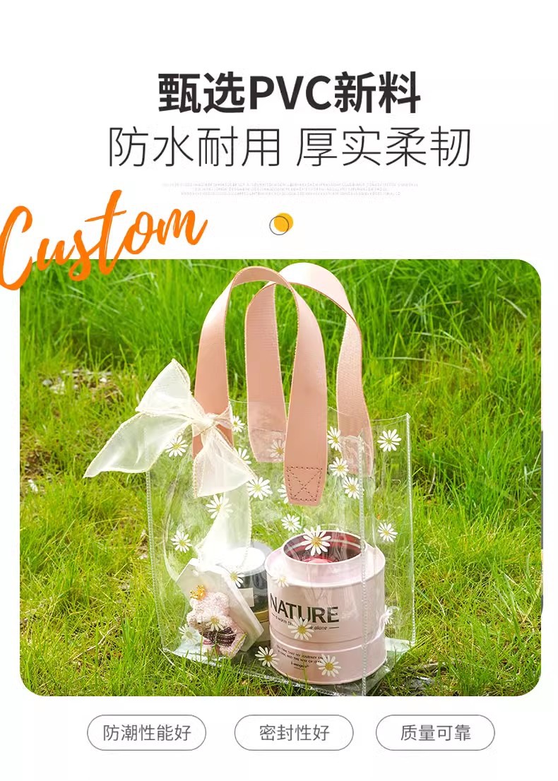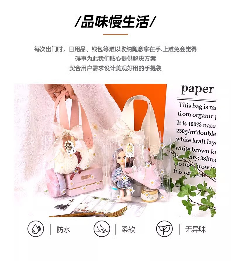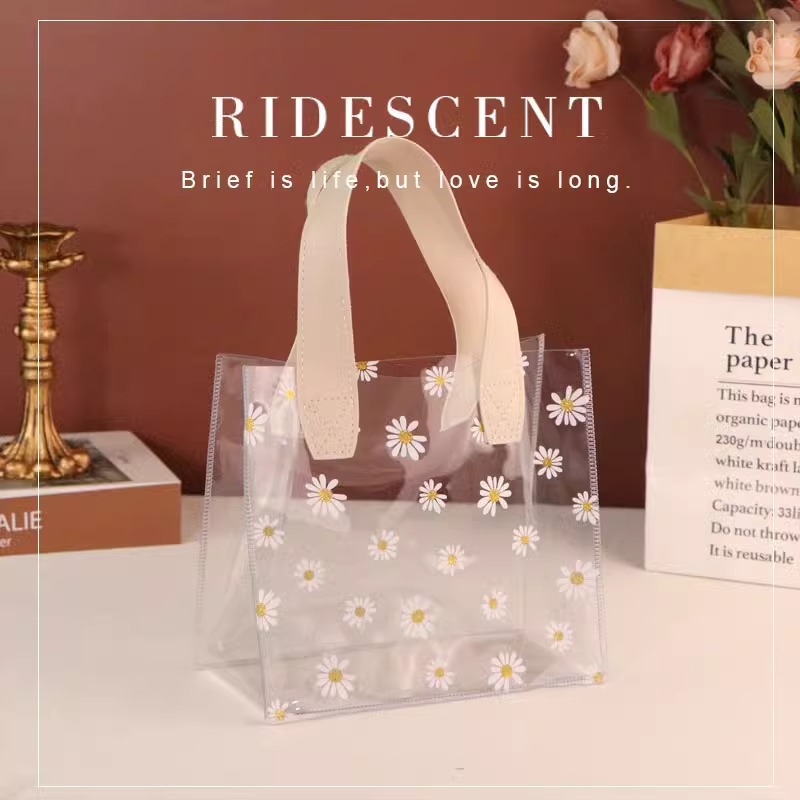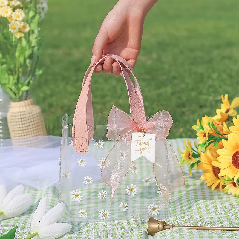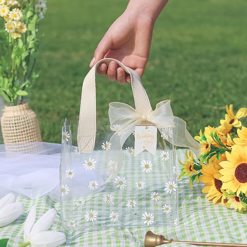 데이지 pvc 투명 핸드백 웨딩 동반자 손 선물 가방 손 들고 38 섹션 에 선물 가방 로고 만들기스토어 가기