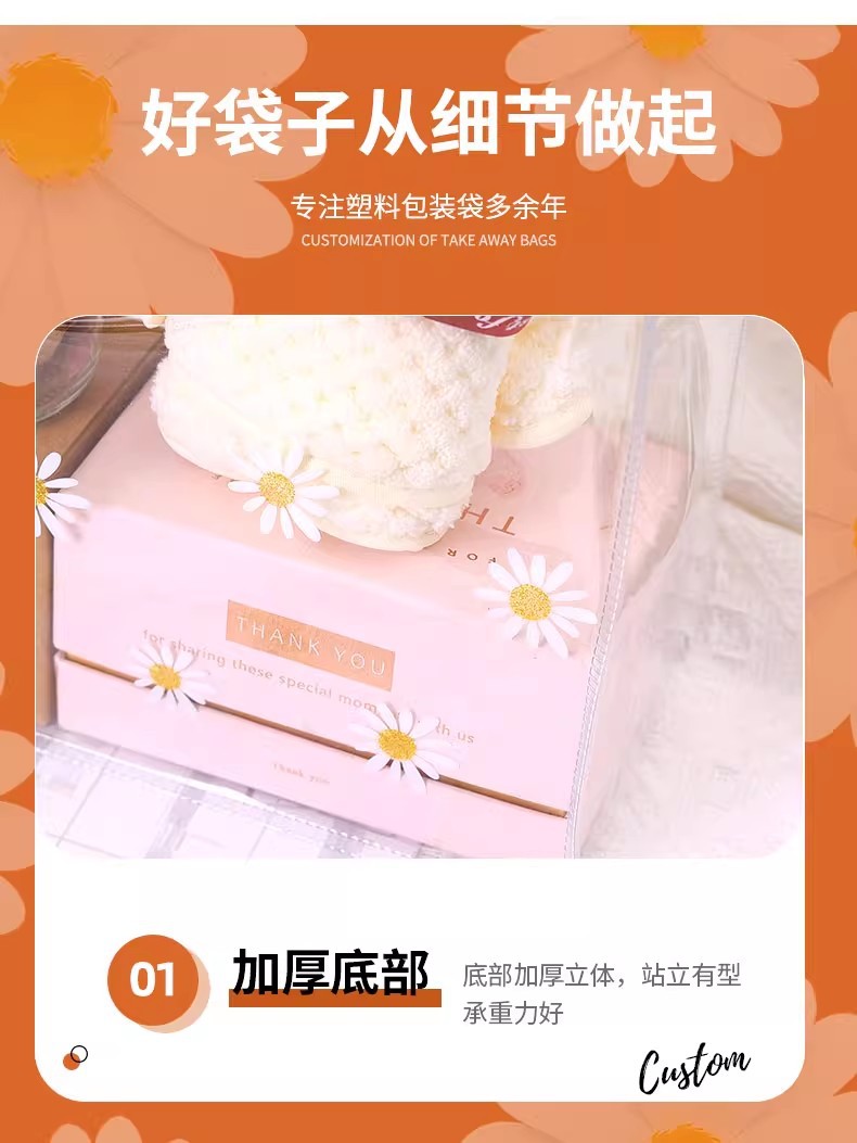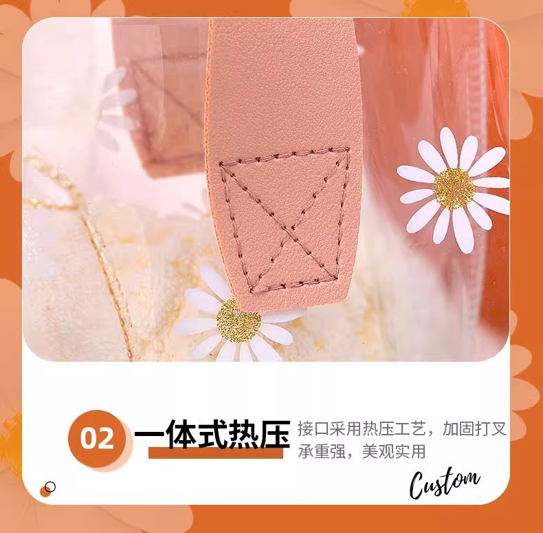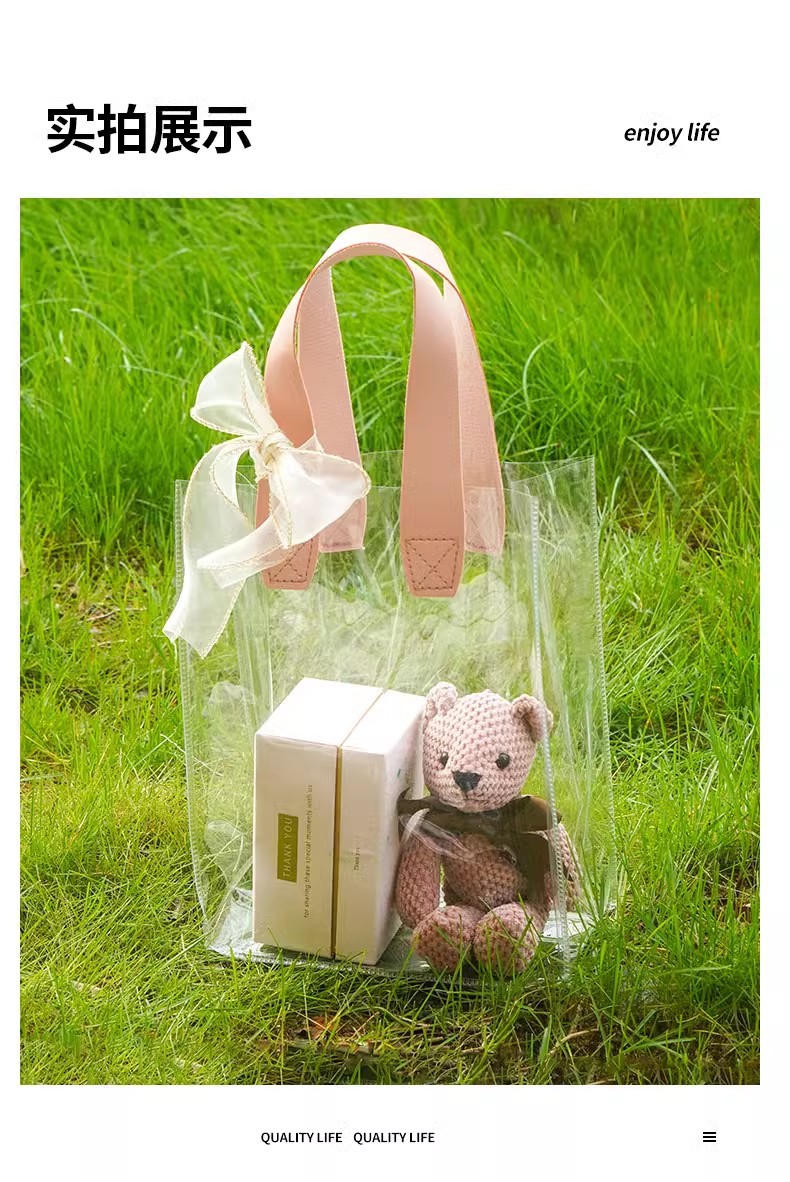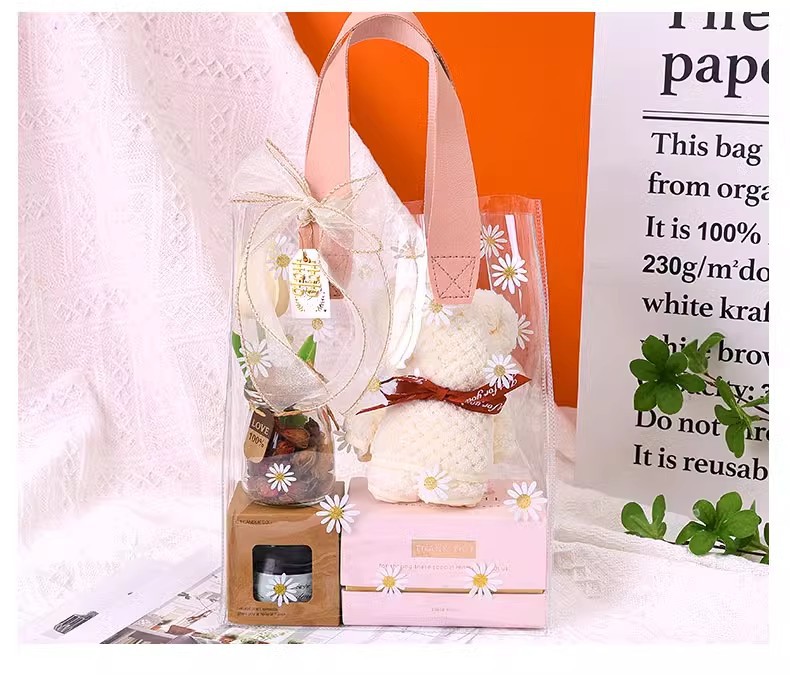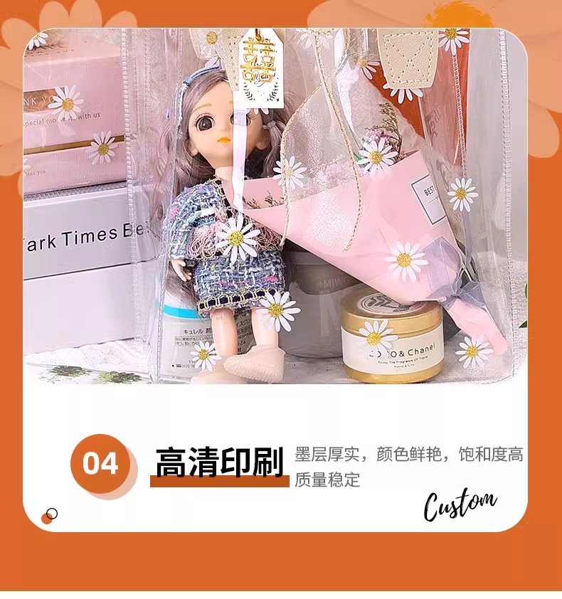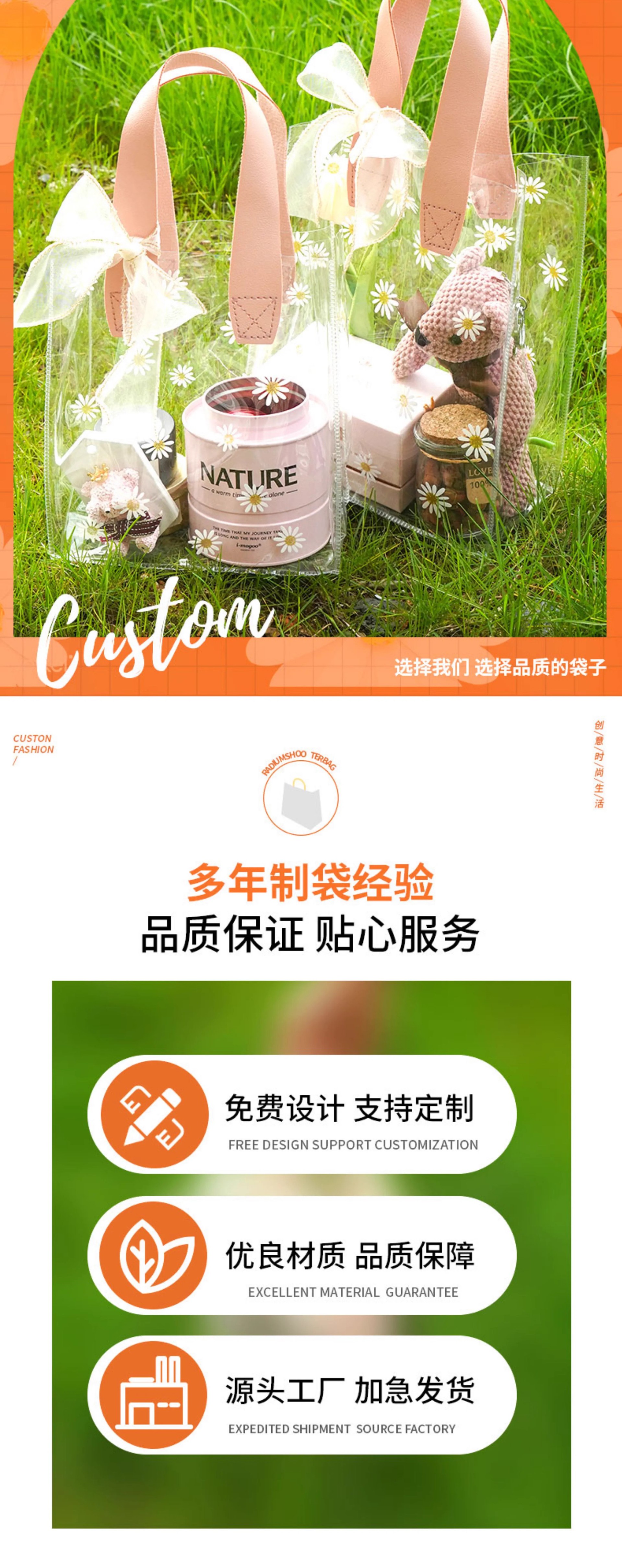 데이지 pvc 투명 핸드백 웨딩 동반자 손 선물 가방 손 들고 38 섹션 에 선물 가방 로고 만들기스토어 가기
