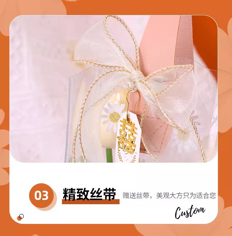 데이지 pvc 투명 핸드백 웨딩 동반자 손 선물 가방 손 들고 38 섹션 에 선물 가방 로고 만들기