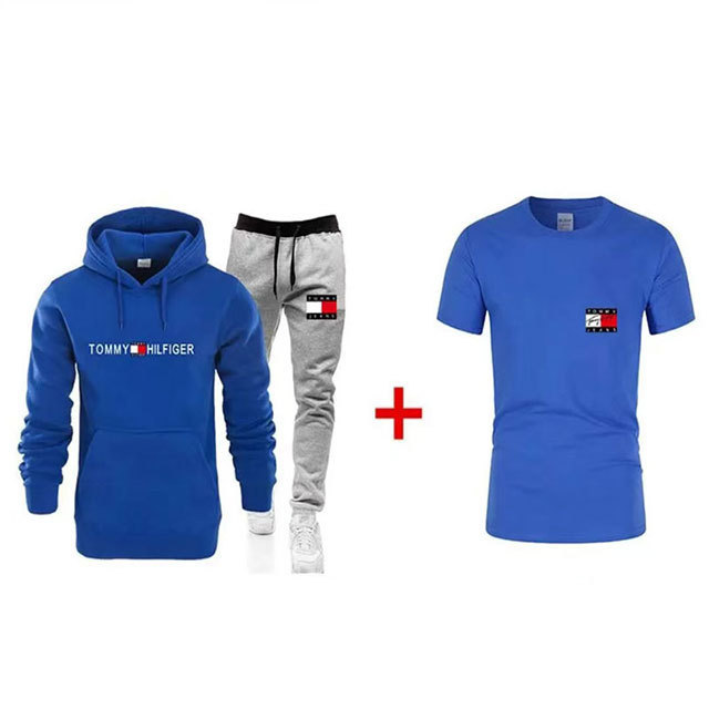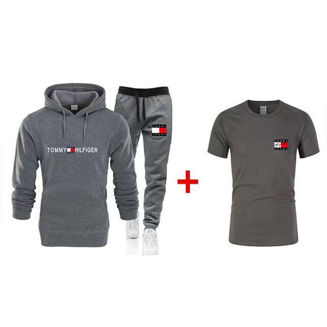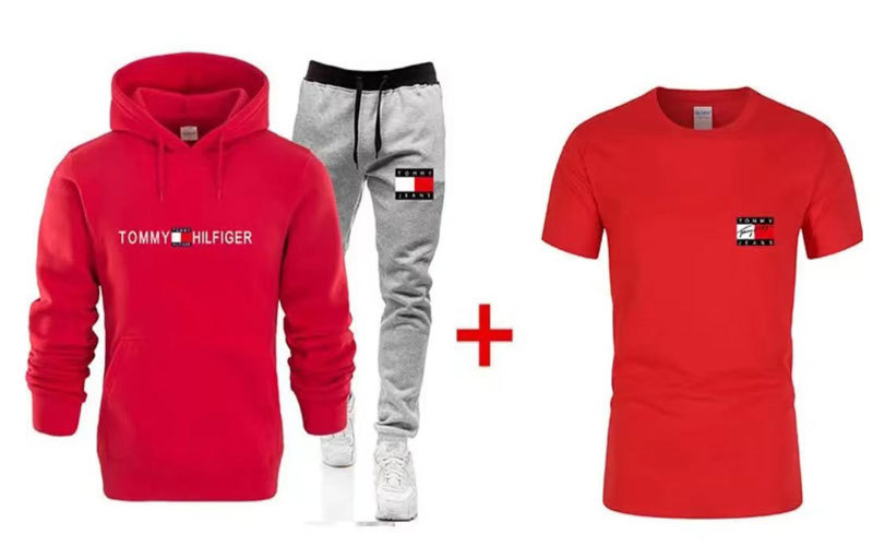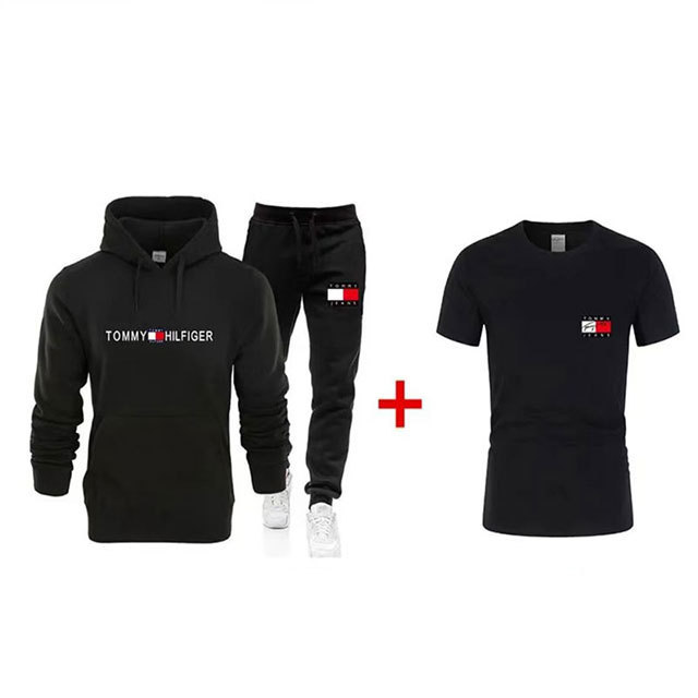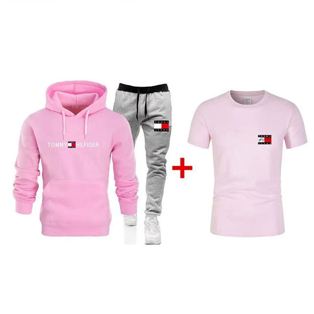 2024 새로운 유럽과 미국의 패션 브랜드 3 피스 세트 남녀 스포츠 후드 스웨터 + 캐주얼 스웨트 팬츠 반팔 티셔츠 세트