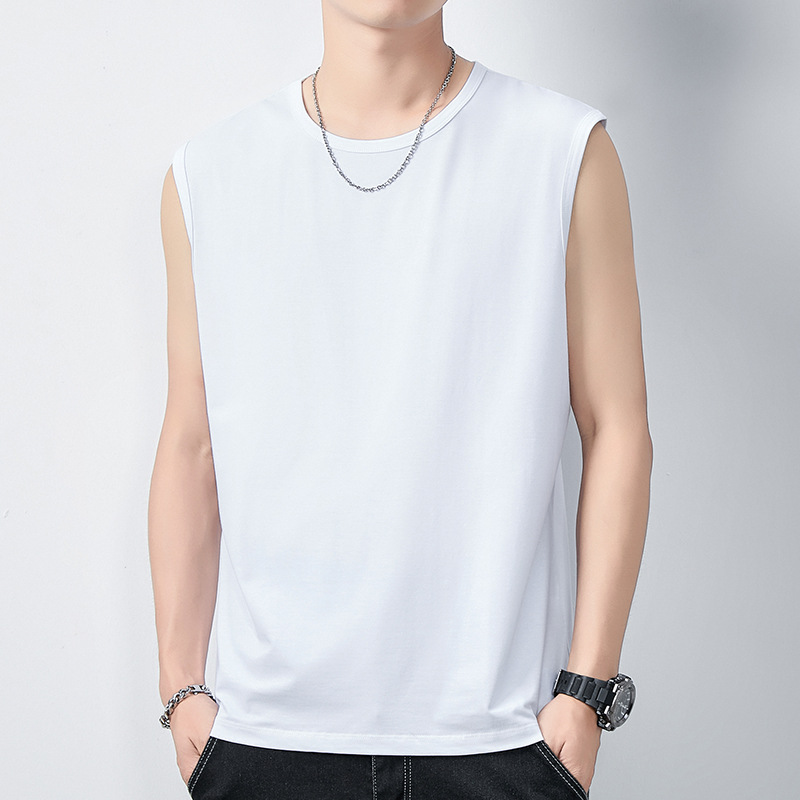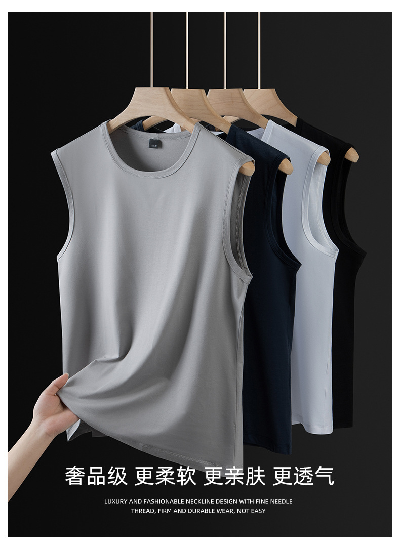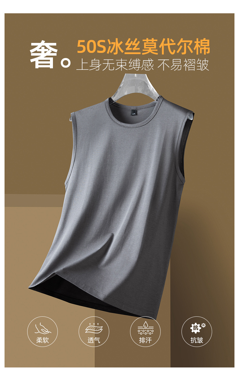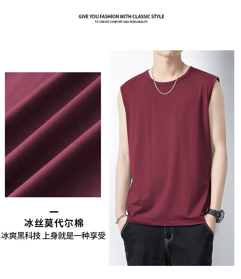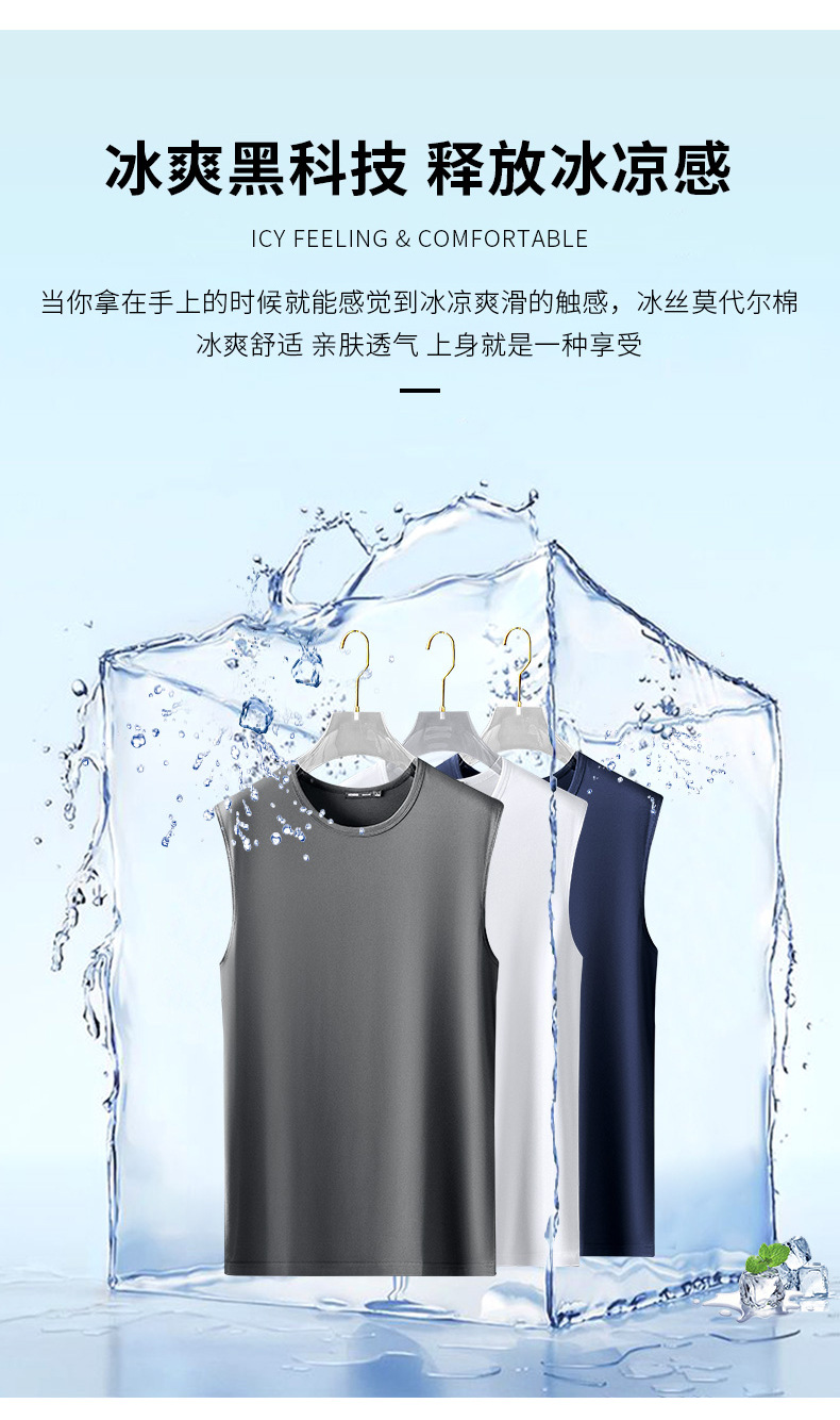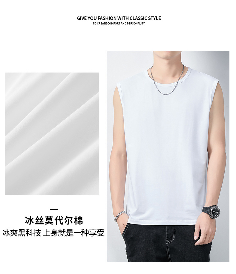 아이스 실크 모달 면화 남자 조끼 여름 새로운 신속 건조 통기성 스포츠 피트니스 쿨 민소매 어깨 티셔츠