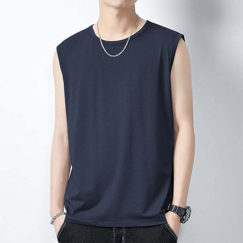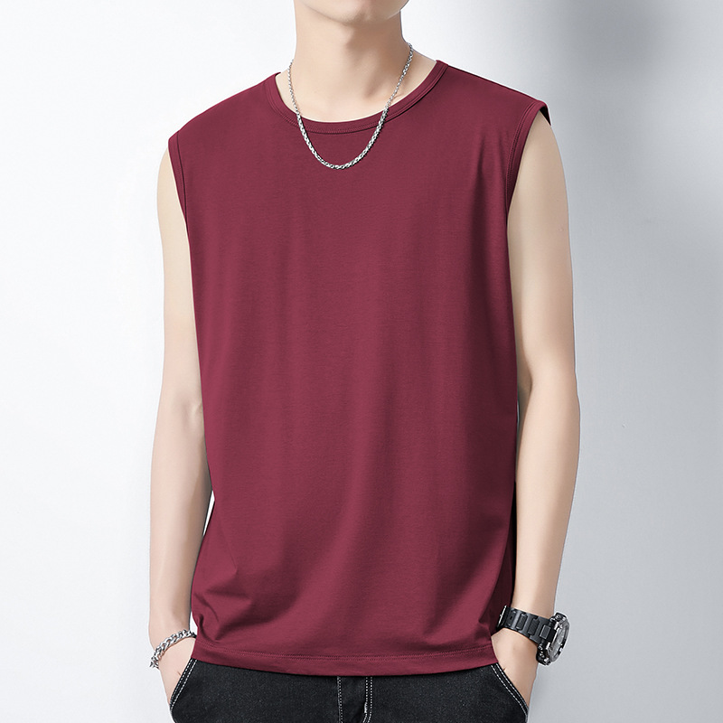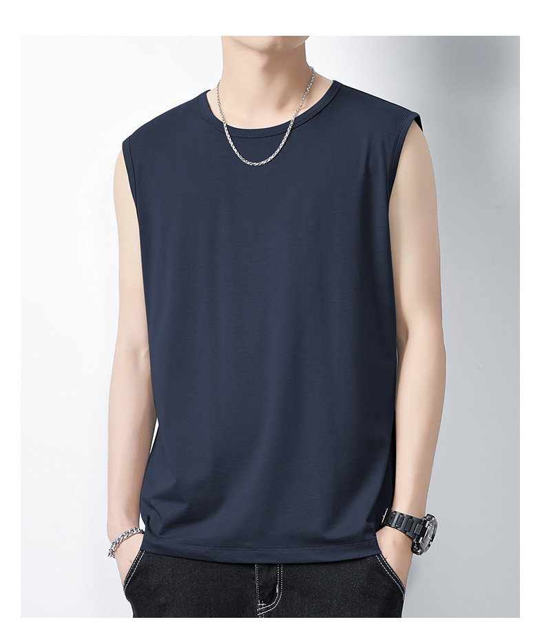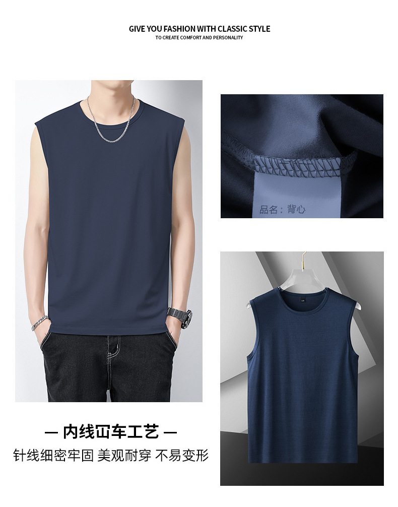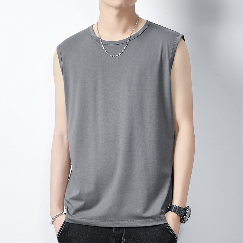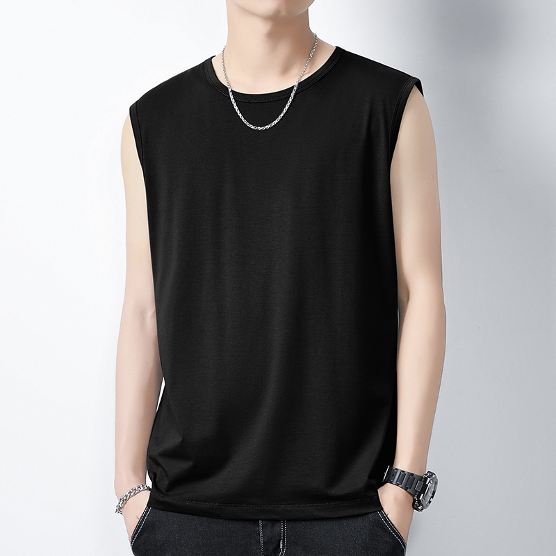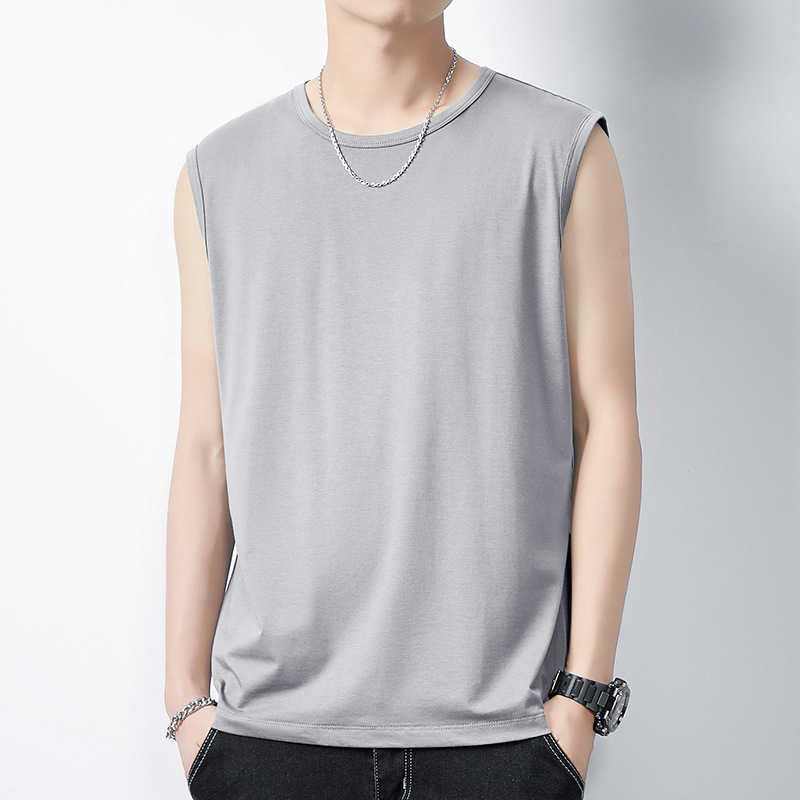 아이스 실크 모달 면화 남자 조끼 여름 새로운 신속 건조 통기성 스포츠 피트니스 쿨 민소매 어깨 티셔츠