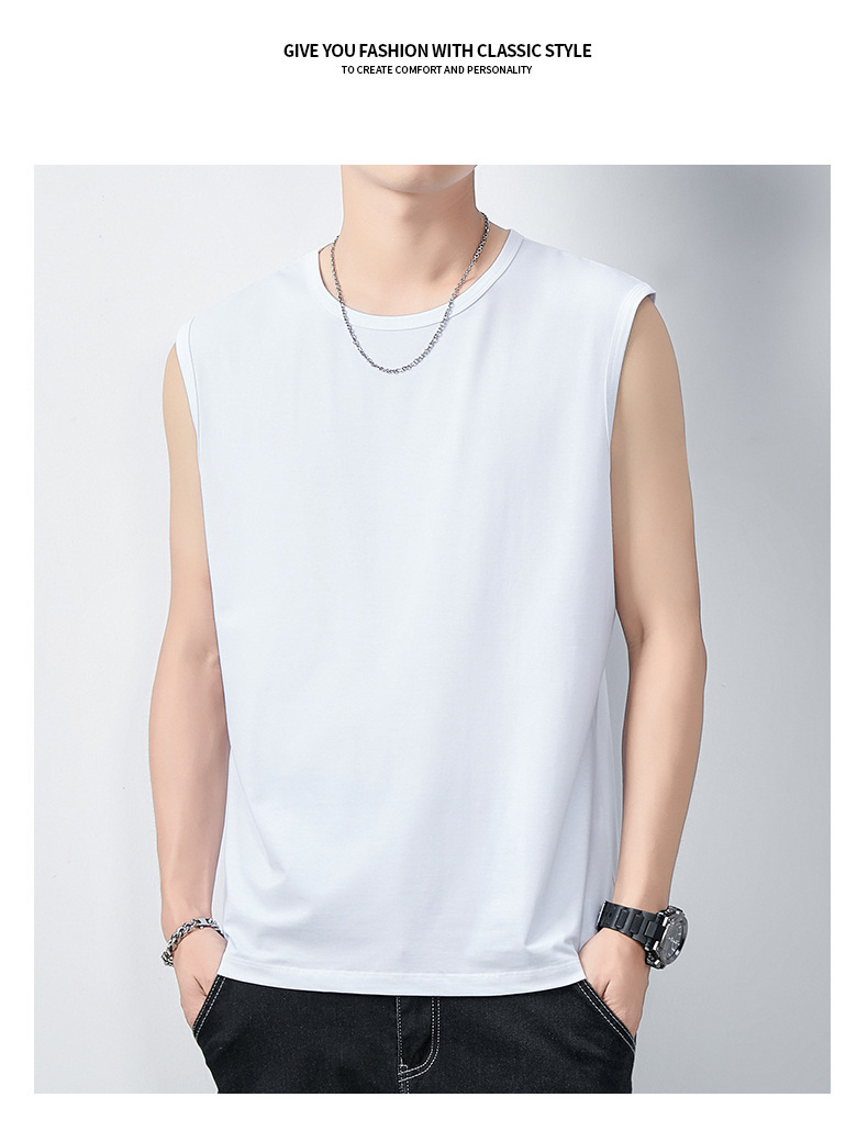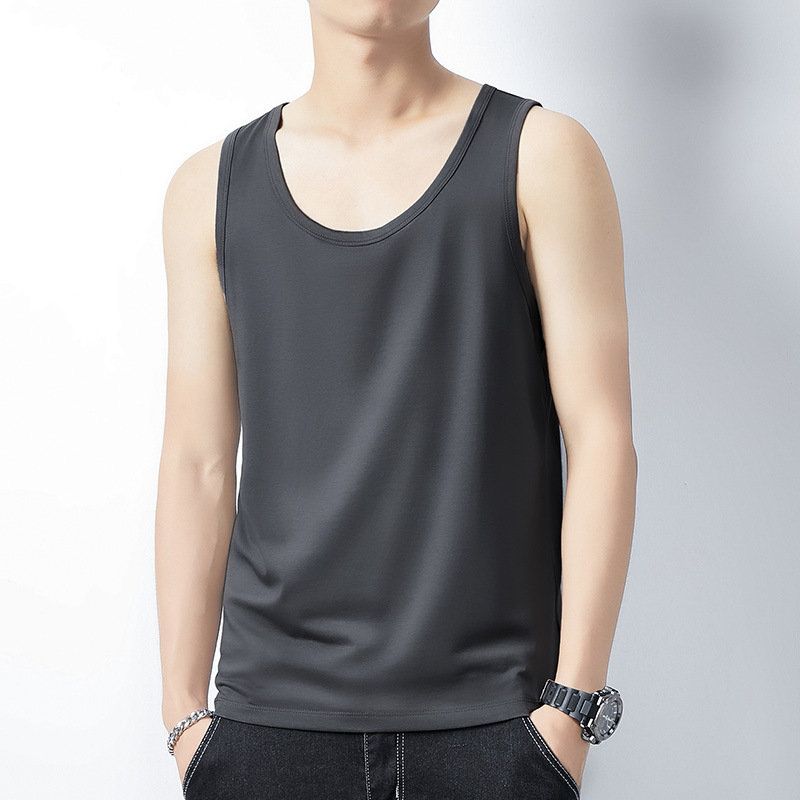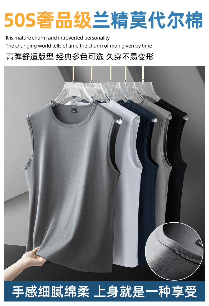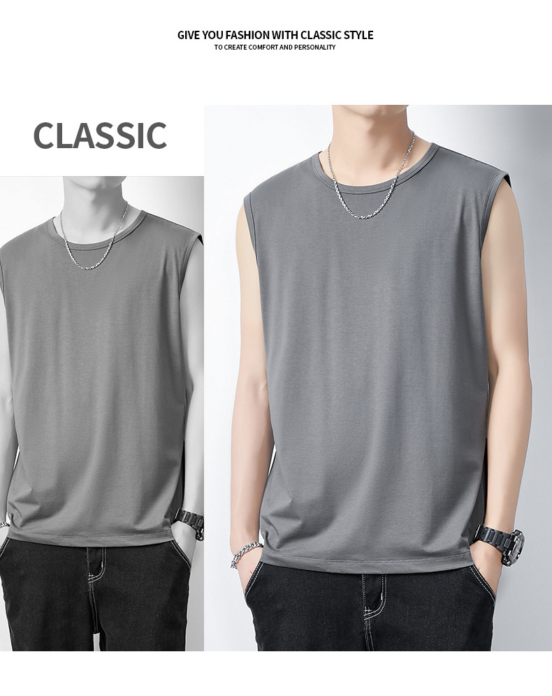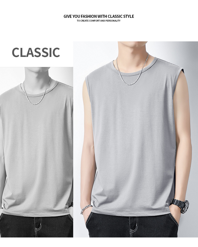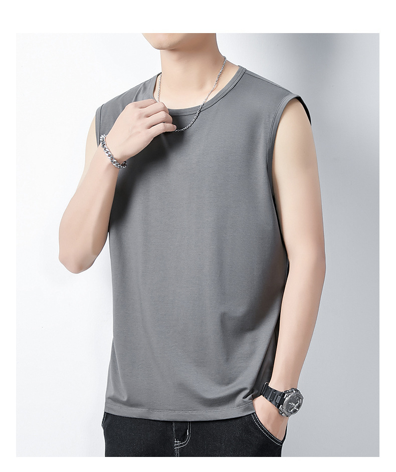 아이스 실크 모달 면화 남자 조끼 여름 새로운 신속 건조 통기성 스포츠 피트니스 쿨 민소매 어깨 티셔츠