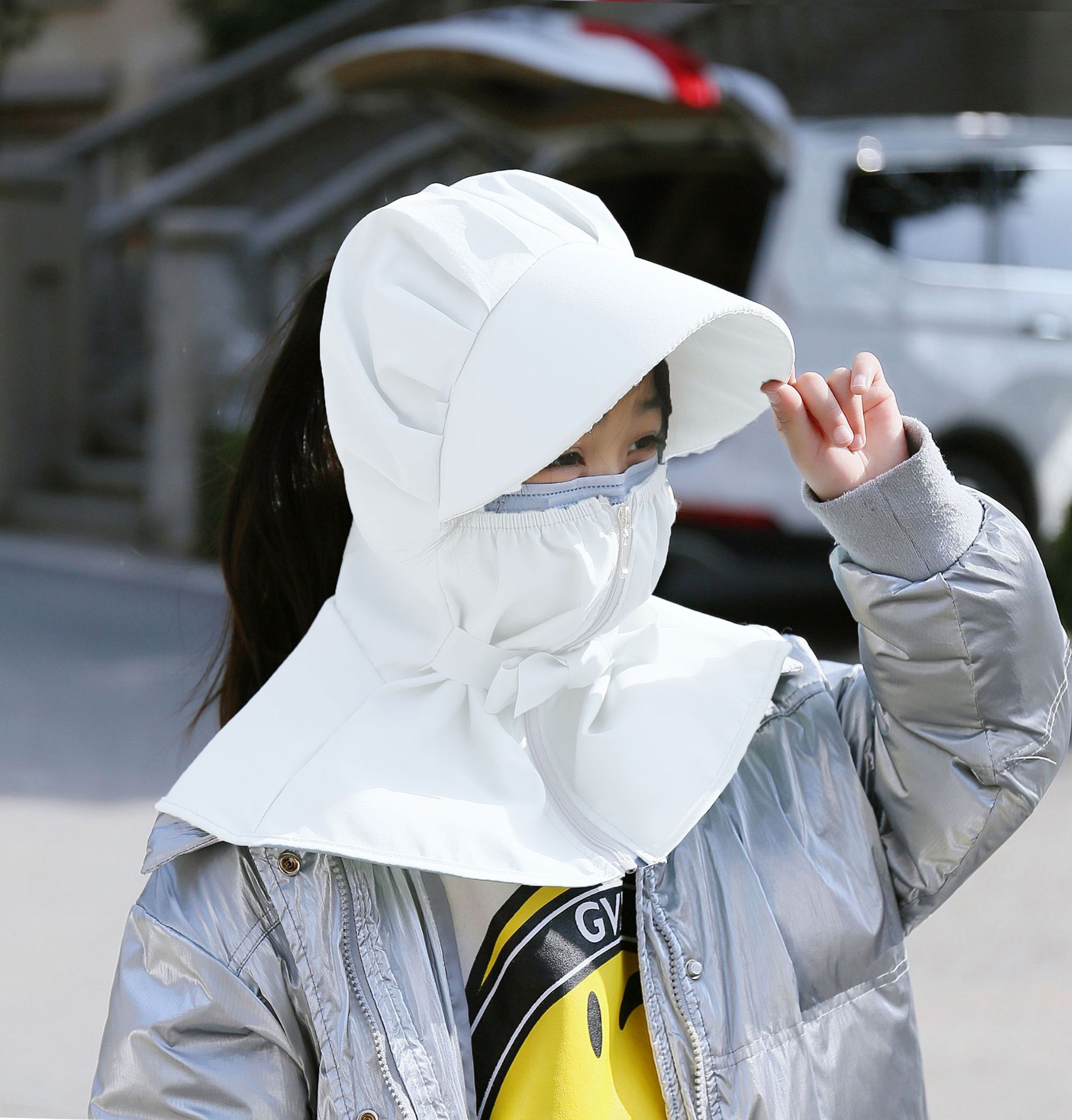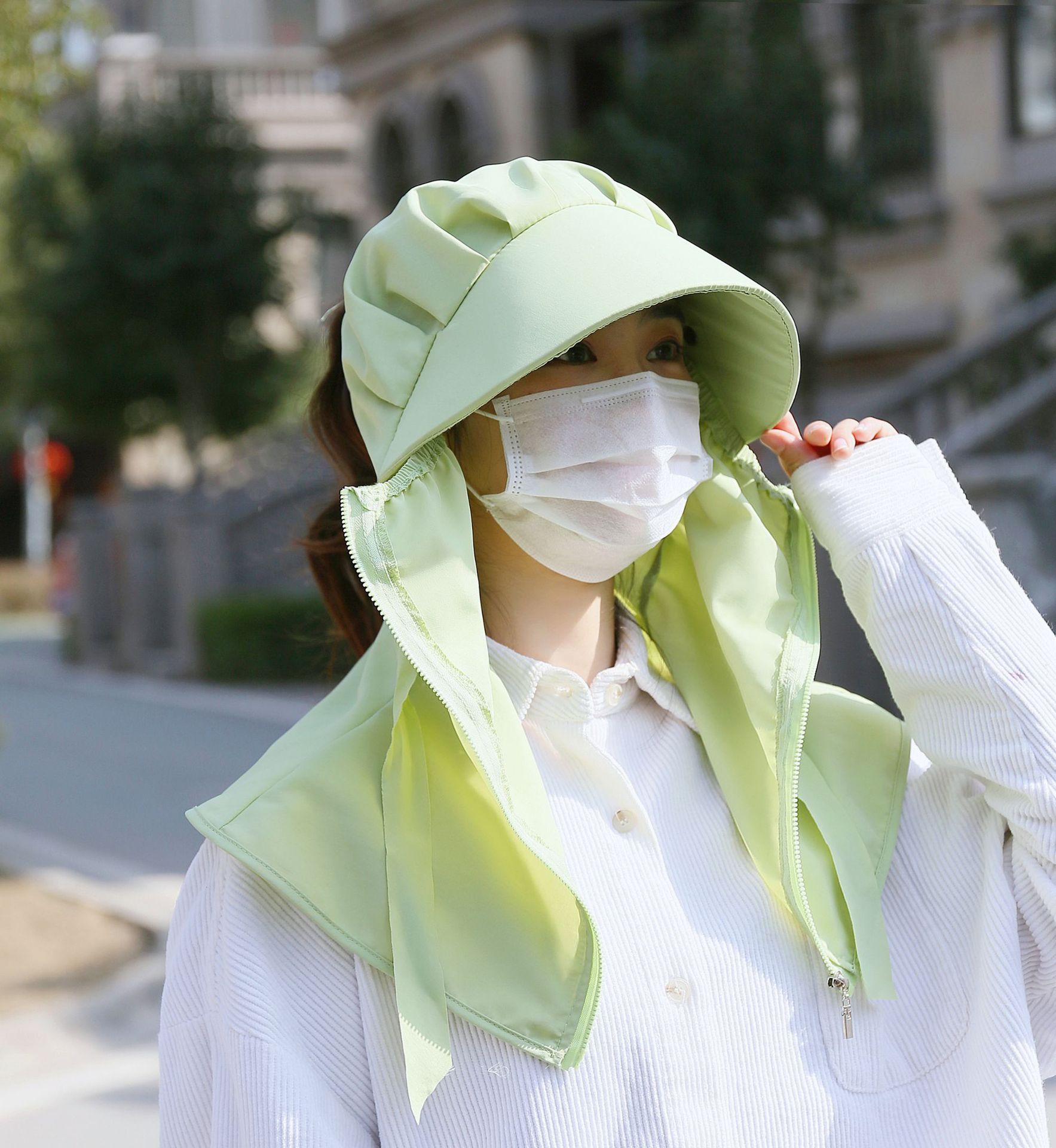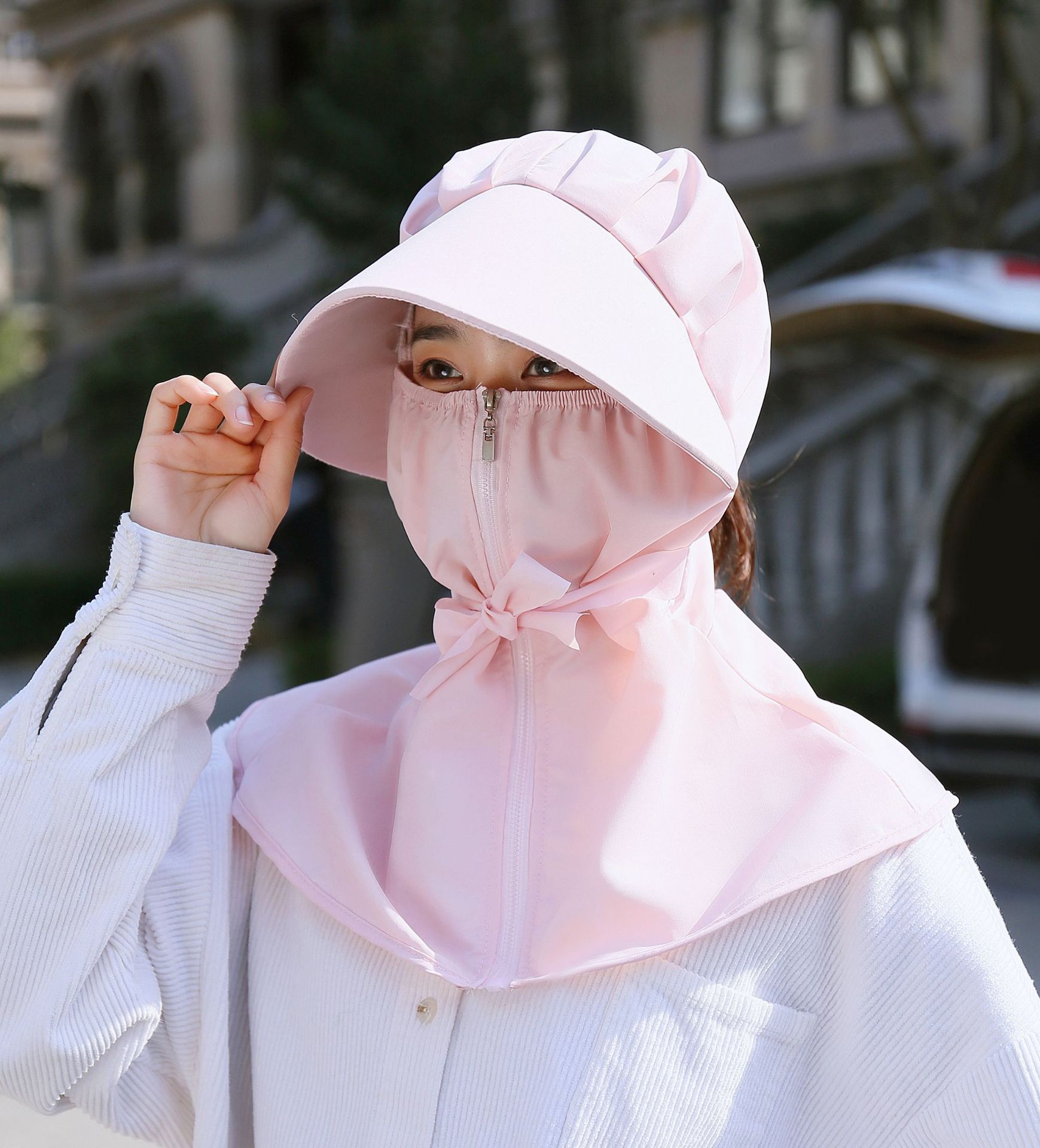 어린이 태양 모자 봄과 여름 소년 소녀 태양 모자 UV 보호 큰 테두리 모자 태양 마스크 목도리 통합
