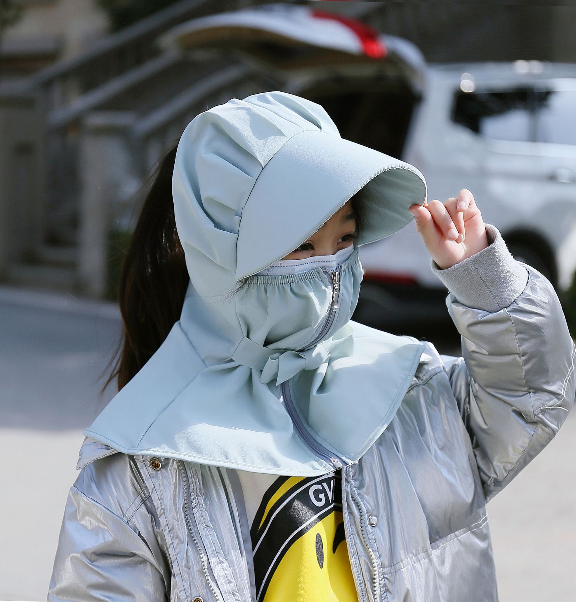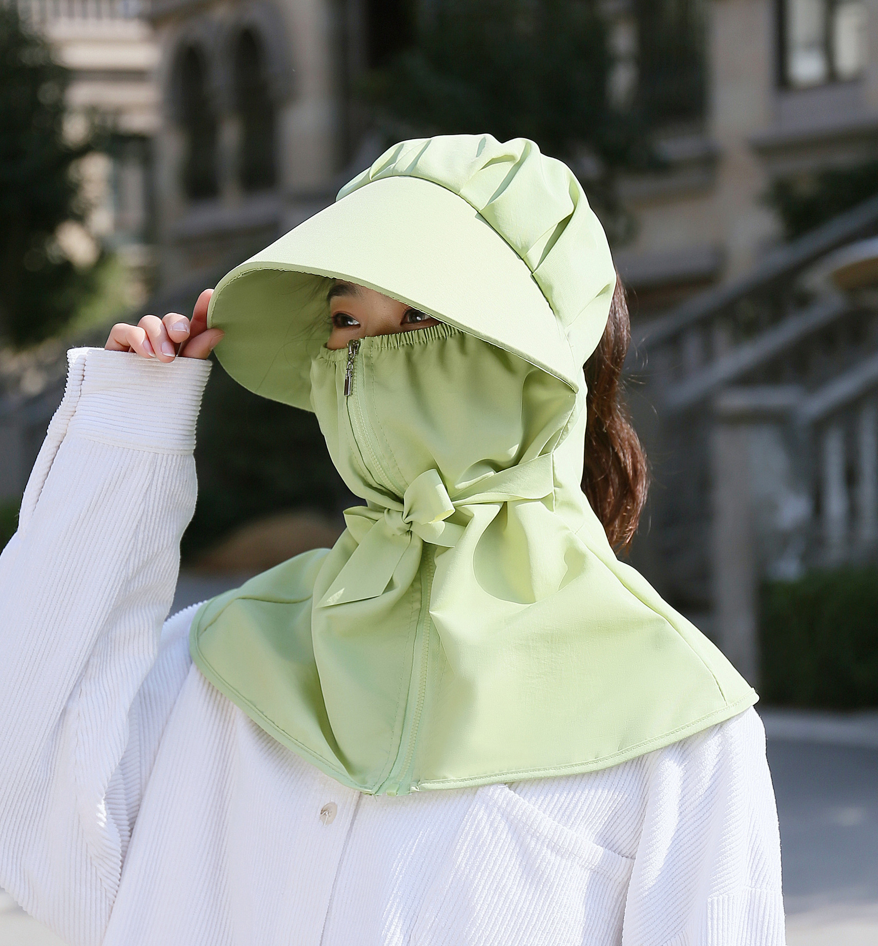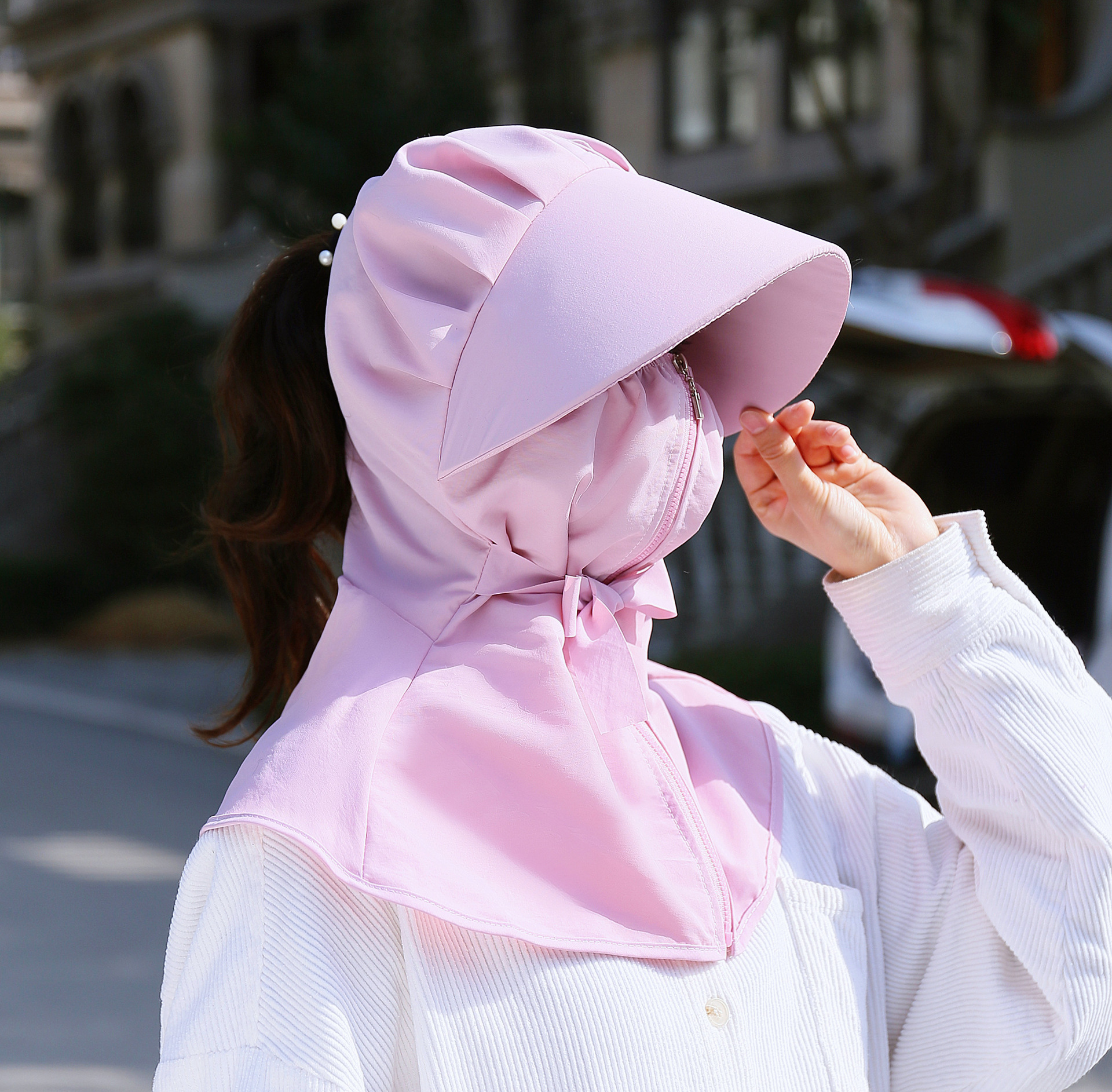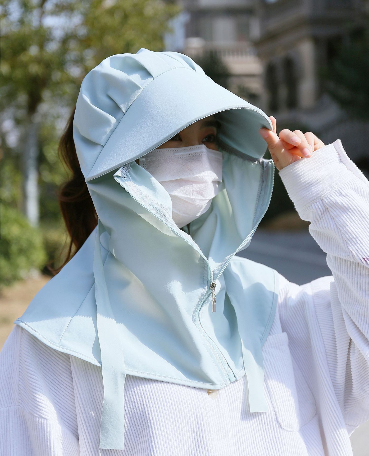 어린이 태양 모자 봄과 여름 소년 소녀 태양 모자 UV 보호 큰 테두리 모자 태양 마스크 목도리 통합