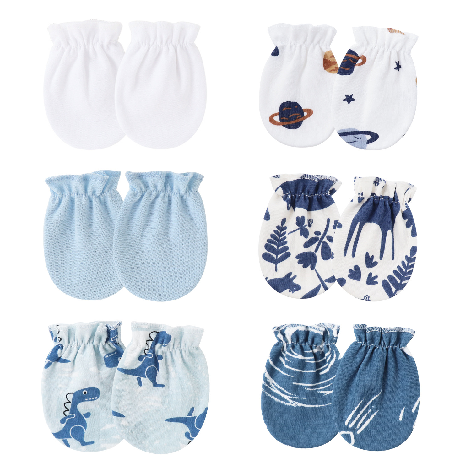 • 흰색 + 파란색 작은 행성 + 하늘색 + 곰 + 하늘색 공룡 + 파란색 별이 빛나는 하늘 (탄성 장갑)