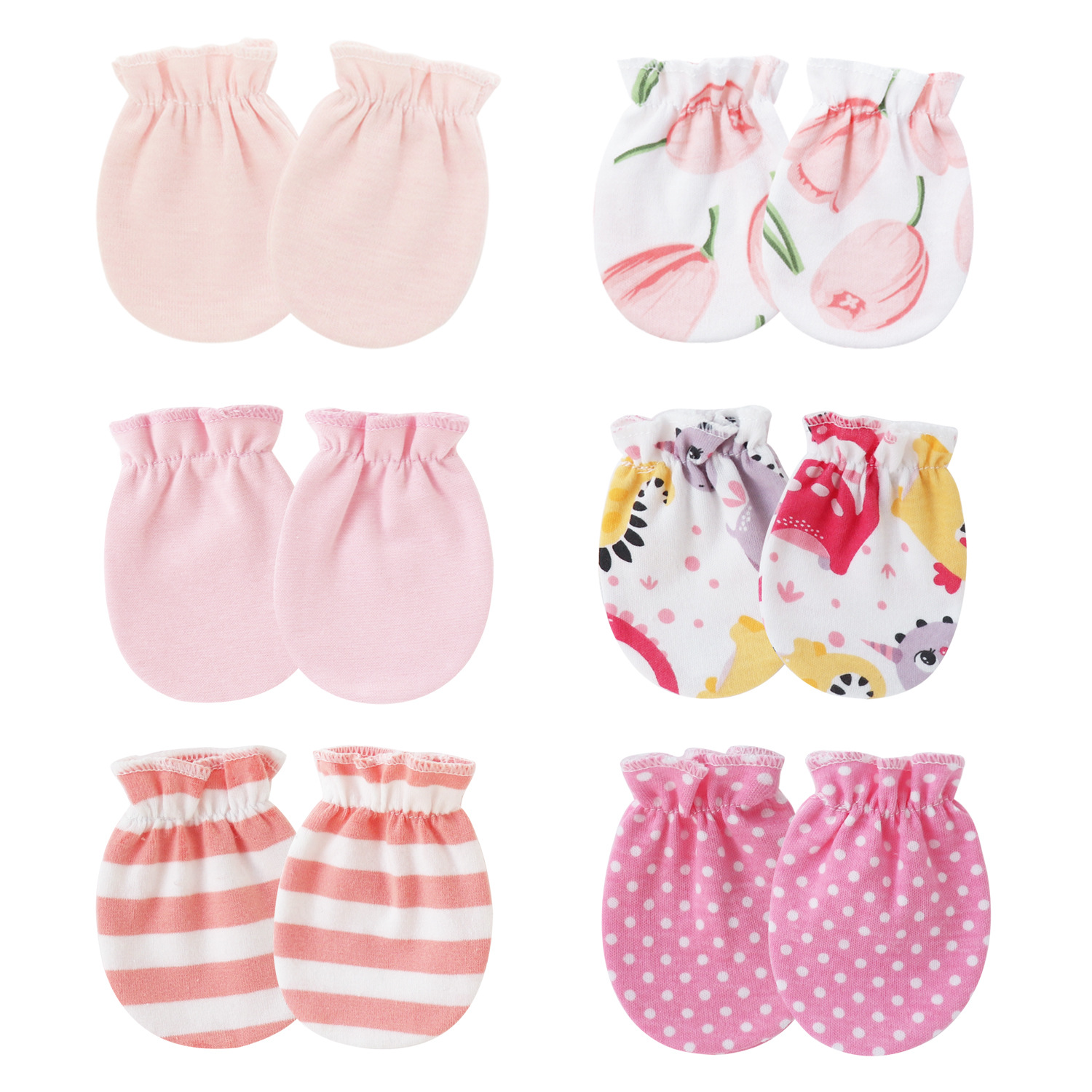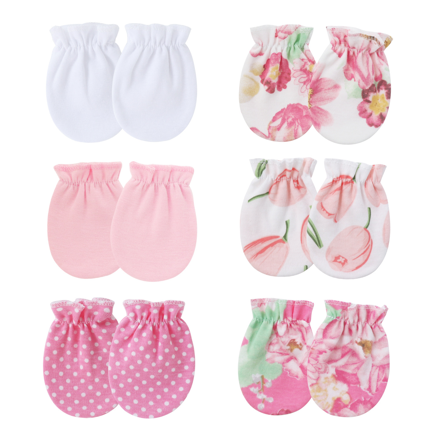 대외 무역 유럽과 미국의 신생아 단색 장갑 탄성 강화 긁힘 방지 얼굴 장갑 유아 탄성 장갑 0-1 세