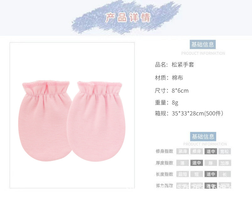 대외 무역 유럽과 미국의 신생아 단색 장갑 탄성 강화 긁힘 방지 얼굴 장갑 유아 탄성 장갑 0-1 세스토어 가기