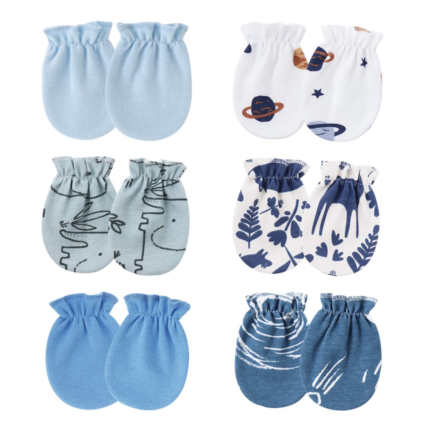 • 하늘색 + 단순한 코끼리 + 하늘색 + 작은 파란색 행성 + 곰 + 파란색 별이 빛나는 하늘 (탄성 장갑)