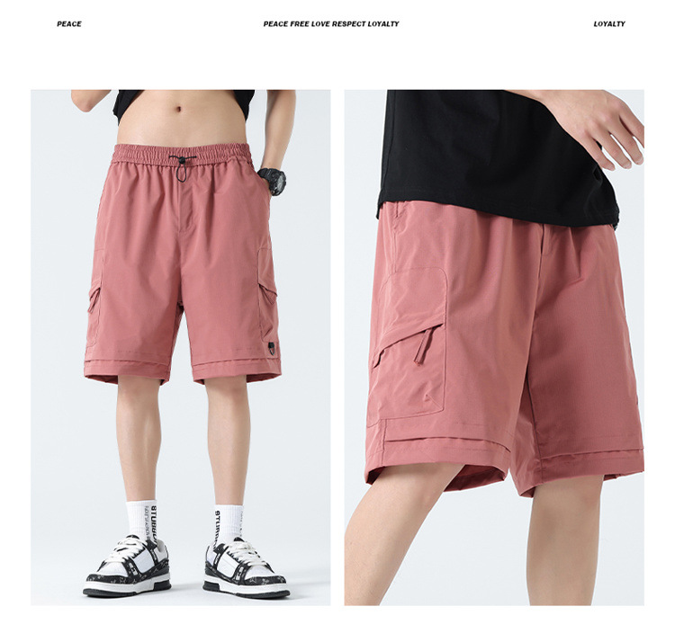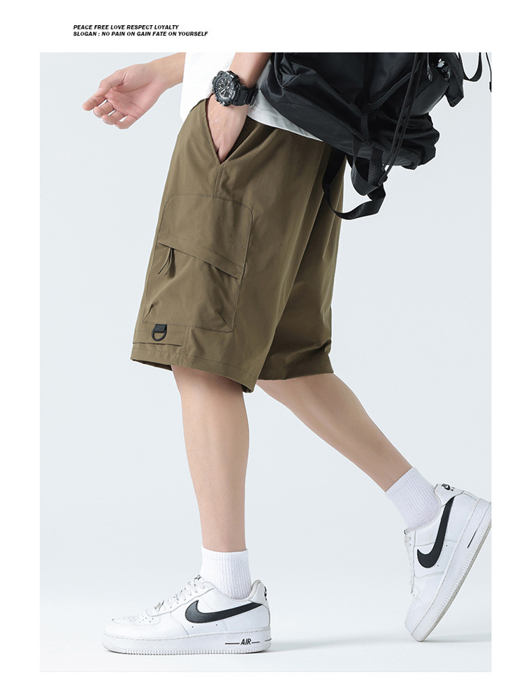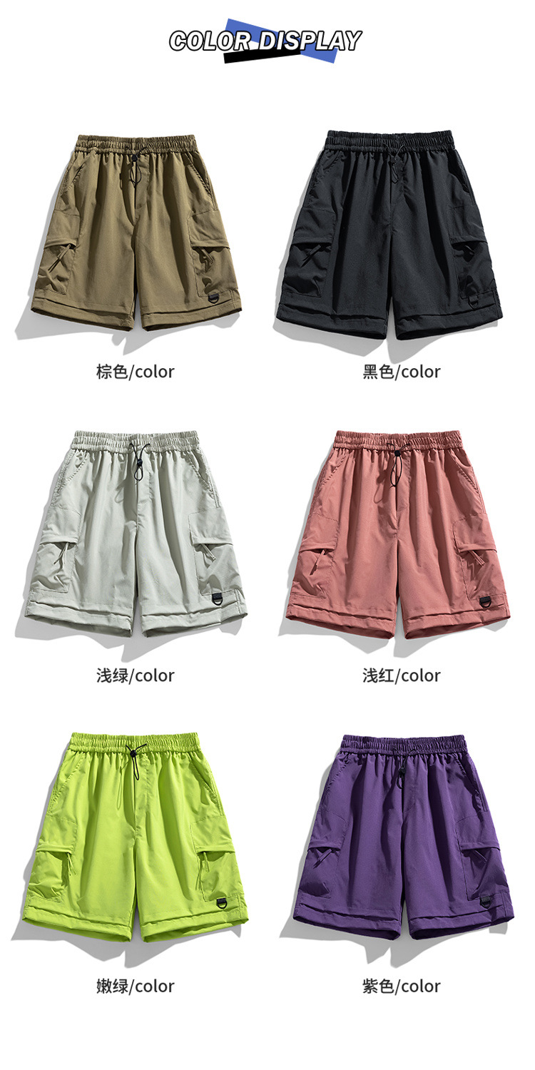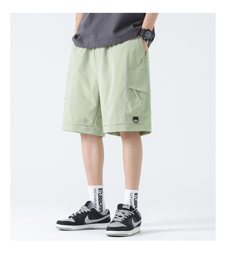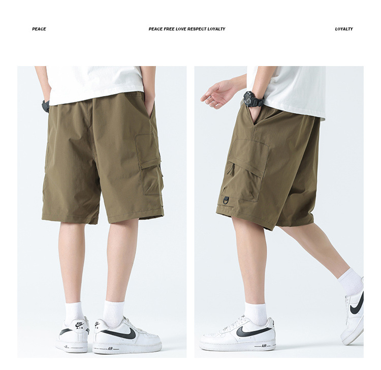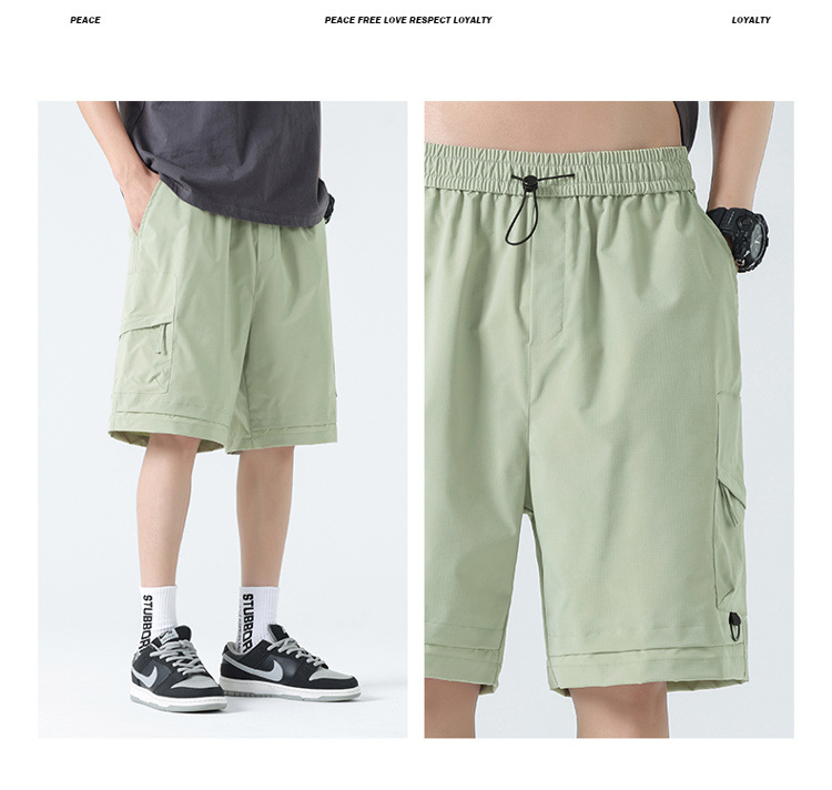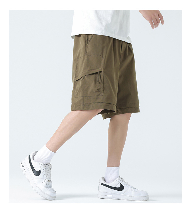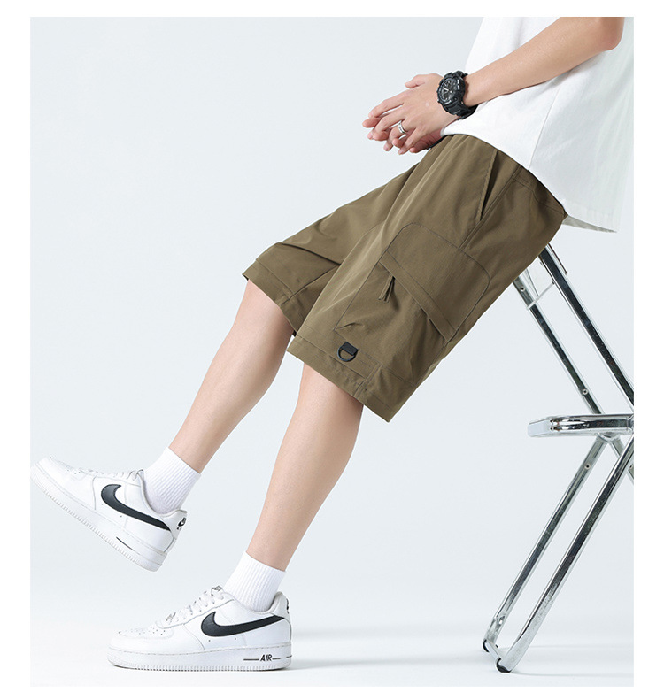크로스보더 여름 작업복 반바지 남성용 반팔 5부 바지 트렌디 브랜드 아이스 느낌 내마모성 얇은 다용도 포켓 작업복 바지 속건성