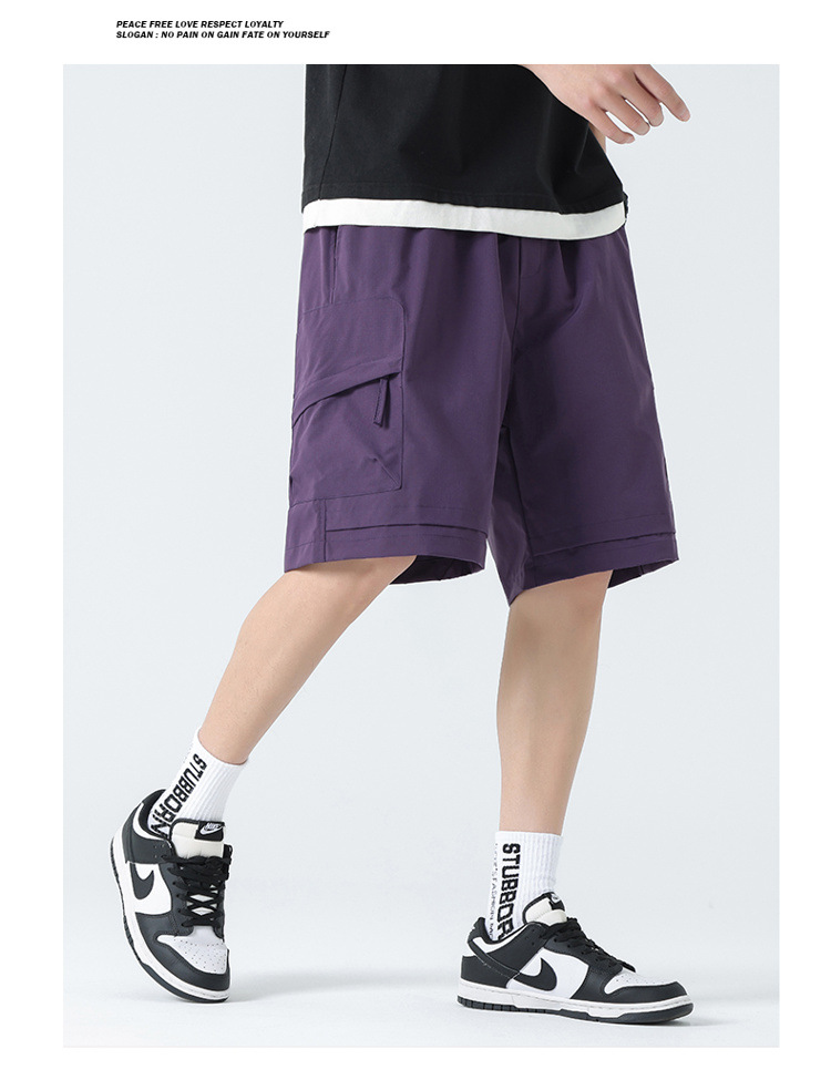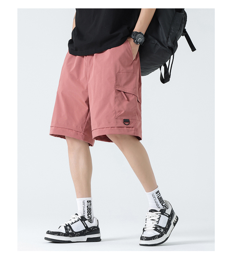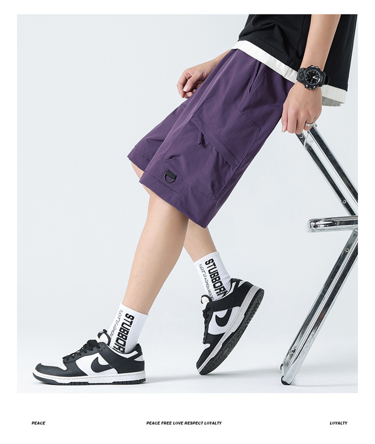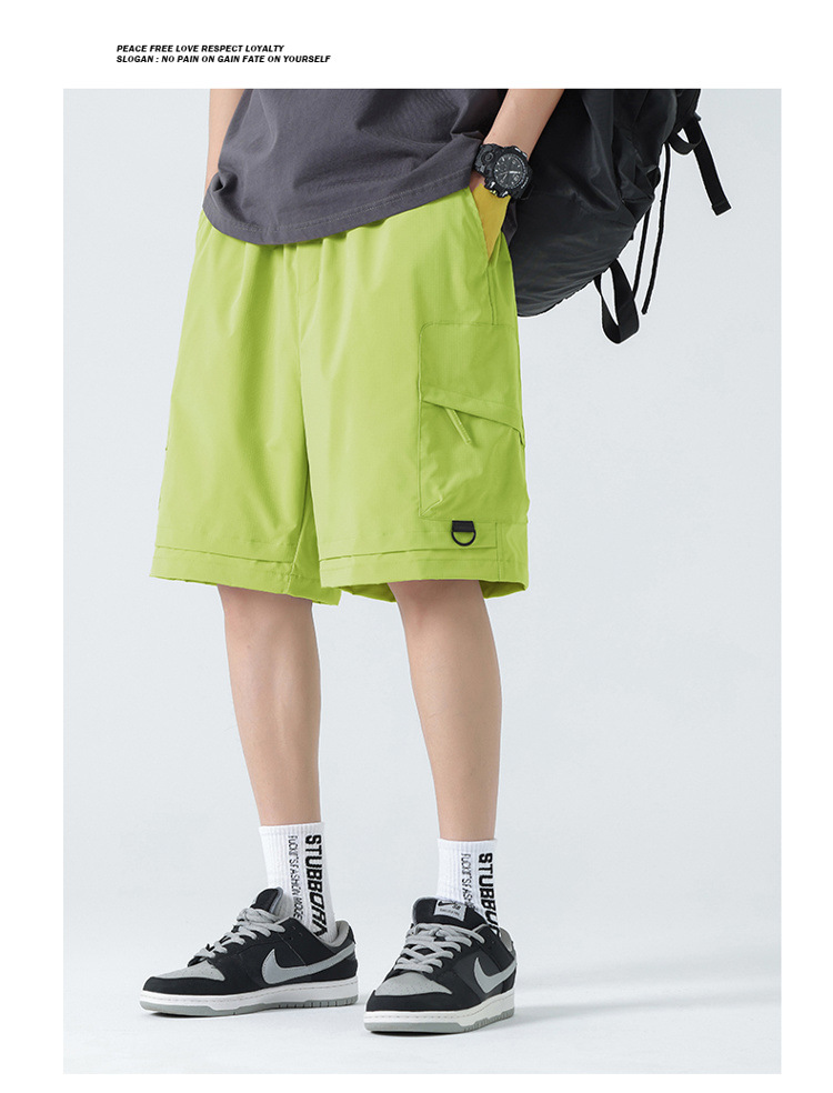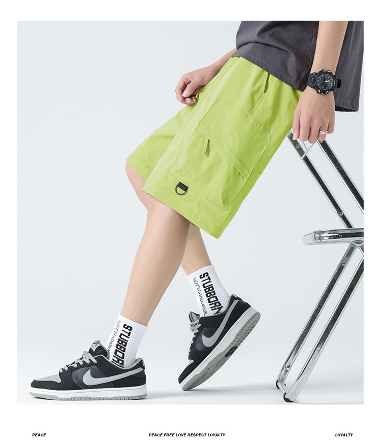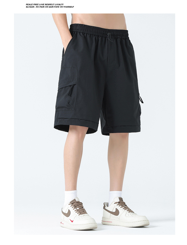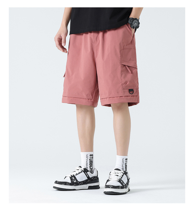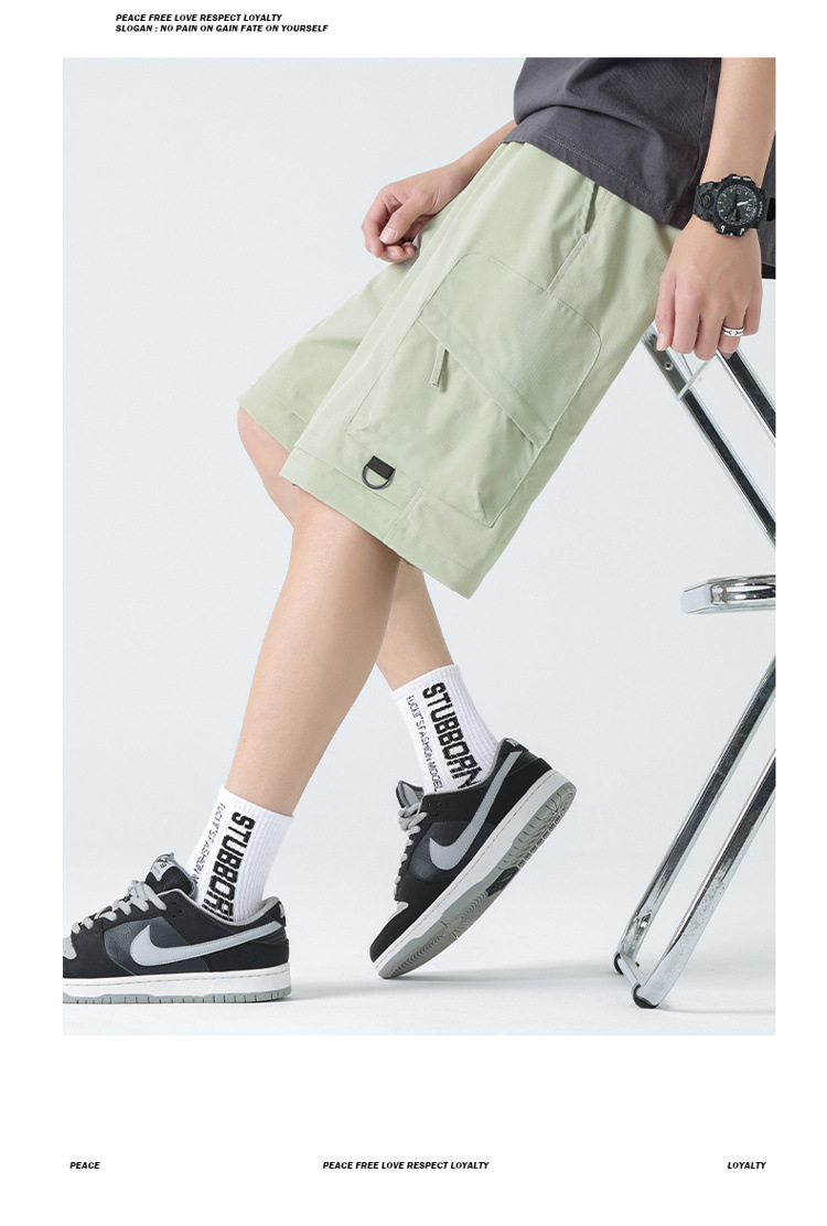 크로스보더 여름 작업복 반바지 남성용 반팔 5부 바지 트렌디 브랜드 아이스 느낌 내마모성 얇은 다용도 포켓 작업복 바지 속건성